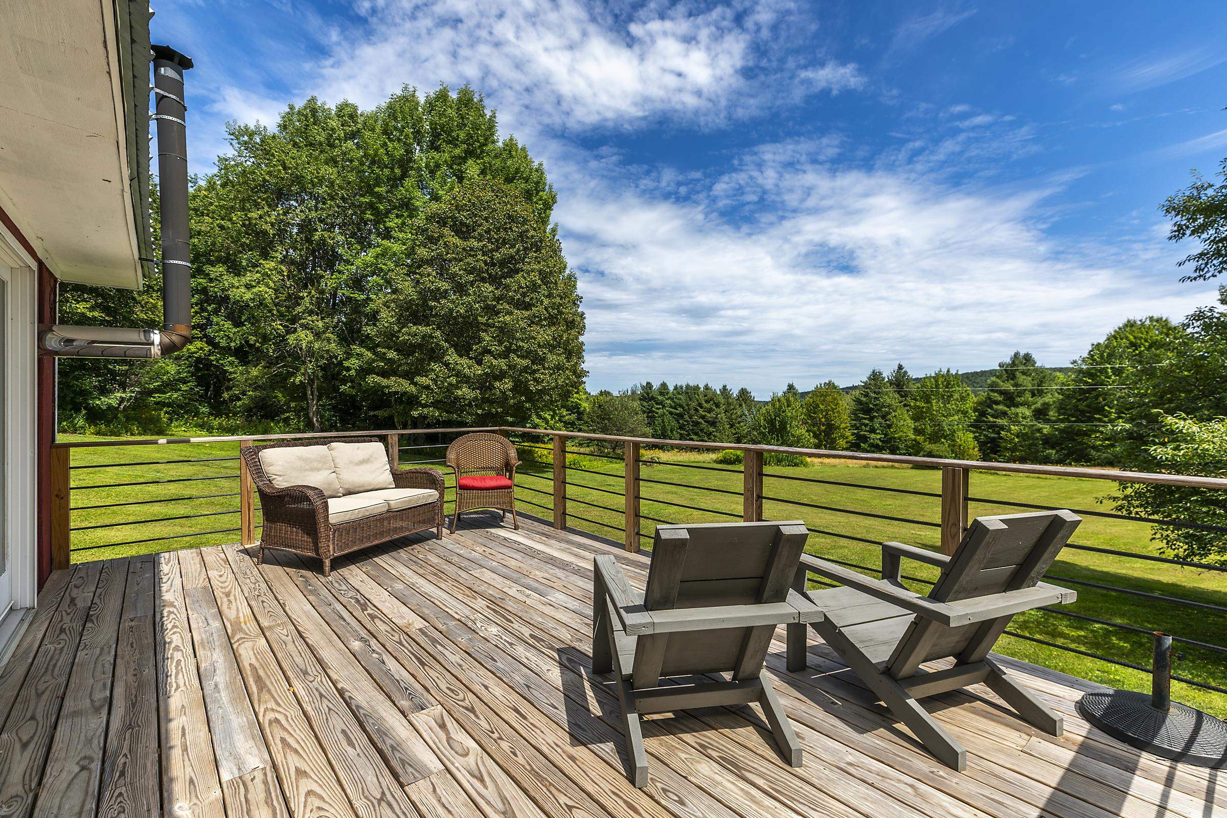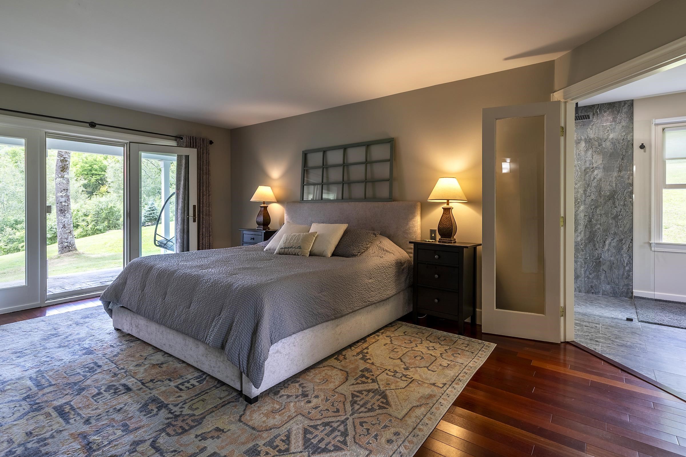 This is the perfect Vermont getaway, private and secluded, minutes from skiing, restaurants, and all the charm of Southern Vermont. This property is truly special, set on landscaped grounds with rolling meadows, a small, renovated barn with deck, and a 30x40 insulated Q Building with heat, water and 220 amps, as well as a whole house generator. The location is choice: close to world-class skiing yet offering a peaceful country feel. A 47x22 deck and a covered porch are both perfect for soaking in the sweeping views of the mountainside and manicured grounds. The home delights with sun-filled rooms and hardwood floors. The entry features radiant tile heating, a cathedral ceiling, and an open staircase leading to the second level that has three large bedrooms, one with its own en-suite bathroom. There is also a large landing area that allows for a sectional sofa and TV area. On the main floor, the great room boasts a vaulted ceiling, pine flooring, ceiling fans, and a projection system with screen. The wonderful kitchen/family room offers a brick fireplace, granite and marble counters, glass-front cabinets, a walk-in pantry, and patio doors to the breathtaking views of the deck with adjacent wet bar with a granite-topped sink. The first-floor primary suite offers a brand-new spa-like bathroom, creating a private sanctuary with plenty of room in the new oversized walk-in closet. The lower level includes a versatile studio space, perfect for many hobbies.