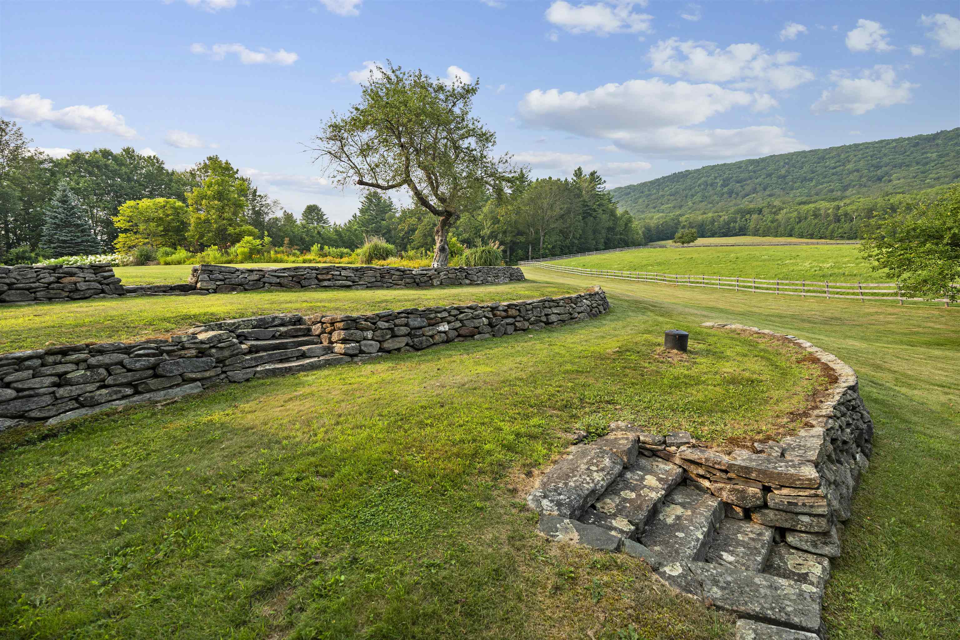 Uplands is a gracious 105-acre hill farm on the south-facing slope of Markham Mountain, located just outside the historic village of Weston. Anchored by an 1800s farmhouse, the main residence has been thoughtfully added on to and renovated over the years and offers over 3, 839 square feet of living space, including four bedrooms, three fireplaces and an attached two bay garage. The guest house preserves the historic character of an early 19th-century English barn with the addition of a two bedroom apartment on the main level. A short walk from the house, is a handsome post and beam bank barn. The three level barn includes a six-stall stable, three bay garage for equipment, and an inviting entertaining space on the top floor. Surrounding the buildings are stone walls, extensive perennial gardens and apple trees. An 1.5-acre spring-fed swimming pond with a sandy beach is stocked with trout and bordered by open fields and woodlands. A conservation easement with the Vermont Land Trust allows for the potential subdivision and construction of one additional residence. Located just minutes from the award-winning Weston Theater Company and year-round recreational opportunities such as hiking on the Long Trail and skiing some of Vermont's best at Okemo, Magic, Stratton, Bromley and Viking Nordic Center.