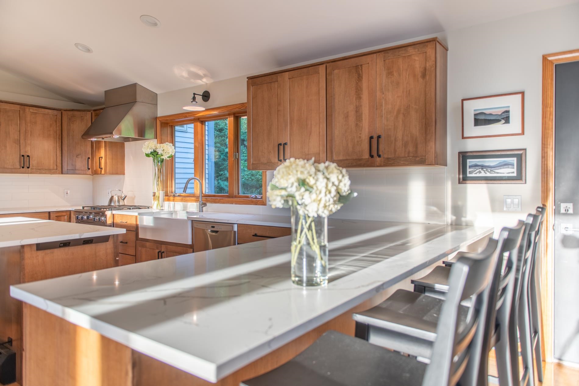 Valley floor to big sky views. Southern exposure. All day sun. A short stroll to access the almost 15, 000 acre Putnam State Forest, VAST trail system, and Moss Glen Falls (said to be the most scenic waterfalls in the state of VT). Obsessed with keeping a clean car? Less than 30 seconds on a town gravel road to reach your newly paved level driveway and heated 3-car garage (with wash-down capability). Gather in the big open kitchen/dining/living space and spill out onto the deck, or find a quiet corner in the TV room or lower level den. All new kitchen with: quartz countertops, all stainless appliances, and Franke undermount sink. Walk-in closets everywhere you look. 3-car finished and heated garage with separate gear room and mudroom space. New: standby electrical generator, split system A/C throughout, roofing, decks and railings. Everyone’s gonna want to be here. Hiking and back-country skiing out the backdoor. Feasts and adventures will be had. Sunny snoozes indulged. Dogs curled up fireside. Kids somehow staying awake for a movie after a full day on the slopes. Bonfires in the gentle snowfall. Maybe even a long soak in your strategically positioned new hot tub on the deck. (An irresistible house-warming gift to yourself.) THIS . . . all of this . . . makes for a very sweet spot to land.