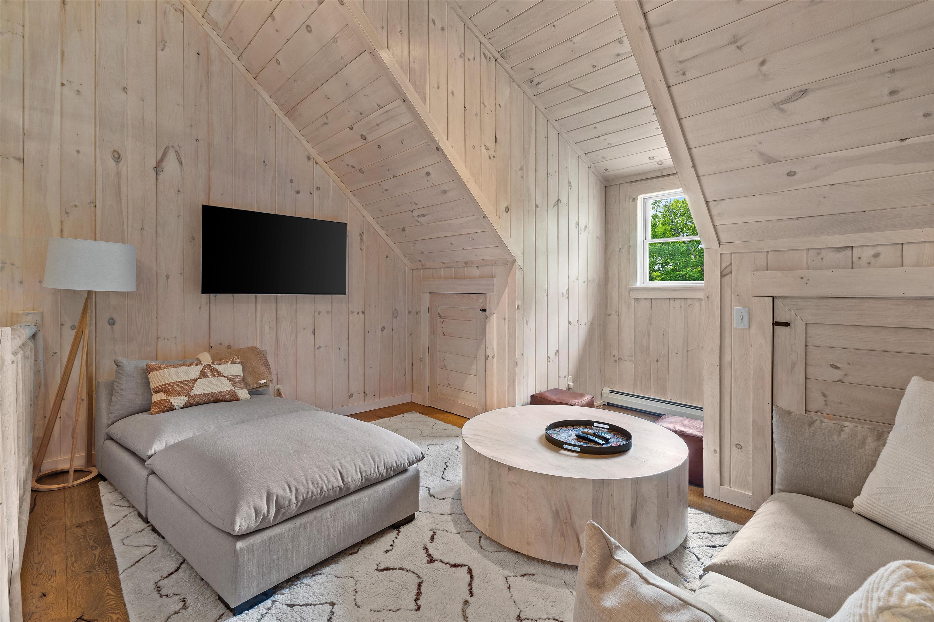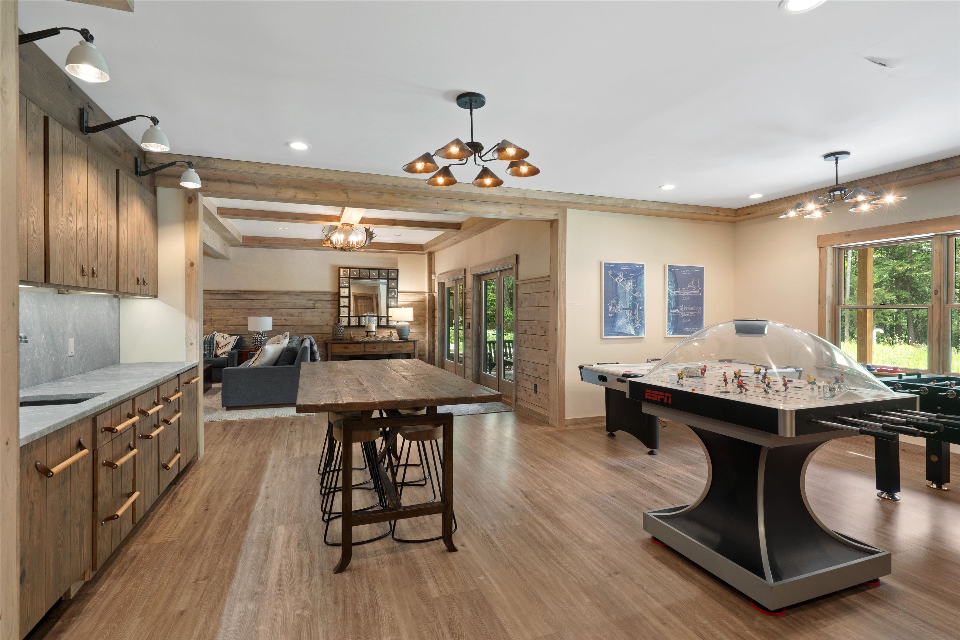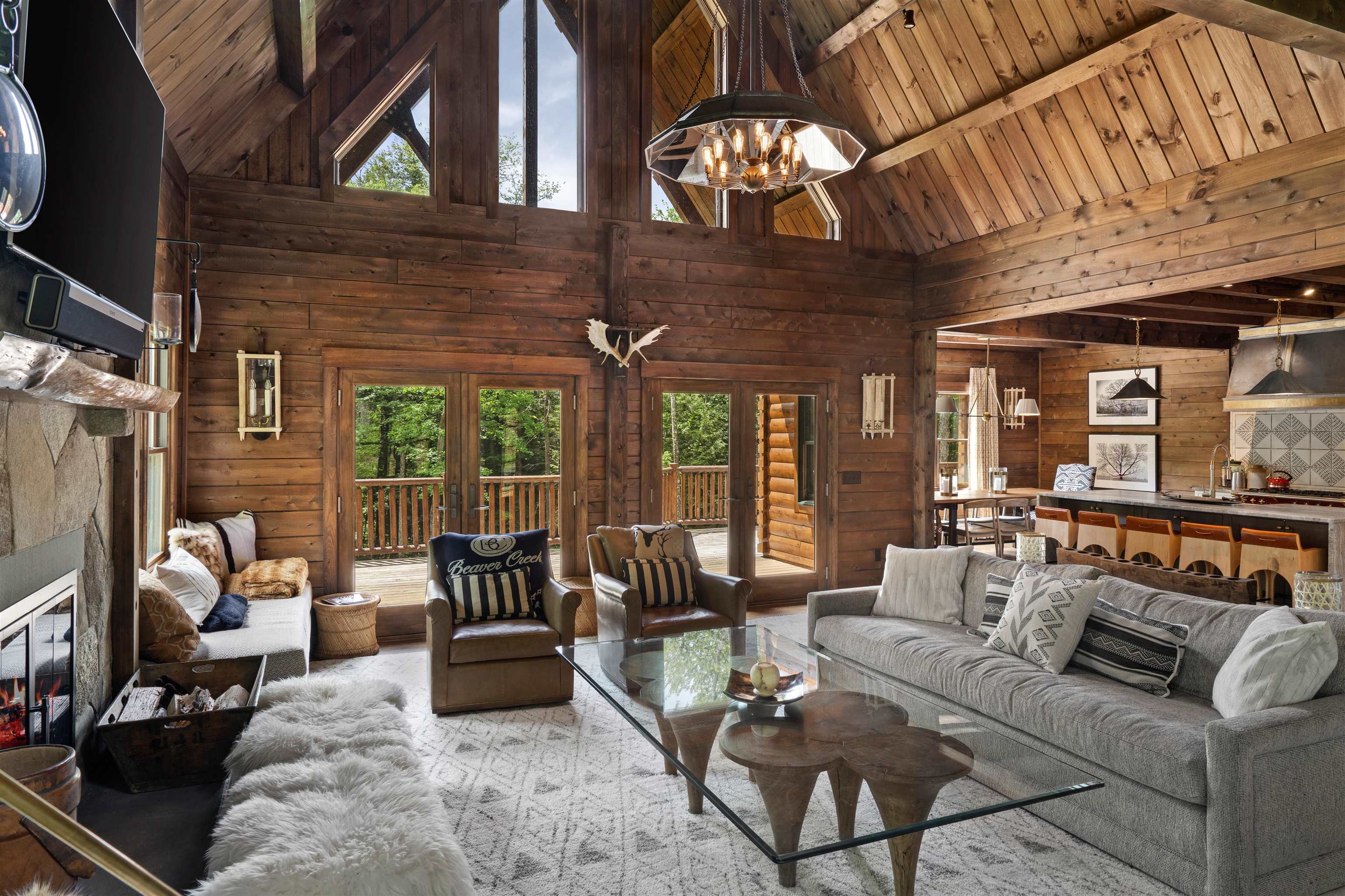 This custom built 2018 log home, designed by RH Log Works and Hilderbrand Interiors, offers the ultimate in sophistication and luxury. Featured in Better Homes and Gardens, New England Home and Country Home magazines, this 5 bedroom, 4.5 bathroom sanctuary (plus extra bunk room) is nestled on 2.2 wooded acres with a river running alongside. Just 4 minutes from Hermitage Club and 10 minutes from Mt Snow. The 5, 110 square feet of meticulously designed living space seamlessly blends modern elegance with timeless log cabin charm including a kitchen with Lacanche Citeaux range, tile backsplash, and custom steel-and-brass hood, great room with stunning stone fireplace, guest bath, primary suite with vaulted ceilings, custom bath with double vanity and walk-in shower, additional first floor guest room, with en suite bath, second floor with two bedrooms and a full bath, with additional loft space, lower level family room with 9 foot ceilings, game room, wet bar, bunk room and bath, and bonus bunk space, as well as laundry room. The exterior includes custom masonry, back stone patio, hot tub, front and rear porches, and extensive custom lighting. Throughout the home, custom cabinetry, premium finishes, and impeccable craftsmanship are evident, ensuring an unparalleled level of luxury. Whether you are looking to entertain, unwind after a day on the slopes, or simply enjoy the beauty of mountain living, this exceptional residence provides it all. Being offered furnished and turn key.