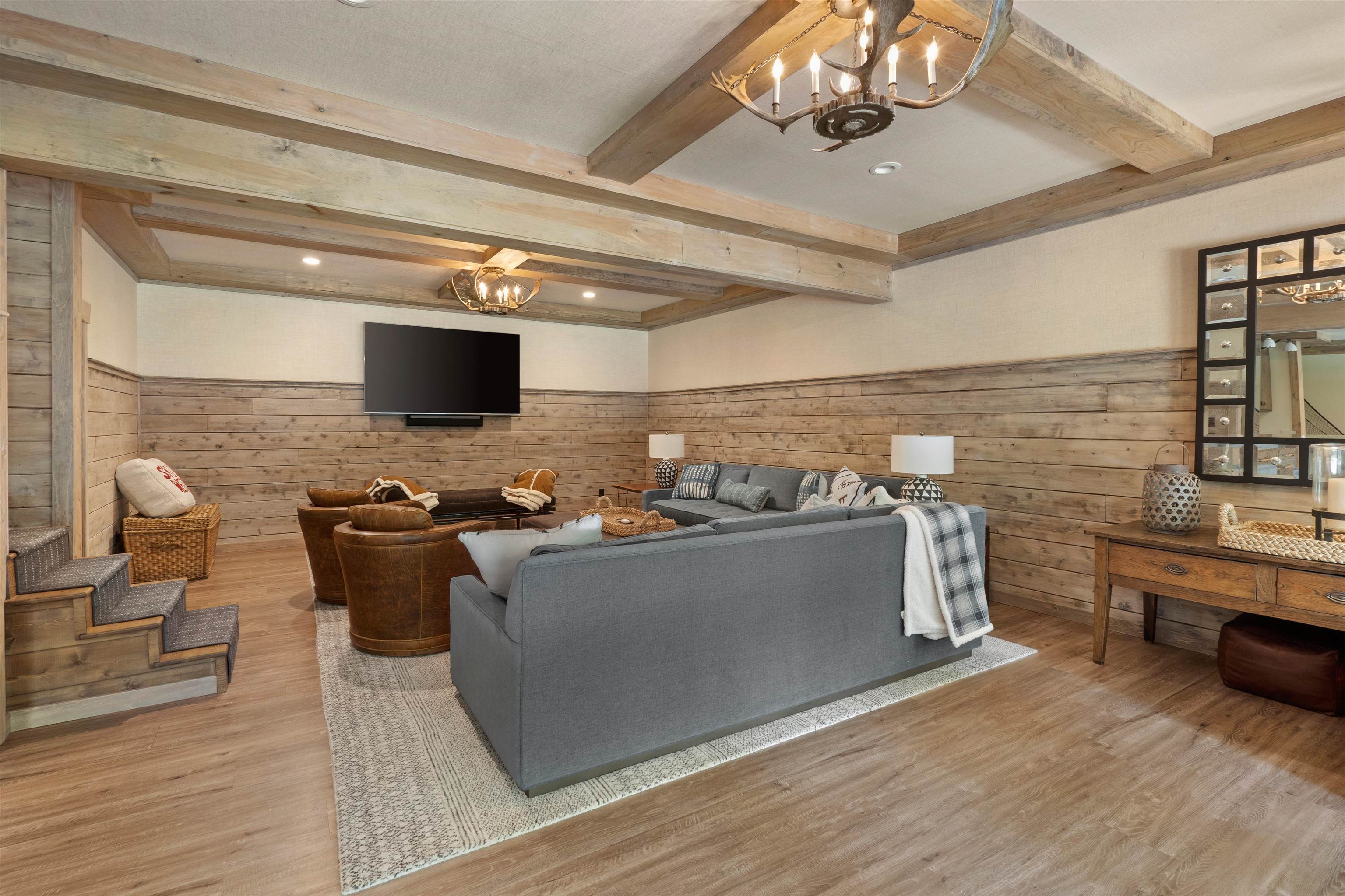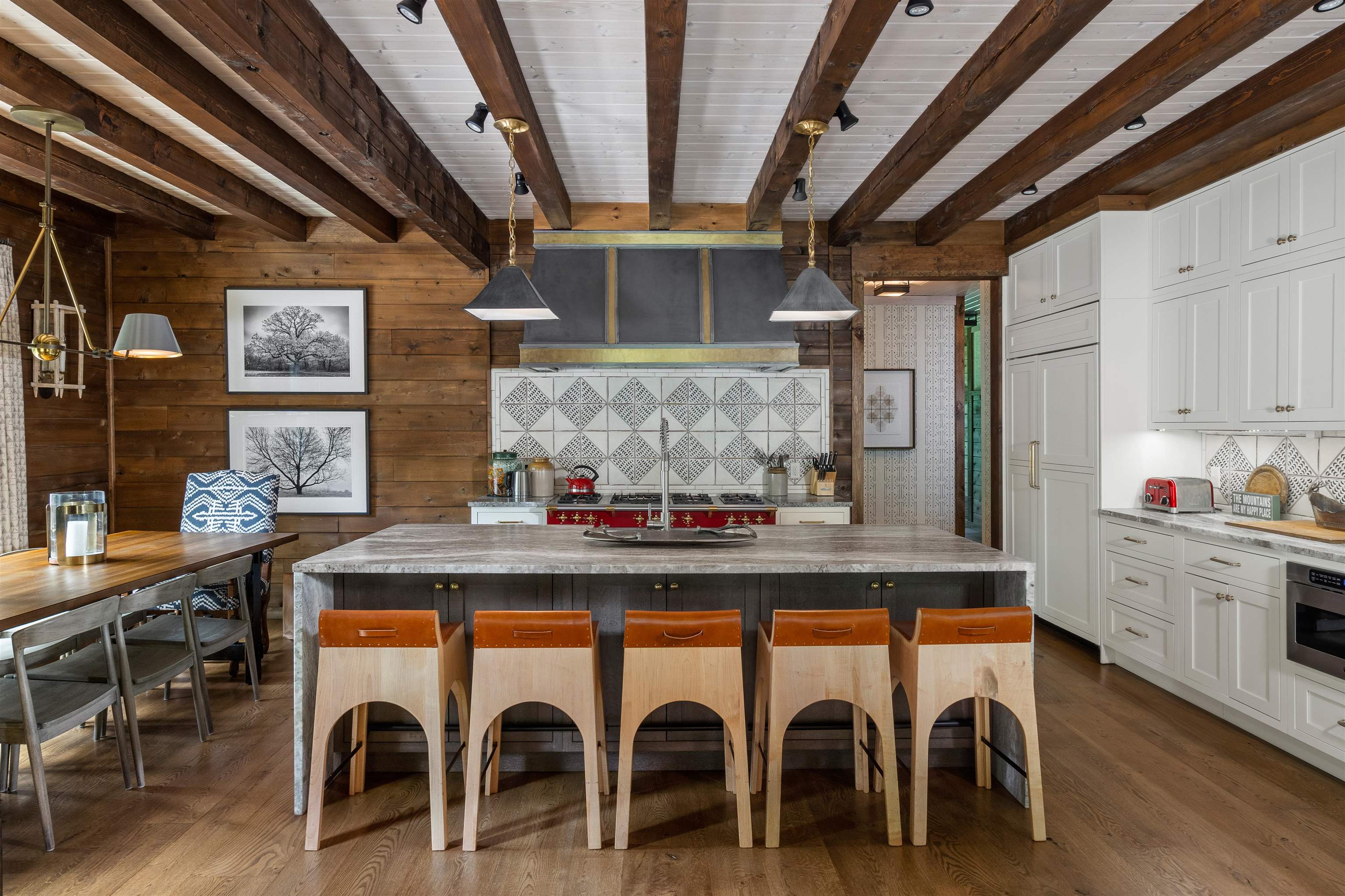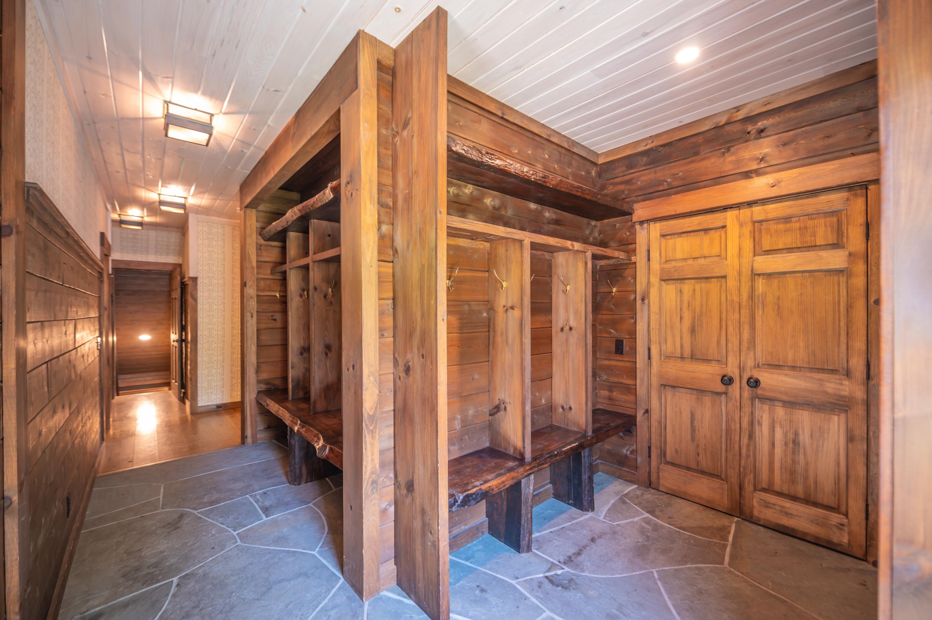 This custom built 2018 log home, designed by RH Log Works and Hilderbrand Interiors, offers the ultimate in sophistication and luxury. Featured in Better Homes and Gardens, New England Home and Country Home magazines, this 5 bedroom, 4.5 bathroom sanctuary (plus extra bunk room) is nestled on 2.2 wooded acres with a river running alongside. Just 4 minutes from Hermitage Club and 10 minutes from Mt Snow. The 5, 110 square feet of meticulously designed living space seamlessly blends modern elegance with timeless log cabin charm including a kitchen with Lacanche Citeaux range, tile backsplash, and custom steel-and-brass hood, great room with stunning stone fireplace, guest bath, primary suite with vaulted ceilings, custom bath with double vanity and walk-in shower, additional first floor guest room, with en suite bath, second floor with two bedrooms and a full bath, with additional loft space, lower level family room with 9 foot ceilings, game room, wet bar, bunk room and bath, and bonus bunk space, as well as laundry room. The exterior includes custom masonry, back stone patio, hot tub, front and rear porches, and extensive custom lighting. Throughout the home, custom cabinetry, premium finishes, and impeccable craftsmanship are evident, ensuring an unparalleled level of luxury. Whether you are looking to entertain, unwind after a day on the slopes, or simply enjoy the beauty of mountain living, this exceptional residence provides it all. Being offered furnished and turn key.