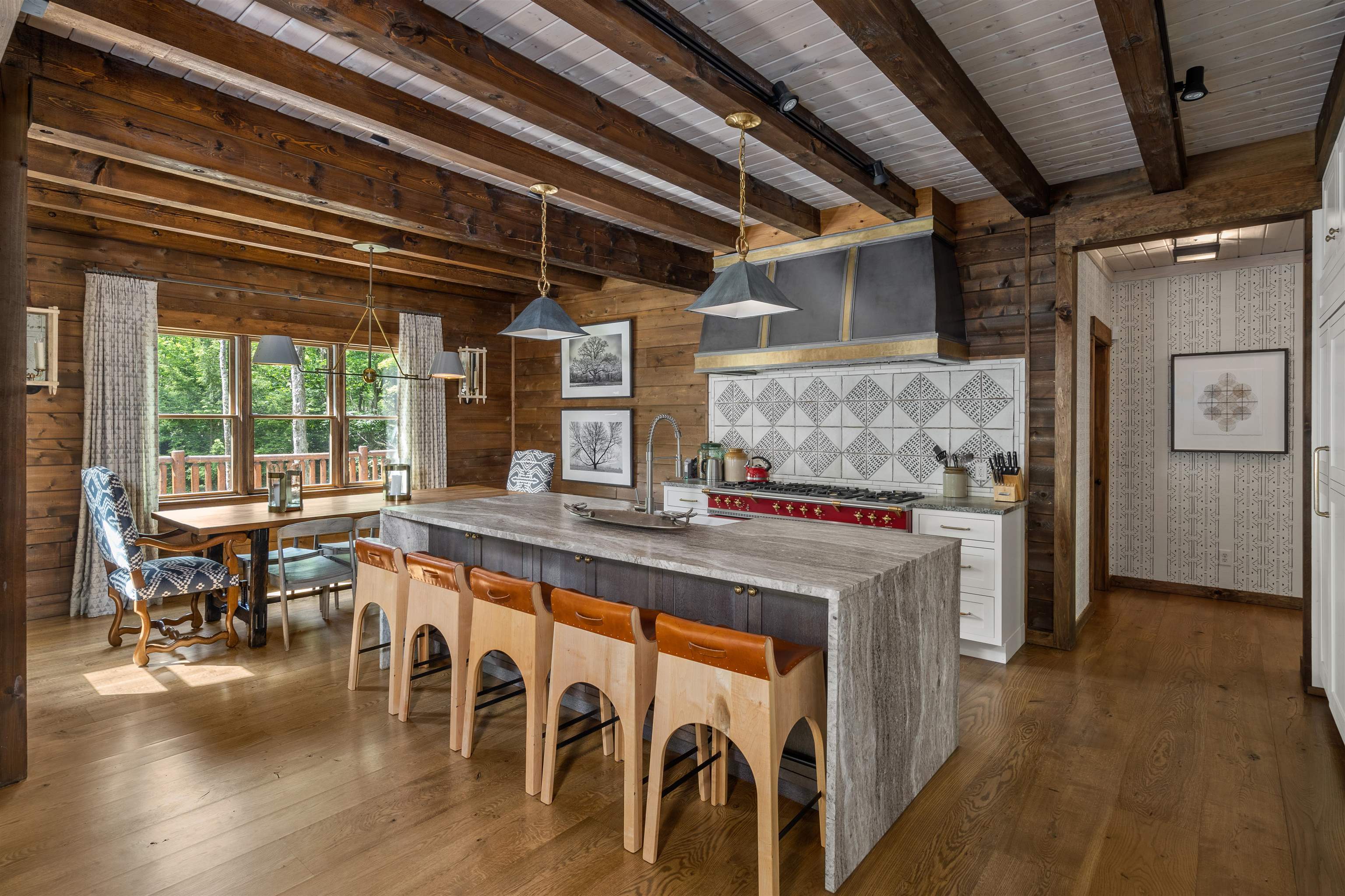 - Cathedral Ceiling, Ceiling Fan, Dining Area, Wood Fireplace, Hearth, Kitchen Island, Primary BR w/ BA, Natural Light, Natural Woodwork, Vaulted Ceiling, Wet Bar