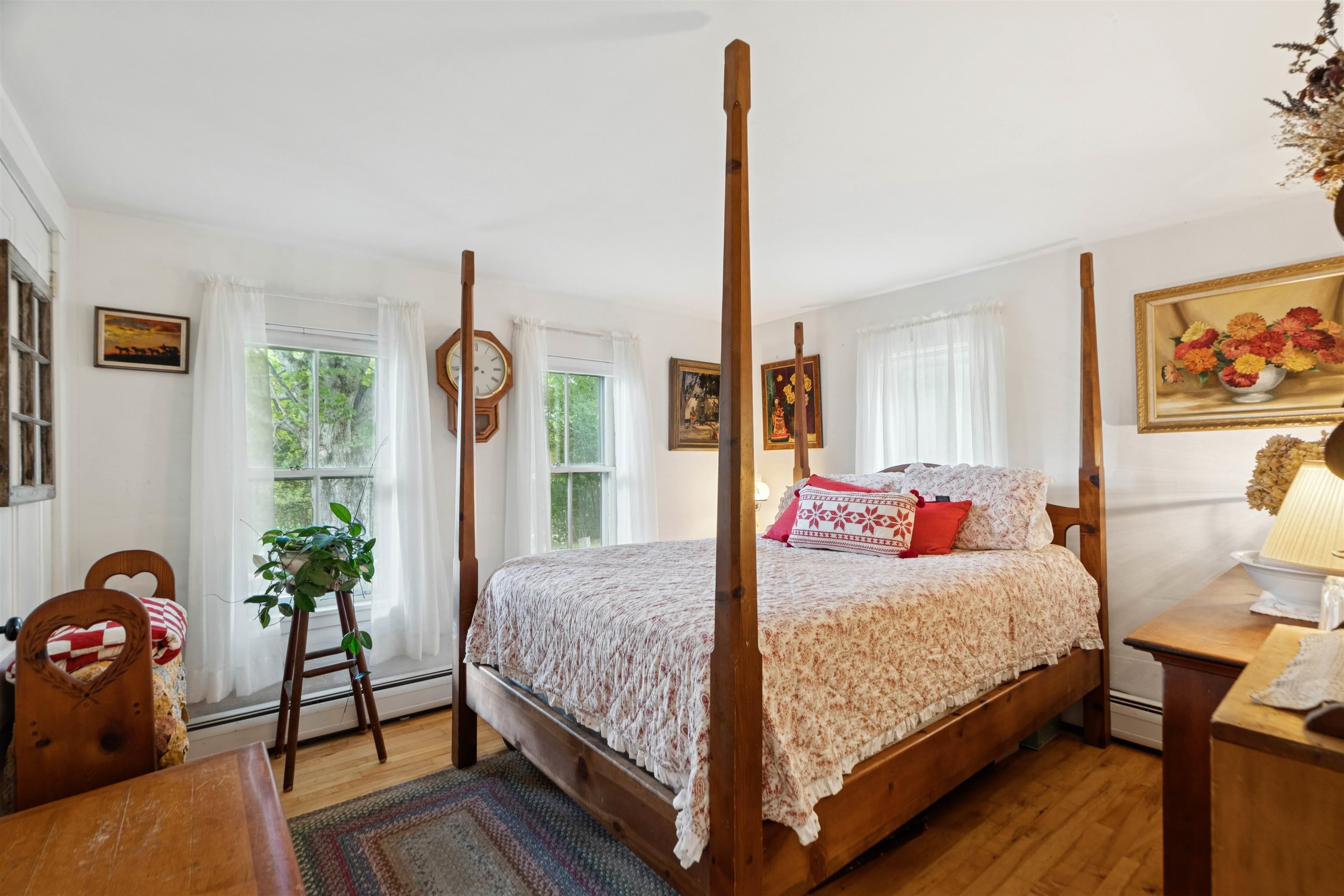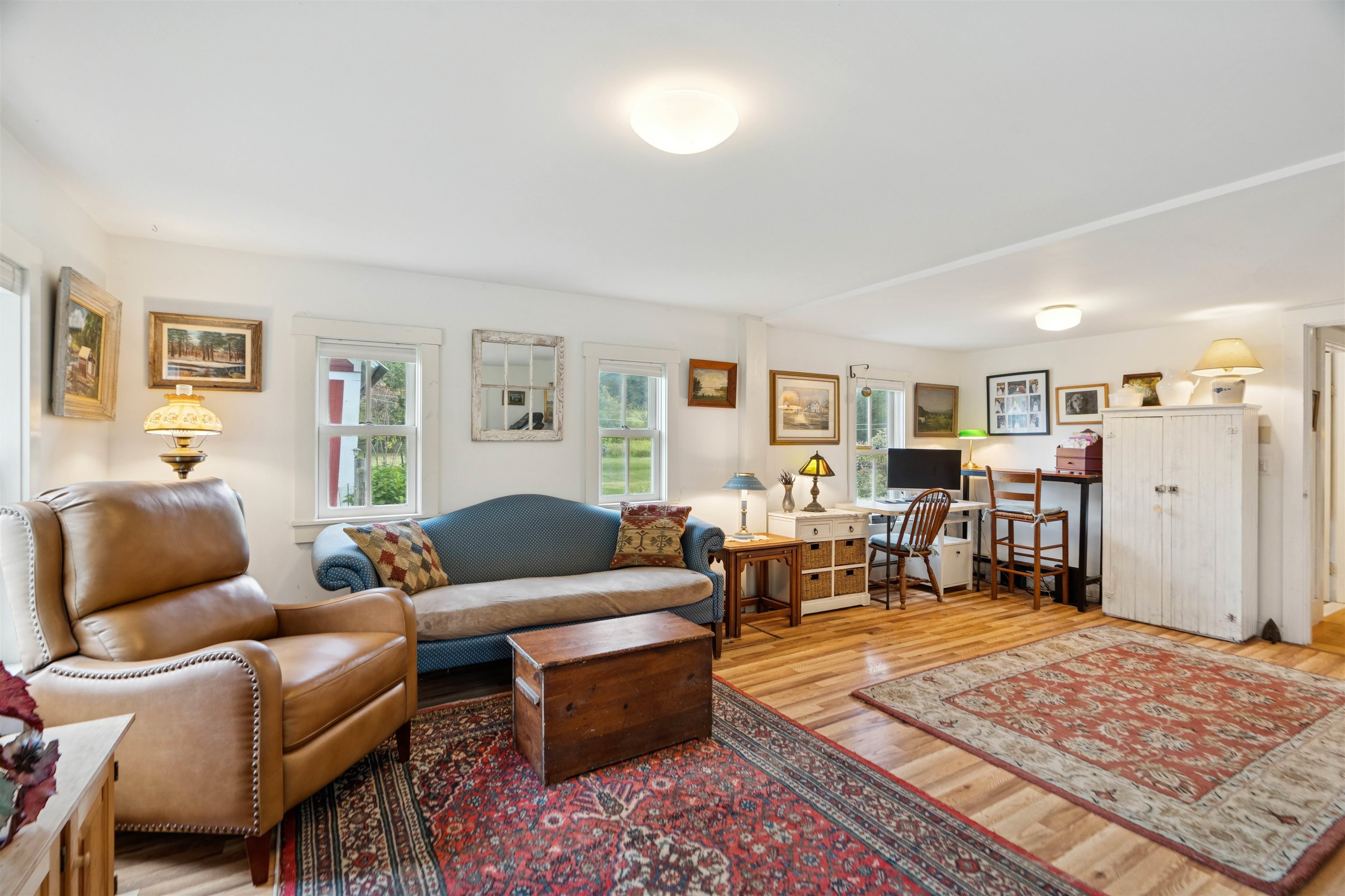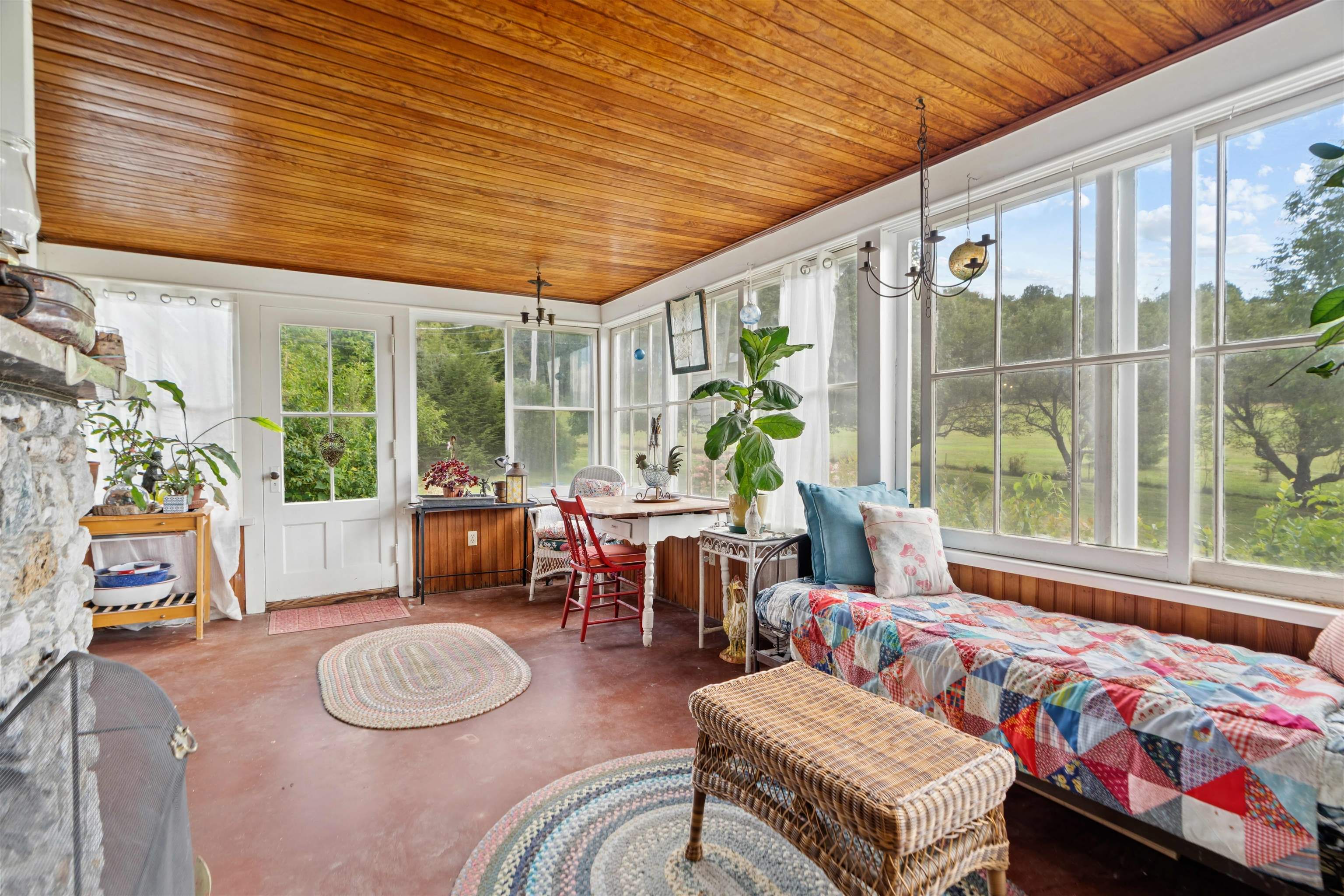 A traditional Vermont farm house surrounded by beautiful hay fields and gorgeous mountain views. Spend mornings or evenings relaxing on the wraparound covered porch while taking in the amazing sun sets or enjoying the wildlife in the open fields. Off the kitchen is an open deck which overlooks the back yard and extensive flower and vegetable gardens. The house is outfitted with 4 bedrooms, 2 full bathrooms, along with multiple living spaces for everyone to enjoy. The country kitchen and pantry are open to the dining and living room, which is equipped with a woodstove for those chilly nights. Off the living room find a charming 3 season sunroom with a quartz stone fireplace; perfect for warm summer evenings or for a quiet reading nook. Also included on the first floor is a main floor bedroom, full bathroom, along with the entrance/mudroom. The 2 detached barns are in good condition and can be used for animals, storage or parking. The property has been well loved and cared for over the years and is now looking for the new steward who will love the home as much and the current owners. Showings start on September 7th at 11-1 with the open house.