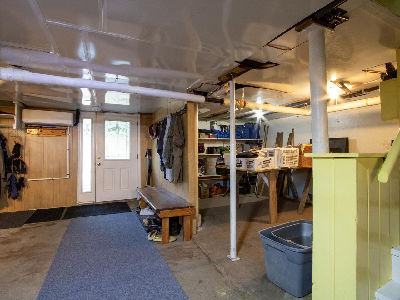- Concrete Floor, Full, Interior Stairs, Unfinished, Walkout, Interior Access, Exterior Access