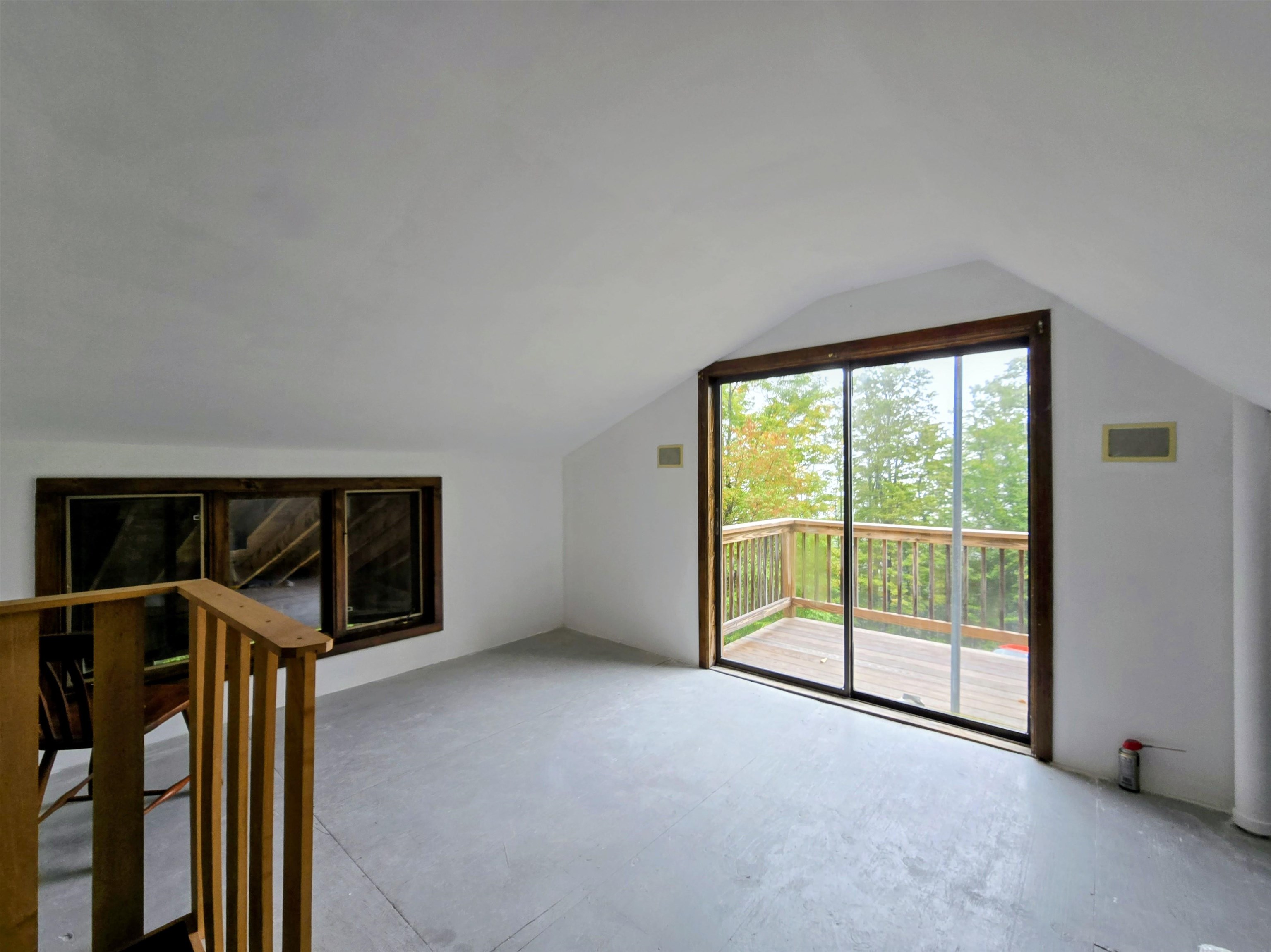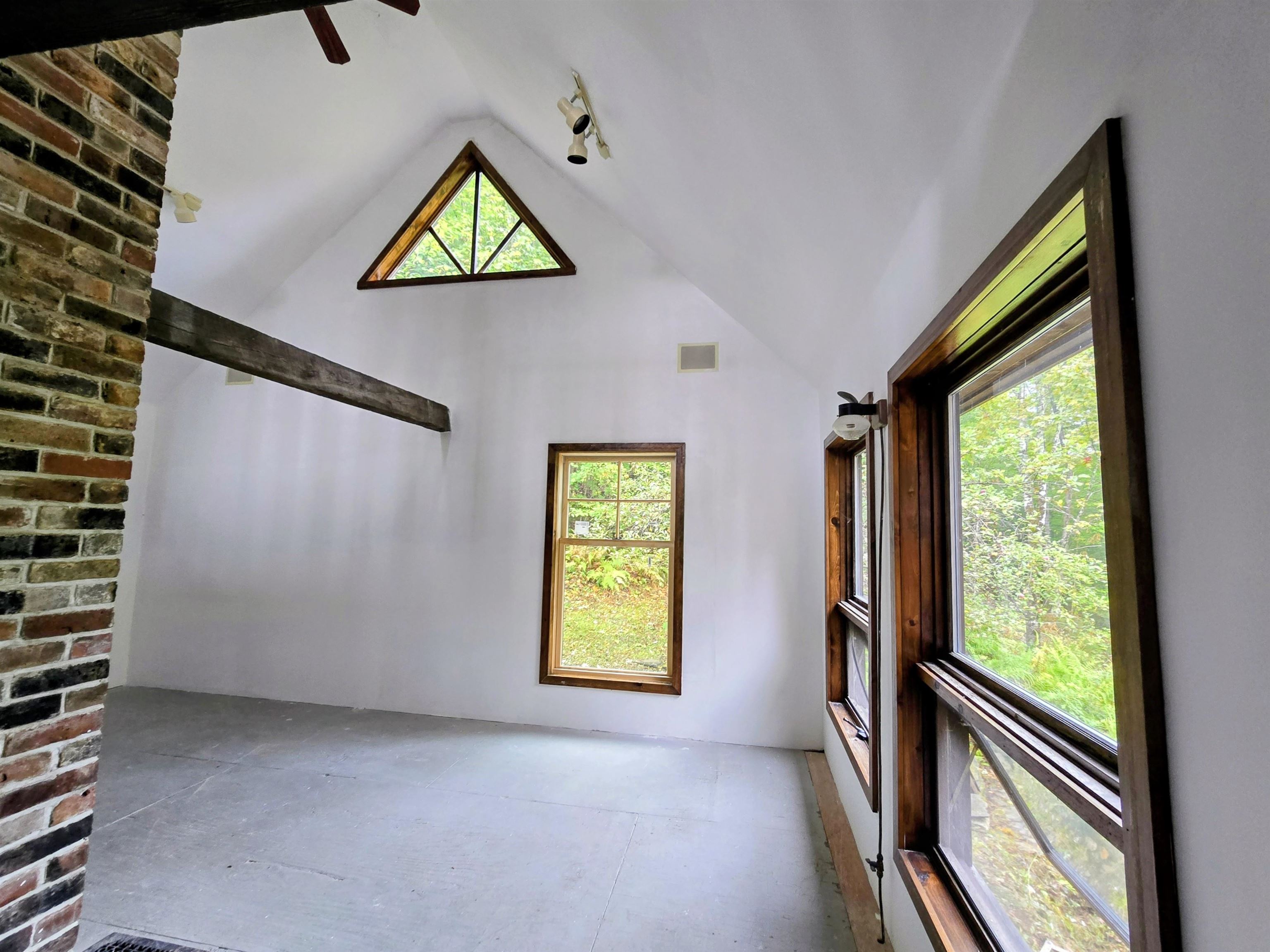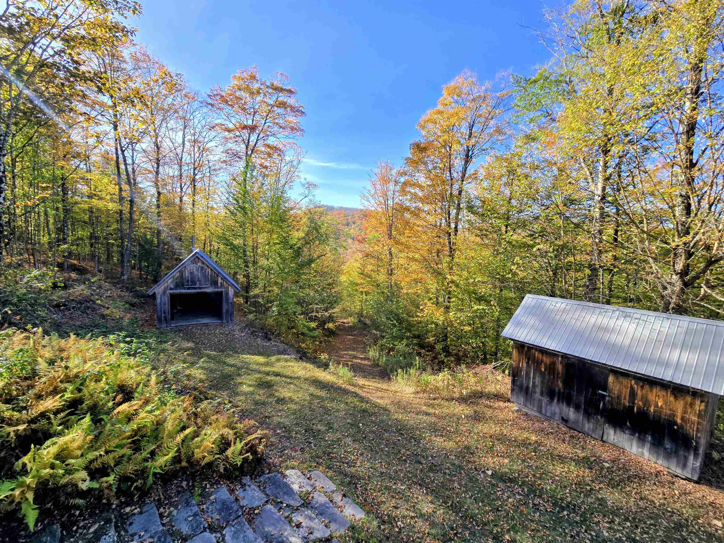 Escape to your own private retreat with this off-grid camp situated on a 30+/- acre property on one of the most beautiful roads in Corinth, Vermont. On a Class IV section, but not far from Class III and power. The building is thoughtfully designed on the outside with cedar shingles and a standing seam metal roof, and on the inside with a cathedral ceiling, and a spacious open living area that is warm and inviting. A loft bedroom with sliding doors opens to a private deck, perfect for enjoying the mountain air and views, with the potential for year-round vistas through selective clearing. The kitchen is equipped with a propane range and propane refrigerator, and additional features include a 35, 000 BTU propane wall heater, propane lamps, and a partial bath. A three-season screened porch welcomes you at the entry, while the basement can be accessed both inside and through a garage door under the porch. A second garage door allows access to a large stand-alone outbuilding with lots of space for equipment or a vehicle. There is a large wood stove in the basement. Trails throughout the property provide access for hiking, and outdoor adventure. The land is mostly forested with sugar maple, beech, and several varieties of birch. Whether you are seeking a weekend getaway, a hunting retreat, or a quiet escape surrounded by nature, this unique offering delivers the ideal rustic Vermont lifestyle.
