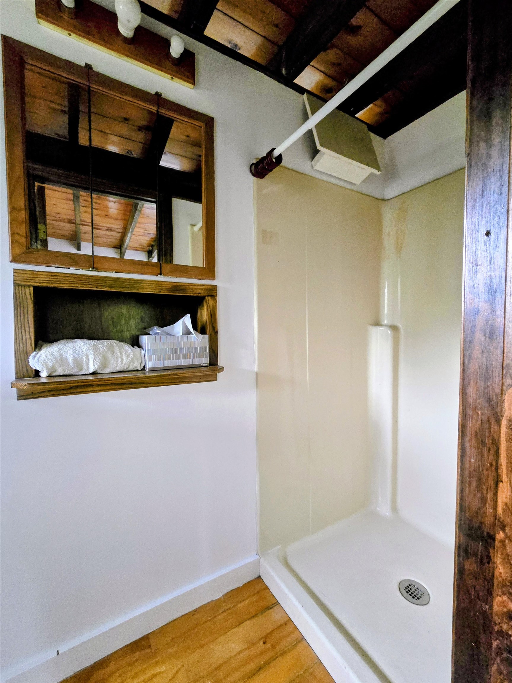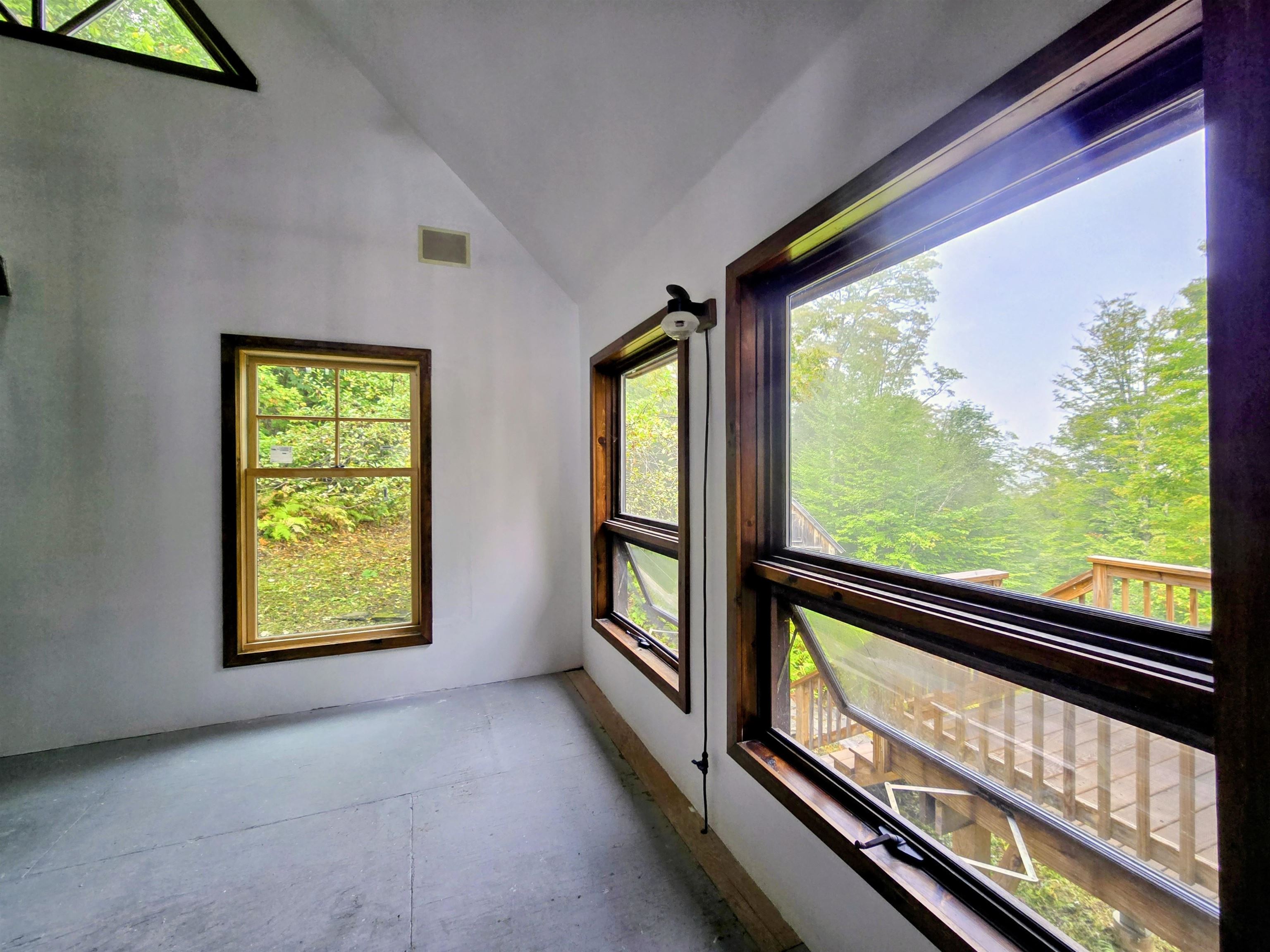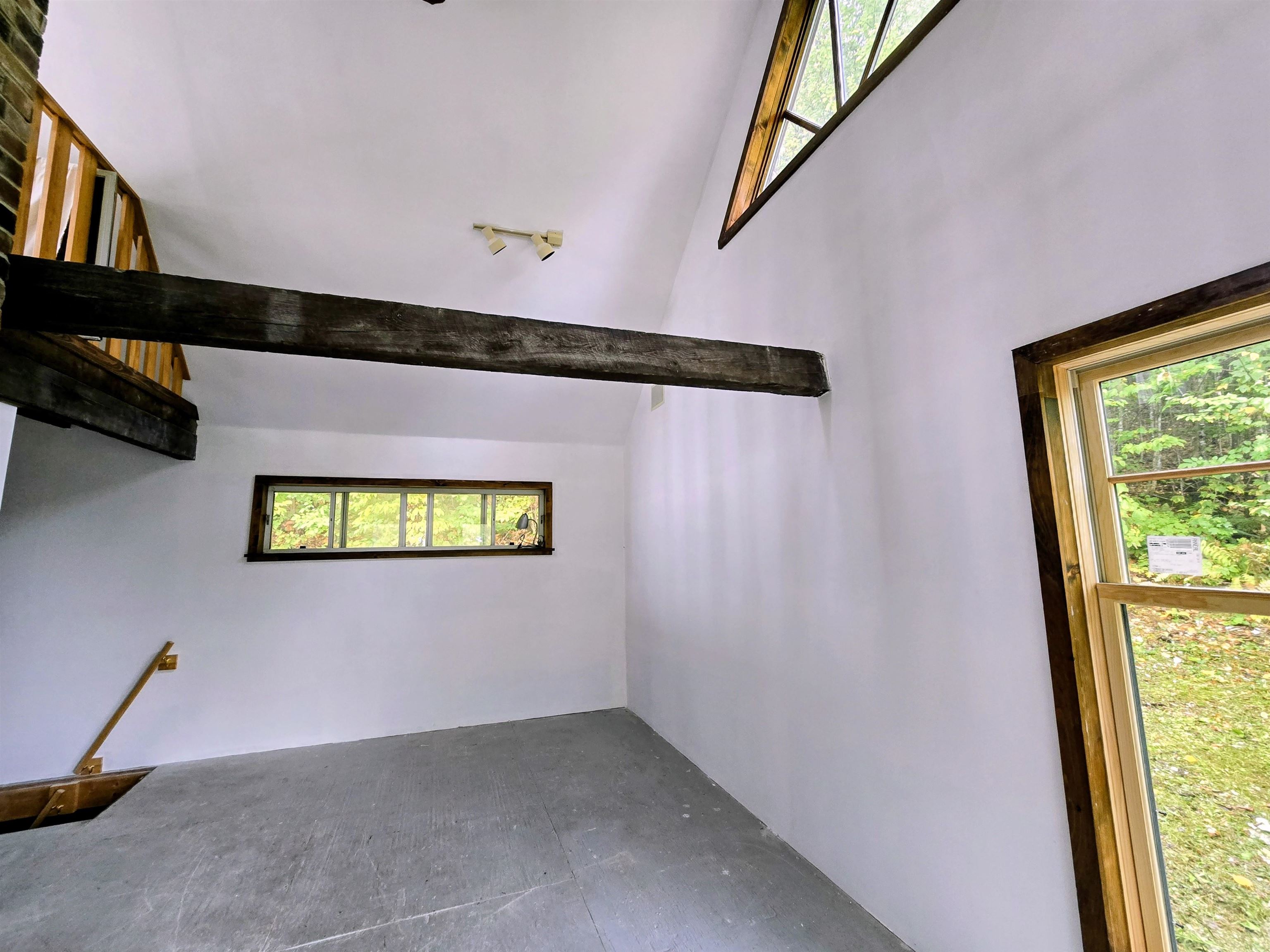 Escape to your own private retreat with this off-grid camp situated on a 30+/- acre property on one of the most beautiful roads in Corinth, Vermont. On a Class IV section, but not far from Class III and power. The building is thoughtfully designed on the outside with cedar shingles and a standing seam metal roof, and on the inside with a cathedral ceiling, and a spacious open living area that is warm and inviting. A loft bedroom with sliding doors opens to a private deck, perfect for enjoying the mountain air and views, with the potential for year-round vistas through selective clearing. The kitchen is equipped with a propane range and propane refrigerator, and additional features include a 35, 000 BTU propane wall heater, propane lamps, and a partial bath. A three-season screened porch welcomes you at the entry, while the basement can be accessed both inside and through a garage door under the porch. A second garage door allows access to a large stand-alone outbuilding with lots of space for equipment or a vehicle. There is a large wood stove in the basement. Trails throughout the property provide access for hiking, and outdoor adventure. The land is mostly forested with sugar maple, beech, and several varieties of birch. Whether you are seeking a weekend getaway, a hunting retreat, or a quiet escape surrounded by nature, this unique offering delivers the ideal rustic Vermont lifestyle.