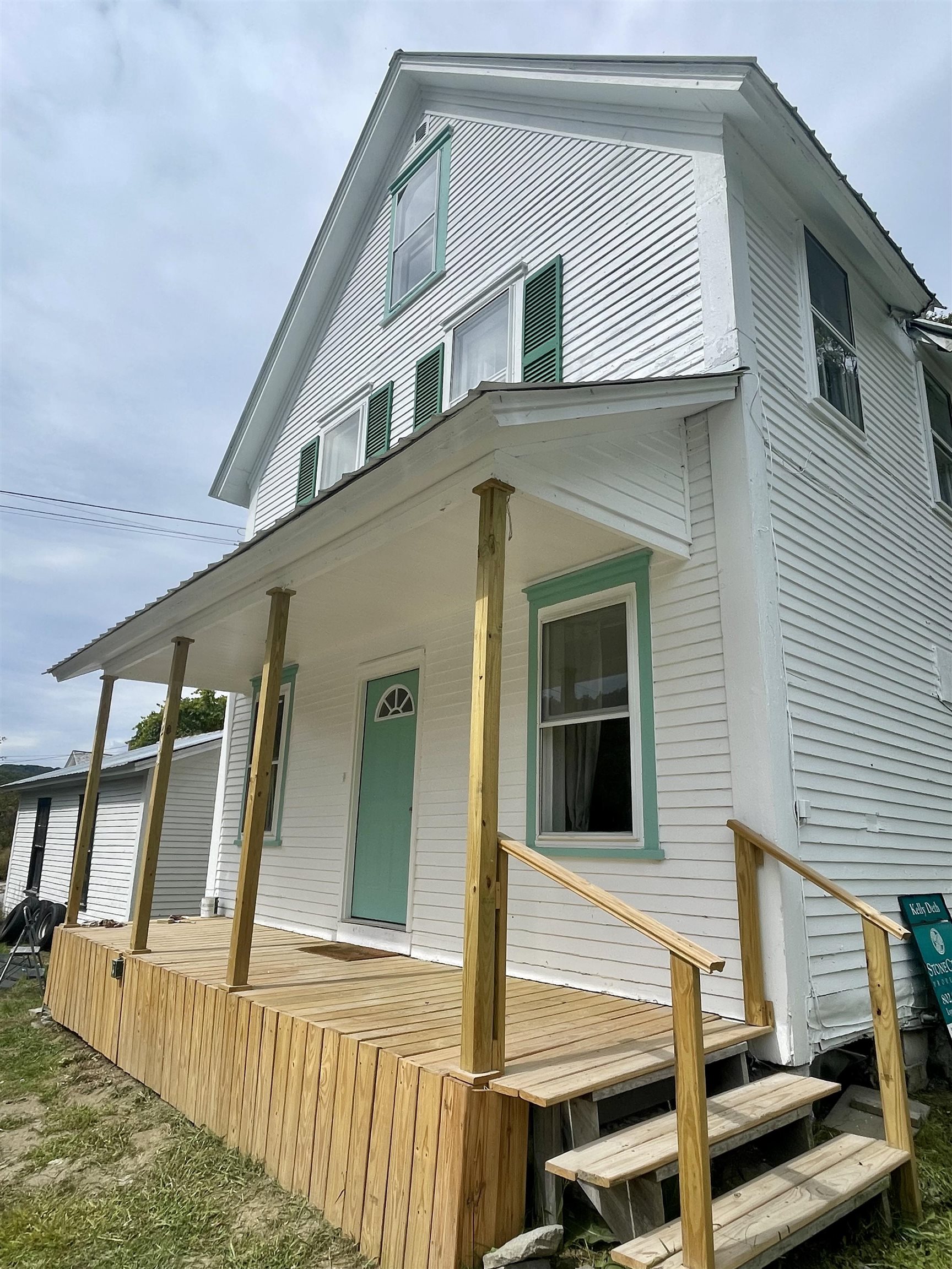 Newly renovated home with an affordable price tag! This home is situated very close to I-91 and an easy commute to Dartmouth and the Lebanon, NH area. Previously a two-family home and could once again be 2 units if you choose. The first floor offers two large living rooms, a full bath, laundry area, and two bedrooms. The second floor offers: kitchen, dining area, living room, 3/4 bath and a bedroom. The third floor offers two more bedrooms. Situated on a small but useful lot that houses a barn, patio area and firepit. Enjoy listening to the sound of the Wells River just across the road. Updated roof, paint, flooring and light fixtures to name a few. Come see!