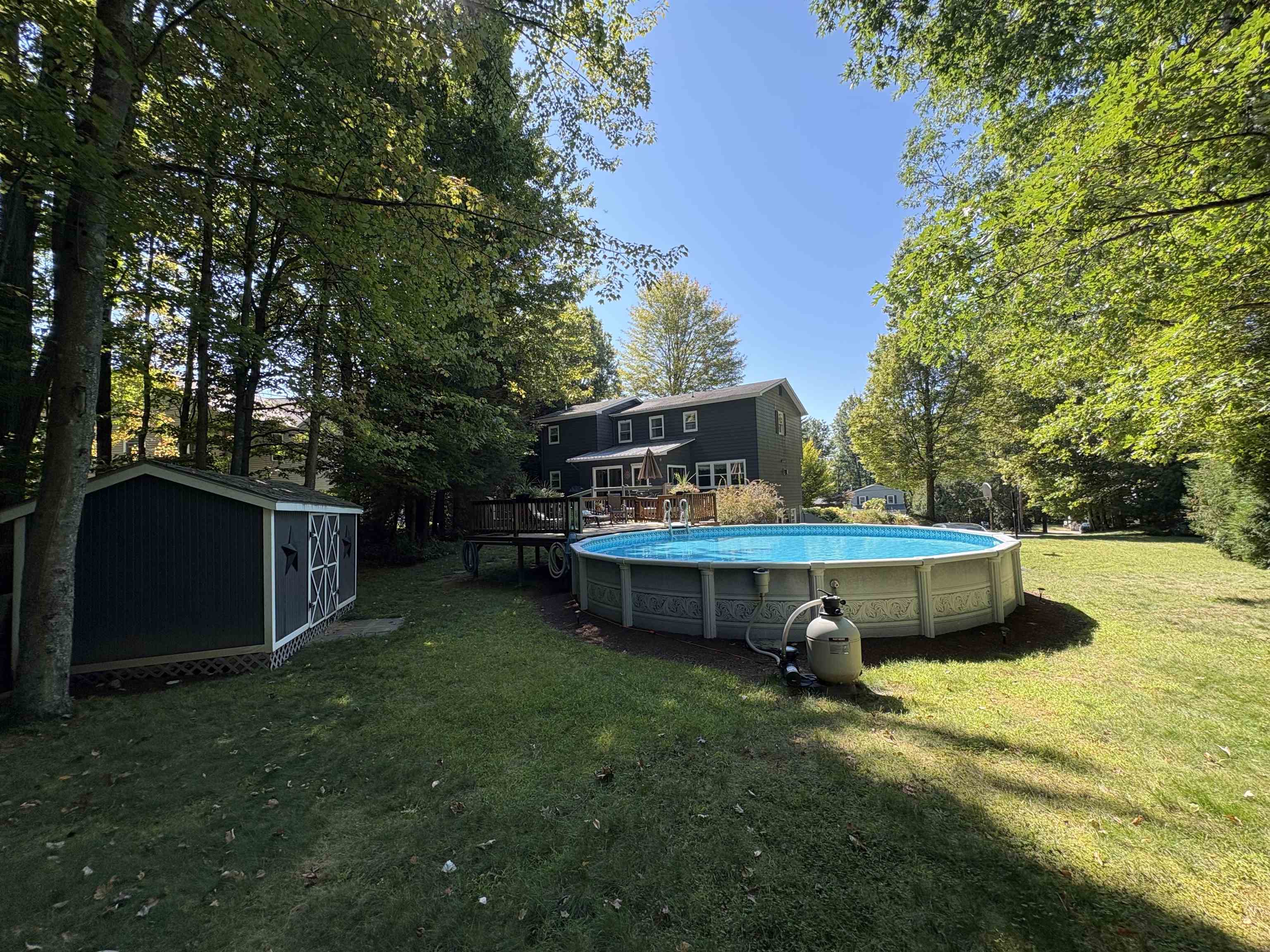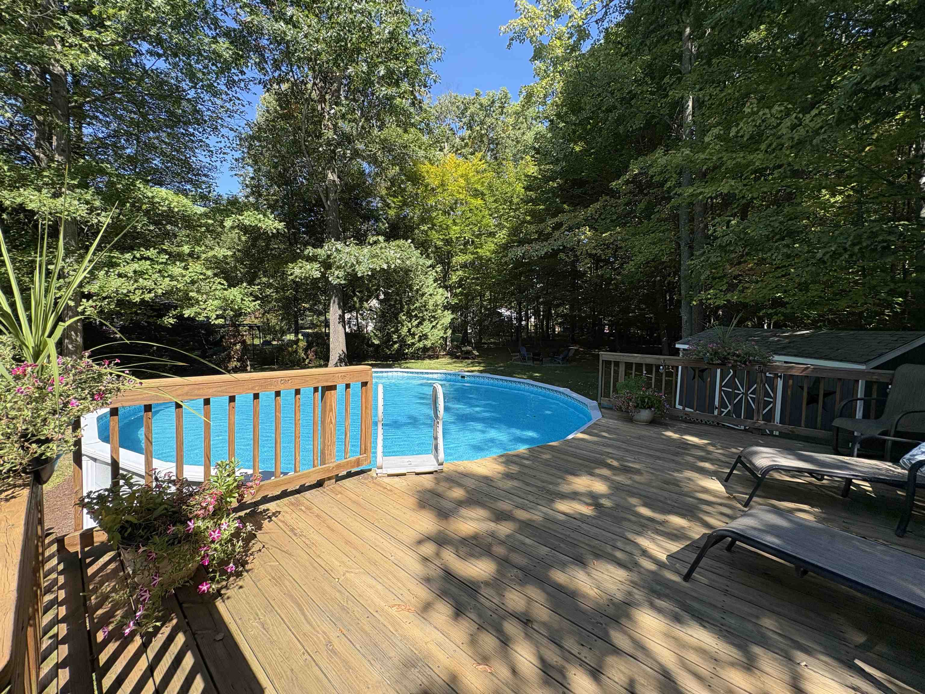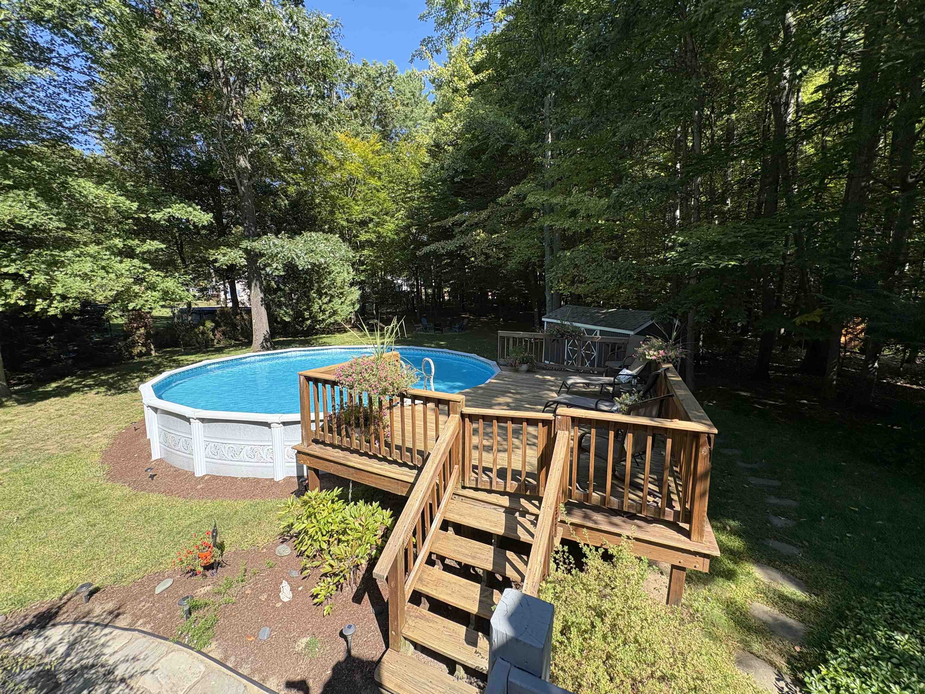 Discover this spacious 4-bedroom, 3-bath home set on a private hilltop lot. The open kitchen and living room create a welcoming space for everyday living, while the dining room offers beautiful views of the backyard. A Jotul gas stove adds warmth and charm to the formal living room. Step into the enclosed porch or out onto the deck to relax and take in the serenity of the wooded yard. The lower level features a versatile rec room, laundry room, and workshop, providing plenty of space for hobbies and storage. Outside, enjoy a landscaped yard complete with a pool, firepit, and peaceful natural surroundings. Nestled in a quiet neighborhood yet close to many amenities, this home offers both comfort and convenience.