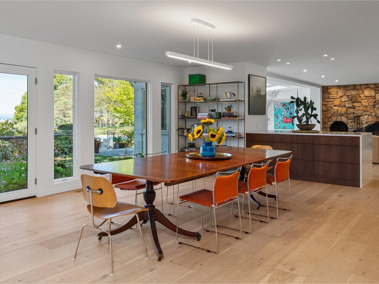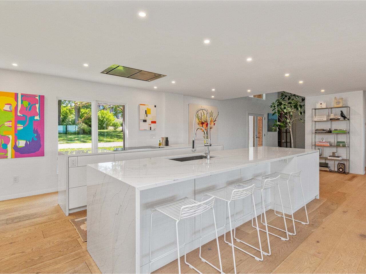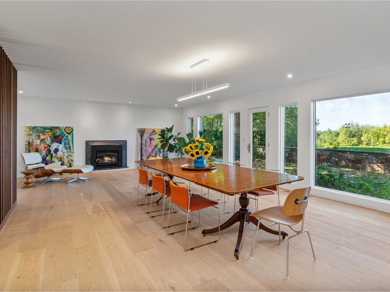 Set on a rare 3.62-acre property that gently rolls toward the lake, this 5-bedroom residence offers over 4, 500 sq. ft. and pairs Vermont’s natural beauty with a sleek, modern aesthetic. Enjoy year-round sunsets over Lake Champlain and the Adirondacks, minutes from UVM Medical Center, the airport, downtown Burlington, and the bike path. The majority of the first floor was reimagined in 2020, opening the home to an airy, light-filled layout designed to take in westerly views. Walls of glass, skylights, and wide-plank flooring create a seamless flow between living, dining, and entertaining spaces. With generous wall space throughout, the home is an art lover’s dream. The chef’s kitchen features Miele appliances, striking white quartzite counters, and a unique design with two parallel islands that maximize both function and entertaining space. A den with Rumford fireplace adds warmth, while a first-floor office provides a quiet retreat. Two primary suites, one on each floor, offer spa-like baths with tiled showers, double vanities, and custom walk-in closets. Upstairs, an additional three bedrooms share a full guest bath. Designed for both lifestyle and leisure, the home includes a heated pool, fenced backyard, lighted tennis court, and an indoor racquetball court. A large mudroom, private half bath, and attached 3-car garage add everyday ease. This is where Hollywood Hills style meets Vermont living. Expansive, modern, and perfectly sited for sunset views over Lake Champlain.