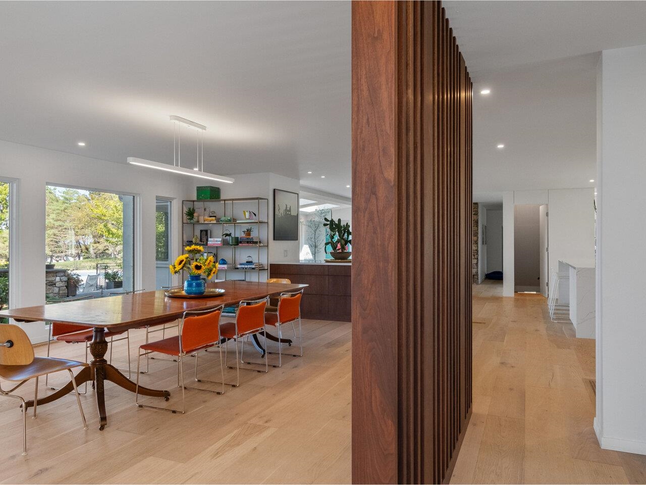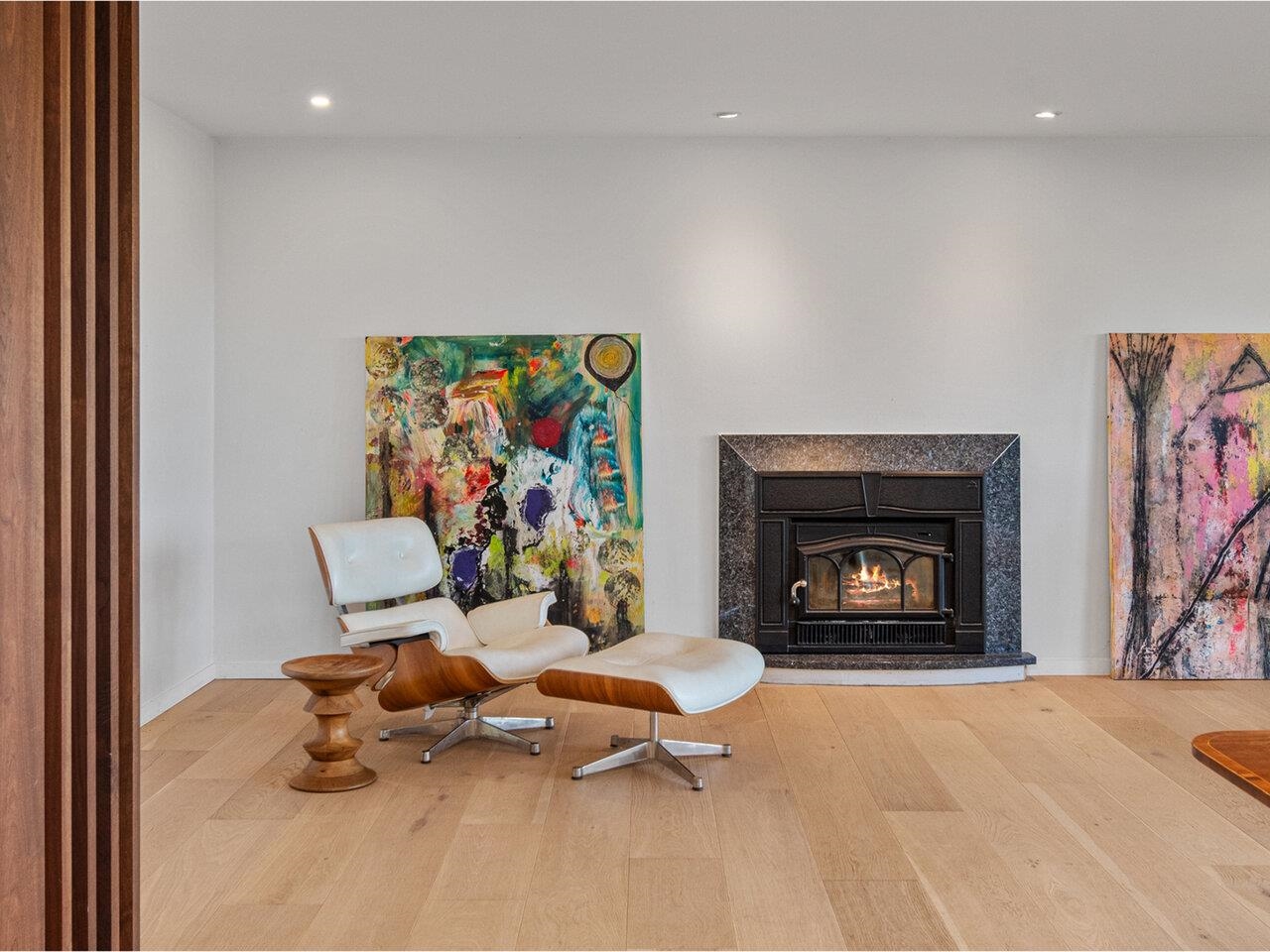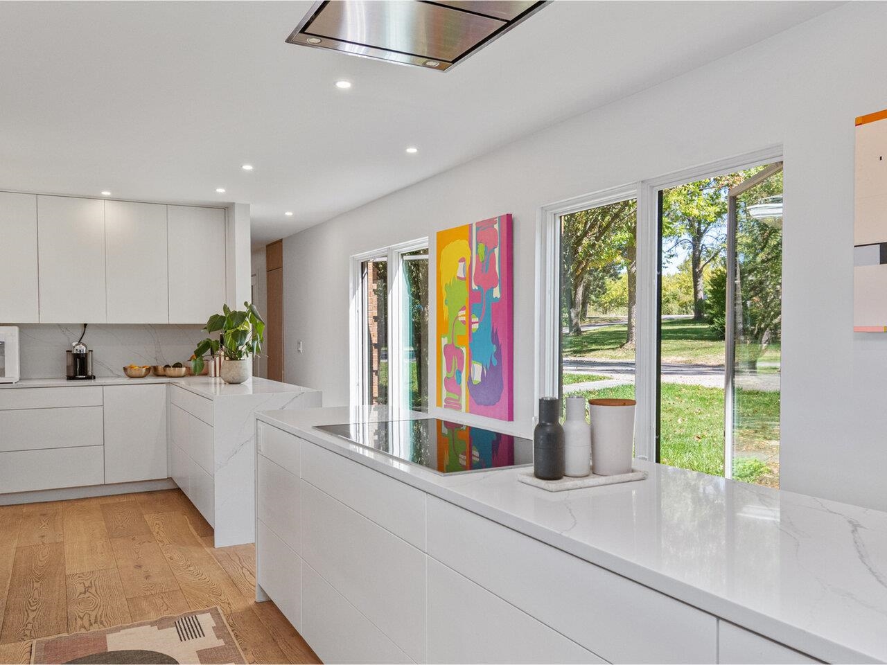 Set on a rare 3.62-acre property that gently rolls toward the lake, this 5-bedroom residence offers over 4, 500 sq. ft. and pairs Vermont’s natural beauty with a sleek, modern aesthetic. Enjoy year-round sunsets over Lake Champlain and the Adirondacks, minutes from UVM Medical Center, the airport, downtown Burlington, and the bike path. The majority of the first floor was reimagined in 2020, opening the home to an airy, light-filled layout designed to take in westerly views. Walls of glass, skylights, and wide-plank flooring create a seamless flow between living, dining, and entertaining spaces. With generous wall space throughout, the home is an art lover’s dream. The chef’s kitchen features Miele appliances, striking white quartzite counters, and a unique design with two parallel islands that maximize both function and entertaining space. A den with Rumford fireplace adds warmth, while a first-floor office provides a quiet retreat. Two primary suites, one on each floor, offer spa-like baths with tiled showers, double vanities, and custom walk-in closets. Upstairs, an additional three bedrooms share a full guest bath. Designed for both lifestyle and leisure, the home includes a heated pool, fenced backyard, lighted tennis court, and an indoor racquetball court. A large mudroom, private half bath, and attached 3-car garage add everyday ease. This is where Hollywood Hills style meets Vermont living. Expansive, modern, and perfectly sited for sunset views over Lake Champlain.