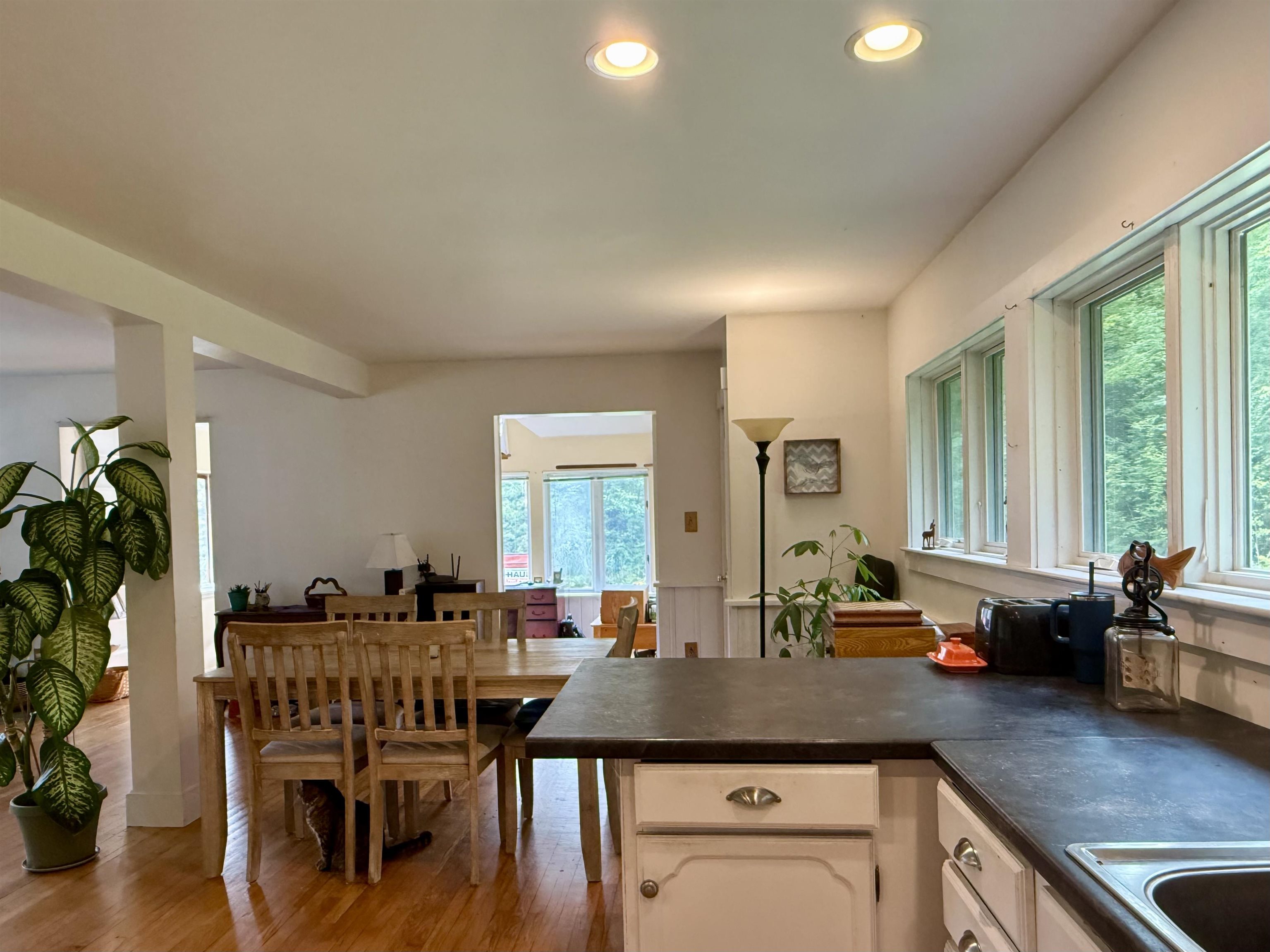 - Attic with Hatch/Skuttle, Ceiling Fan, Dining Area, Kitchen/Dining, Kitchen/Living, Natural Light, Natural Woodwork, Skylight, 1st Floor Laundry