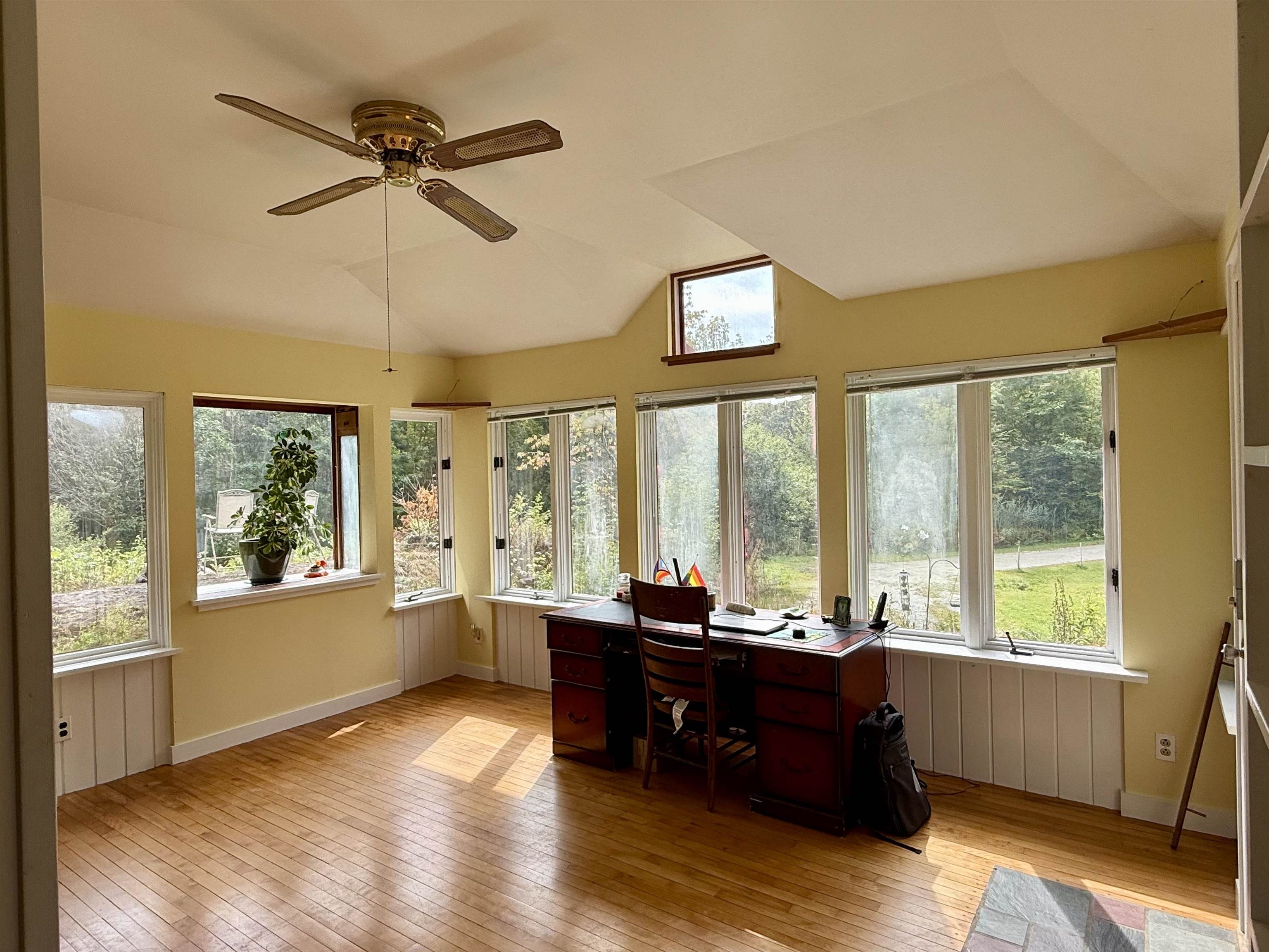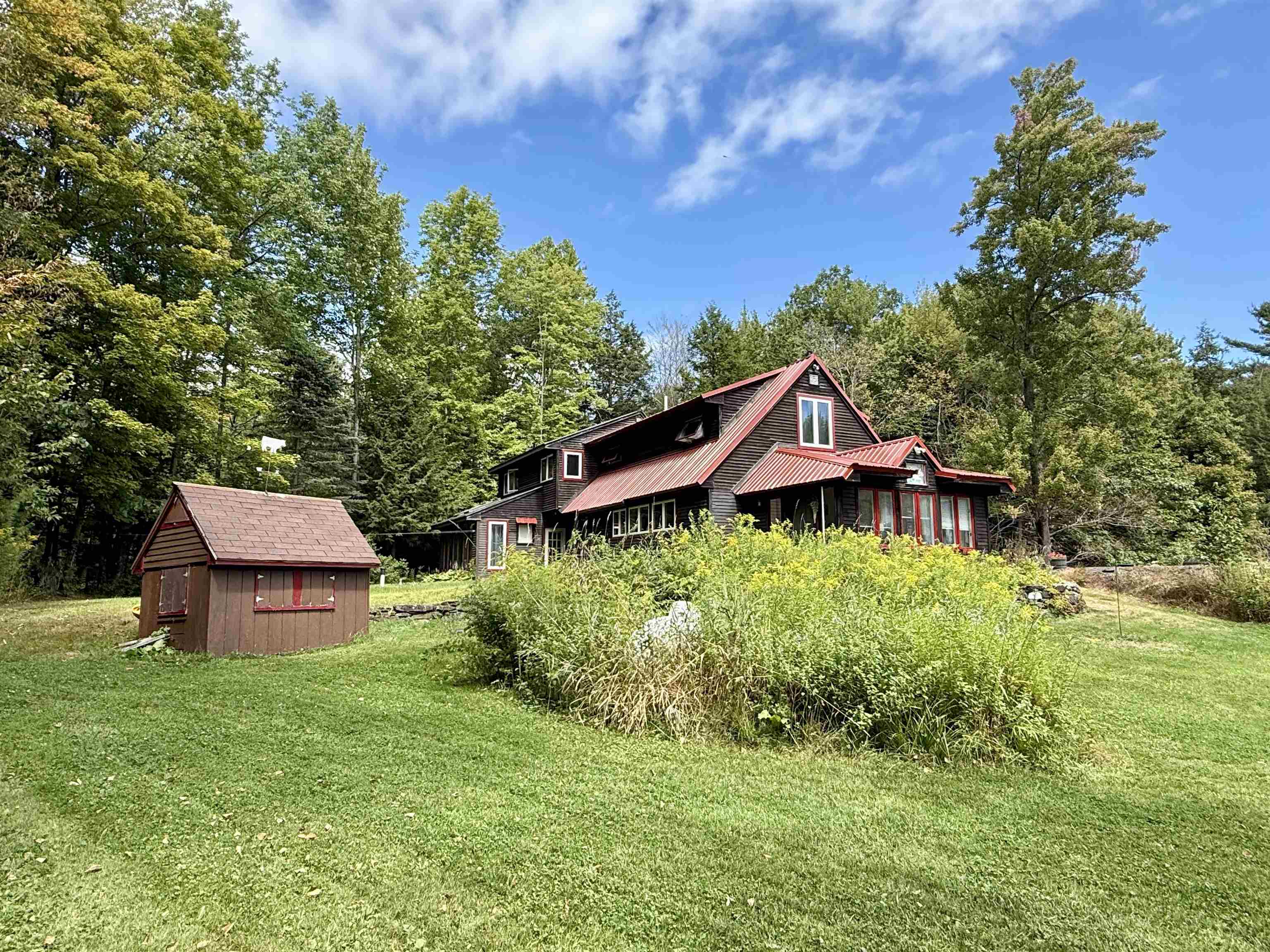Enjoy 12+ acres of peaceful living in your 4 bedroom, 2 bathroom Cape-style home in beautiful Westford! Only 15 minutes to Essex and 5 minutes to Fairfax, this property gives you the privacy you crave while still being close to amenities, stores, schools and entertainment. As you enter the home you come into the open kitchen, living and dining room space that is filled with light and windows, most of which have been replaced. To the left is an office space with its own entrance outside, making it easy to operate an in-home business. To the right of the kitchen you'll find your first floor laundry room and utility room. Beyond the kitchen you'll enter the family room with cozy wood stove, full bathroom, as well as a bonus room. It could be perfect for guests, another office location, or perhaps could become an in-law suite, as both the family room and the bonus room have their own outside entrances. Upstairs, to the right, you have a sitting nook with storage and two generous size bedrooms. To the left of the stairs you'll find a recently updated 3/4 bathroom, small bedroom and then the primary bedroom with walk in closet and vinyl plank flooring. Outside your landscape includes an impressive stone wall, perennials, fruit trees and berry bushes, grape vines, exposed ledge, walking trails, a chicken coop with fenced in area and a barn. This property has a lot to offer, and priced to allow you the ability to make your own improvements and add your personal touch!