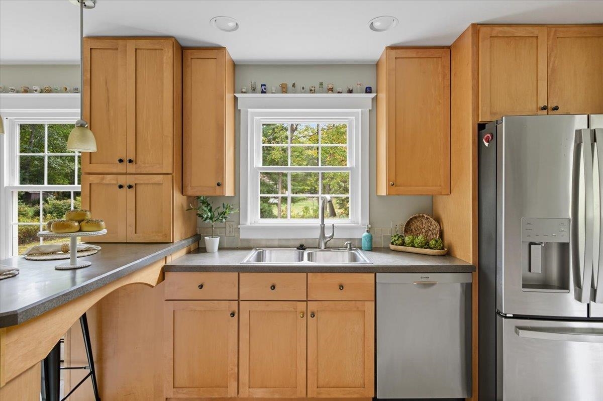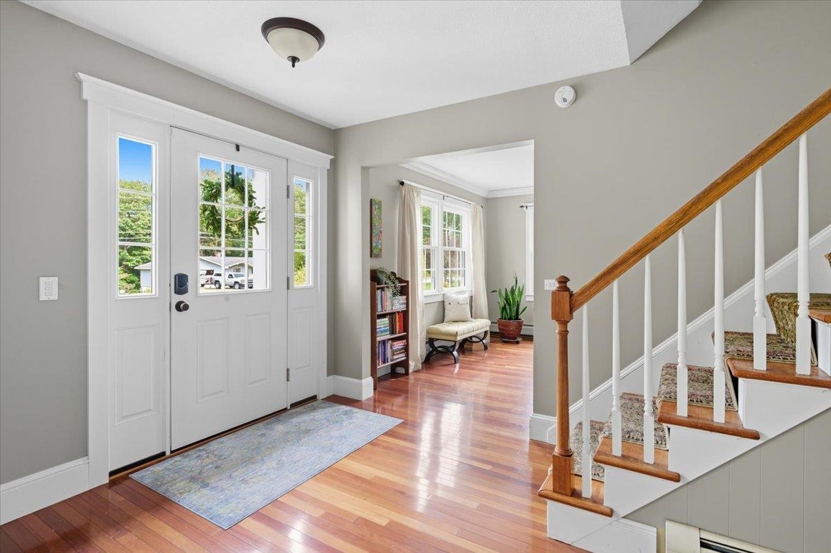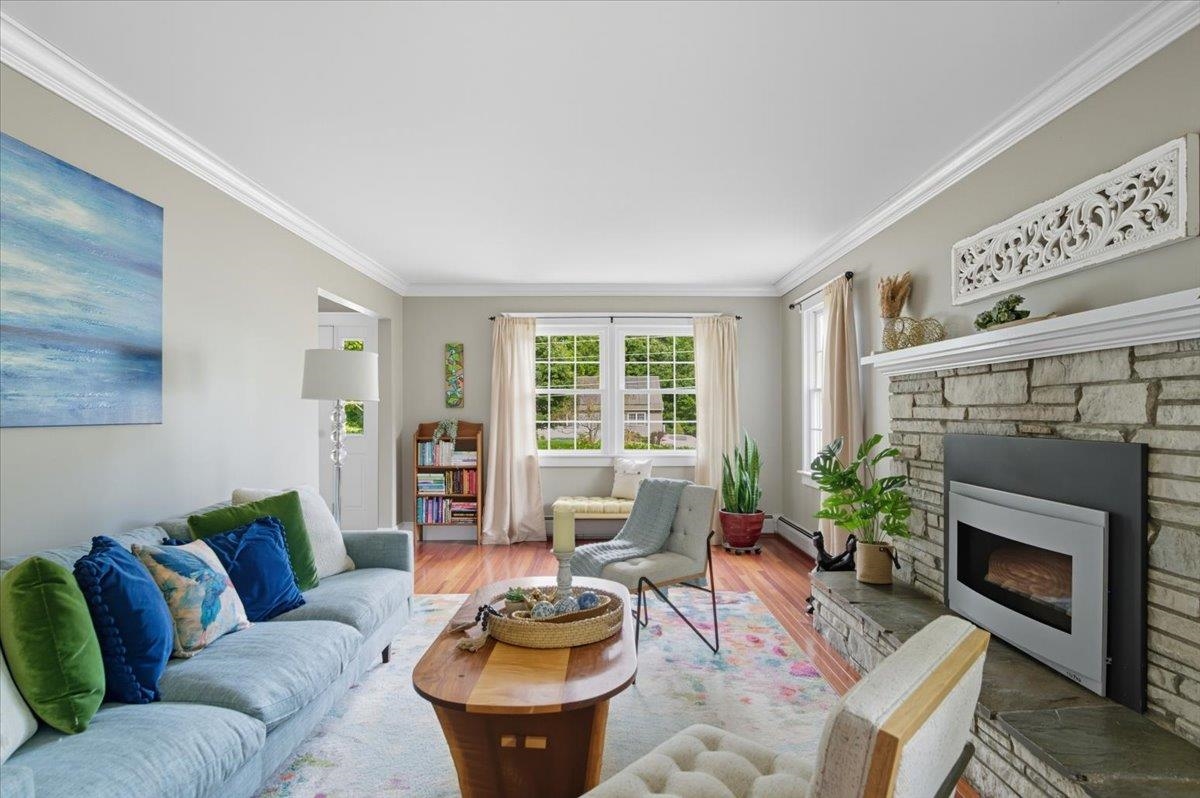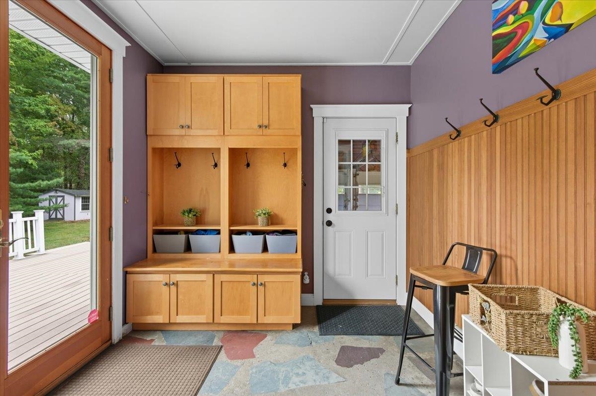 Welcome to this stunning center hall colonial home situated in the highly sought-after Pinewood Manor neighborhood. As you step onto the charming front porch and enter the spacious foyer, you will instantly feel at home. Stay warm during the winter months by the gas fireplace in the living room, or retreat to the family room to enjoy the cozy wood stove. The remodeled kitchen is complete with a breakfast nook that boasts attractive cabinetry featuring glass fronts, modern stainless steel appliances, and a stylish tile floor. An impressive mudroom with a stone floor, accessible from the garage, includes built-in storage and provides access to both the back deck and kitchen area. Beautiful hardwood flooring on the main level and all bedrooms offer comfort and style. The master suite includes a walk-in closet and a three-quarter bath with a spacious tiled shower and a contemporary vanity.The second floor is completed by a full bath and three additional bedrooms. Venture to the basement, currently utilized as a recreation room, which also houses a laundry room area. As you go outside, you will find a two-tiered deck overlooking a level, open lot—perfect for all of your outdoor activities. Tankless furnace and water heater. Extra storage in the shed with power for your garden tools, etc. Recent upgrades include newer roof and siding, This beautiful home is not to be missed in a wonderful neighborhood community