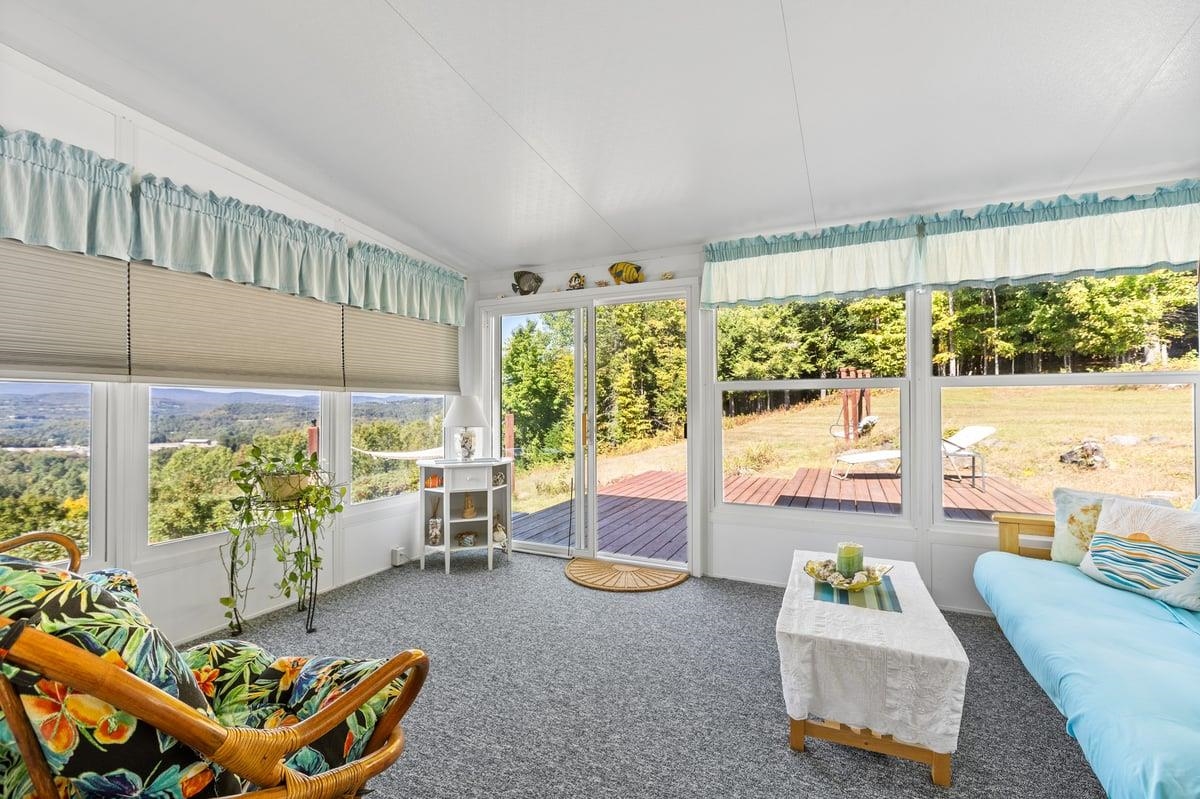 Your search for a privately located property with spectacular views is over. The house has 3 bedrooms, 2 baths and views galore. Situated in a neighborhood minutes from biking, hiking, skiing and shopping but without a neighbor in sight. This one owner, well maintained home offers one level living with a sunny kitchen, cozy living room with a fireplace, a primary bedroom with a private bath and with an attached sun porch to enjoy the views and breezes on those warm summer nights. On the main floor there are also two generous bedrooms, an additional full bath and tucked away laundry area in the entry room. A family room on the basement level allows for movie enjoyment pleasure. The home offers many other special features so don't wait, schedule a showing to see for yourself. Roof is 4 years old, boiler 6 years old and the property includes a water softener. This listing contains two side by side private lots with similar sunset mountain views: a 3.2+/- acre lot with house plus a 5.5+/- acre lot which is state engineered and approved for water and waste disposal. Power on site along with Spectrum cable/WiFi and a phone landline if desired.