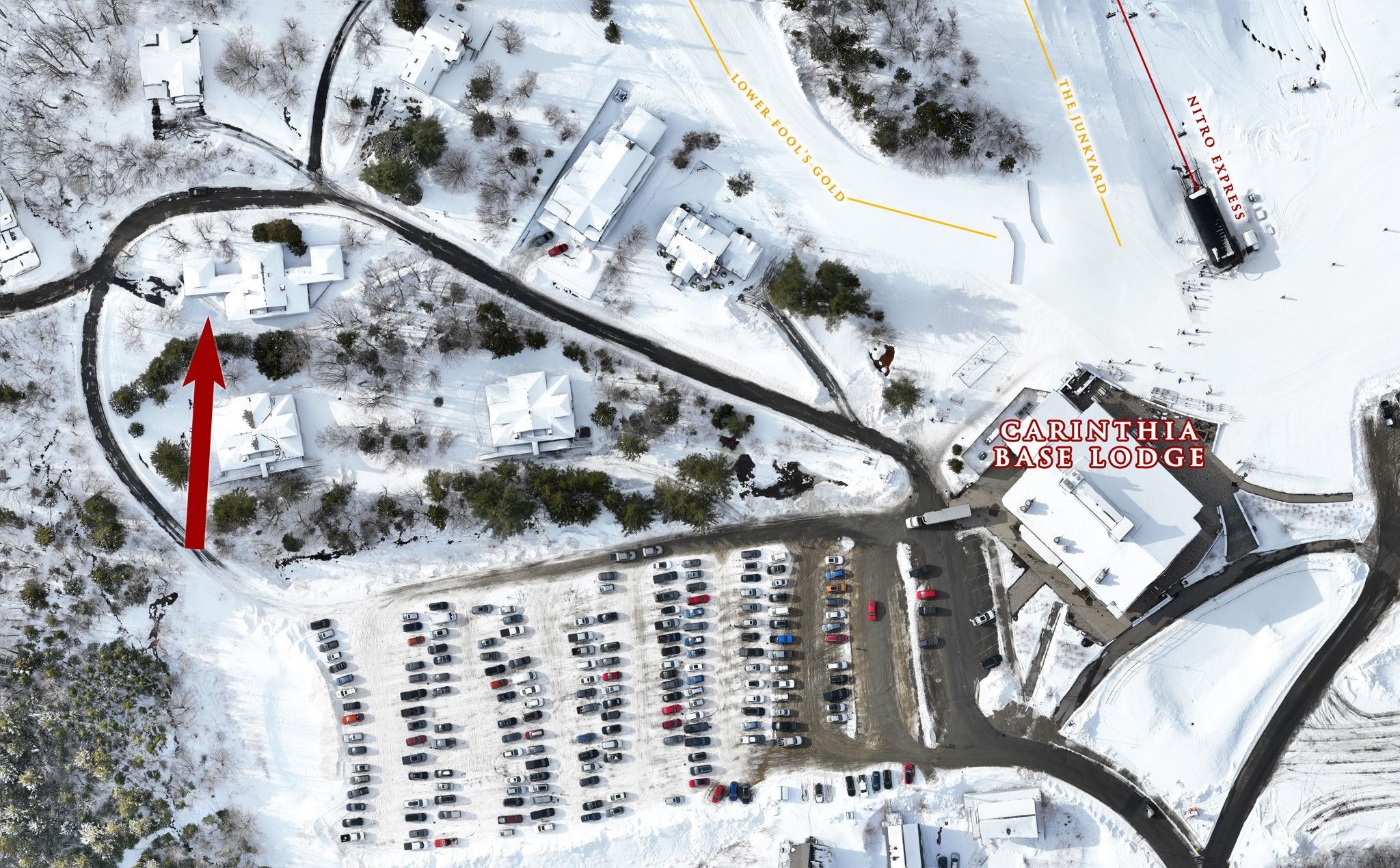 LOCATION, LOCATION, LOCATION!! 3000+ Sq ft, 4 beds plus den, 4.5 baths, 3 fireplaces, and an attached garage all in the Carinthia base area of Mount Snow Ski Resort!! This 4-bedroom, 4.5-bath home offers a versatile layout with multiple en-suite bedrooms, 3 wood-burning fireplaces, and a sauna, just steps from the slopes. The main level showcases a spacious sunken living room with cathedral ceilings and soaring brick fireplace, two en-suite bedrooms—one with fireplace, soaking tub, double vanity, and private balcony. An updated kitchen with granite, gas cooktop, stainless appliances, wine fridge, and wood floors connects to a dining area with built-in buffet/desk open to the sunken living below and an informal den/family room off the kitchen. The lower level features two large bedrooms, including an en-suite with fireplace, soaking tub, shower, and private deck, plus a bunk room and ¾ bath with sauna. Additional highlights include a heated mudroom with built-ins, direct entry oversized one-car garage with ski storage, newly paved driveway, and landscaped setting. What truly sets this property apart is its location. The newly renovated Carinthia Base Lodge, lifts, food, beverage, and trails are so close, some might consider them in your back yard making this one of the most sought-after addresses on the mountain. Pull your car into your attached garage when you arrive and leave it there until its time to go home. Hike, bike, shuttle or ski your way around the resort area and amenities. Well-maintained with neutral finishes, this property is ready for your enjoyment right now and offers that rare location lifestyle potential in one of Mount Snow’s most desirable ski-area neighborhoods.