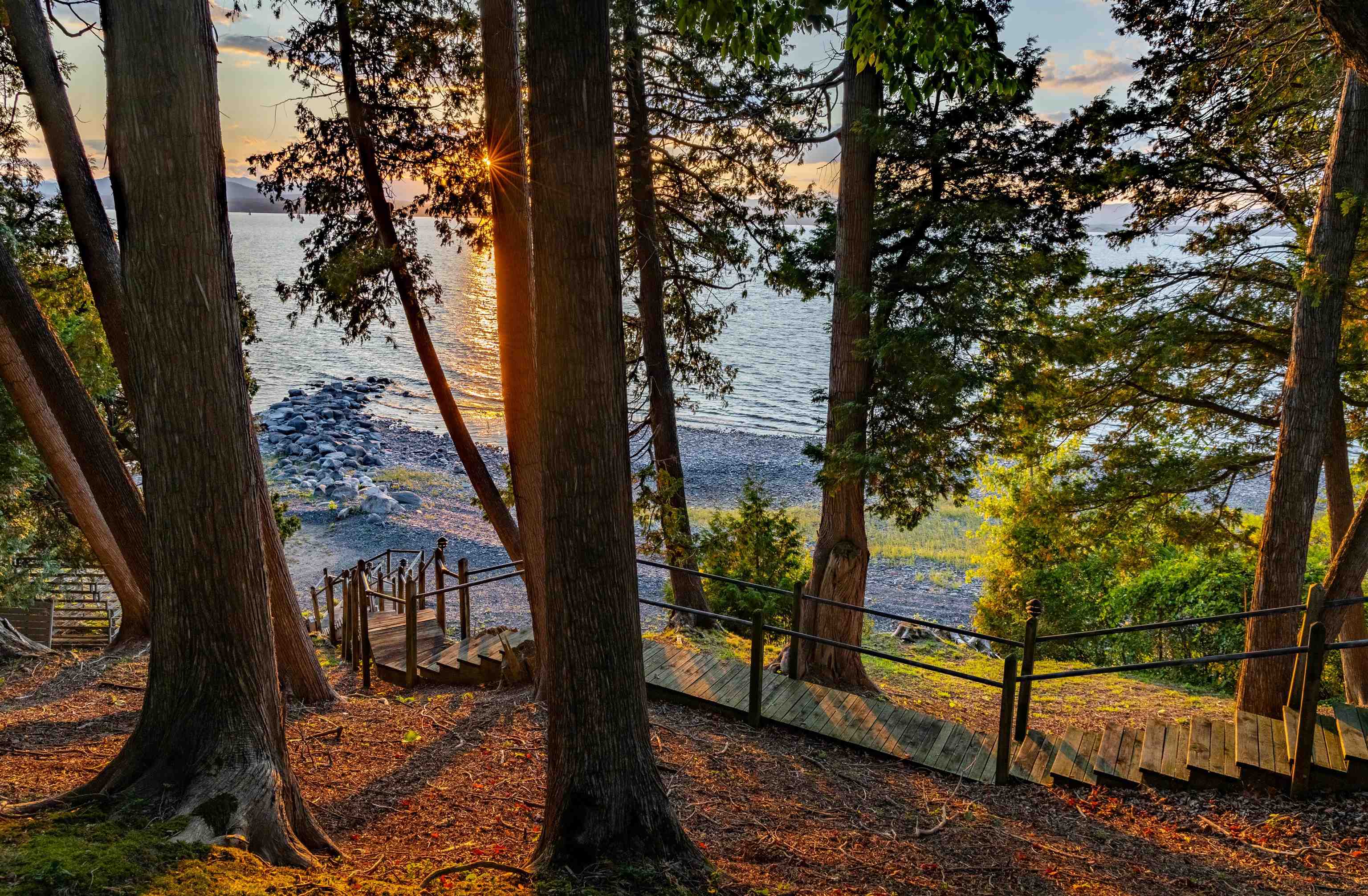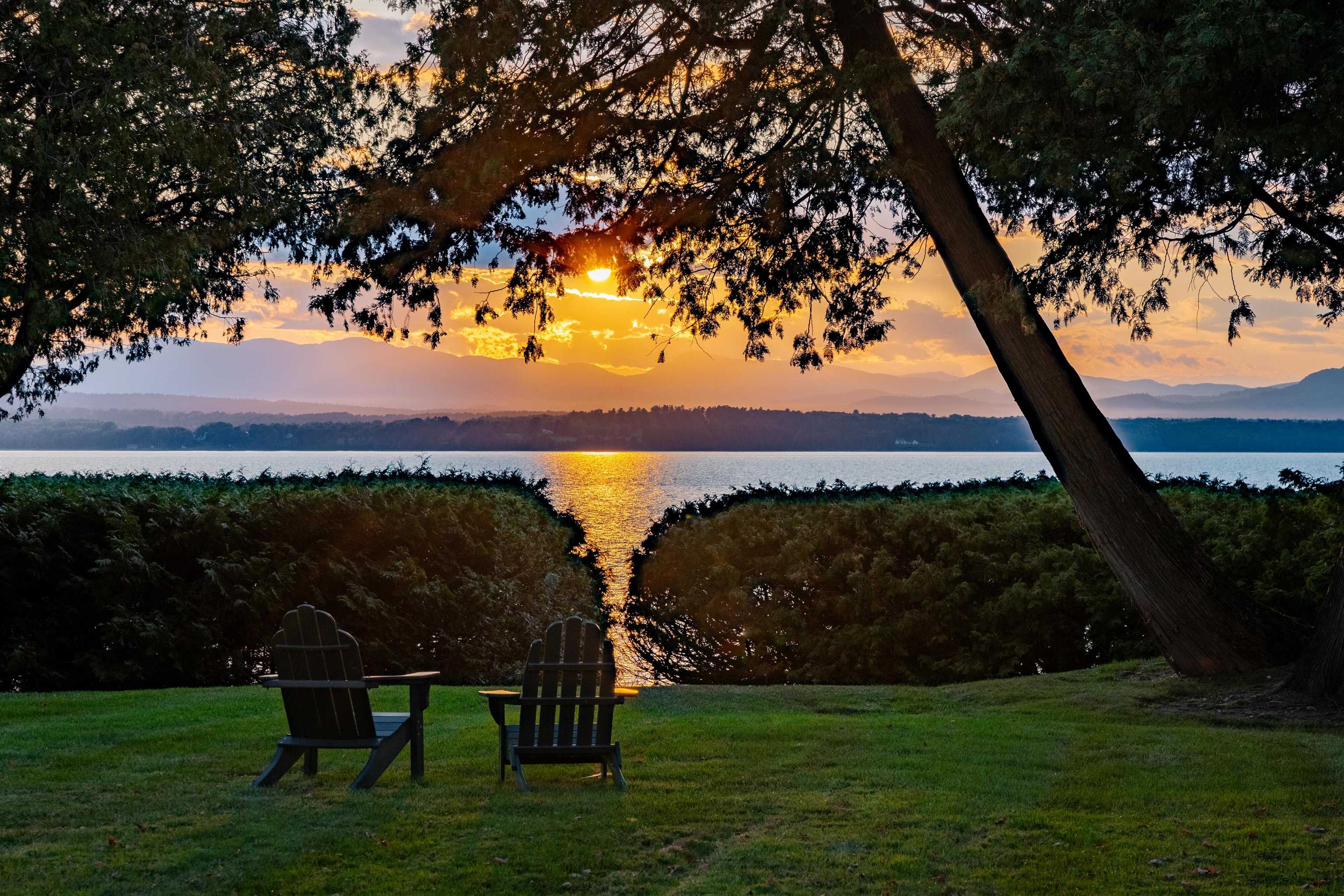 Set on 15.55± acres at the end of a tree-lined drive, this extraordinary Charlotte property offers rare seclusion on Lake Champlain’s eastern shore. With 966± feet of lake frontage, the land opens to a private cove and slate beach, offering sweeping views of the Adirondack Mountains. Perennial gardens, sprawling manicured lawns, and easy access to the water underscore its sense of permanence and privacy. The grounds are designed for recreation and retreat, with a tennis court and walking paths tucked among the trees. A stone patio creates an ideal framework for seasonal entertaining and watching sunsets. The rustic cottage overlooking the lake offers a summer haven for all. The seven-bedroom, 5, 054± sq. ft. residence (circa 1940), nestled in a cedar grove, offers increased privacy with a painted brick exterior, a covered side porch entrance, and a mudroom entry. It features a first-floor primary bedroom and bath with lake views, and multiple fireplaces serve as focal points throughout the home. Designed for family and guests, its spacious interiors provide a space for everyone. Its cottage charm is the perfect blend of elegance and comfort, seamlessly blending the cozy interiors with the natural beauty outside. Just minutes from Charlotte’s village center yet entirely private, this is a rare chance to own one of Lake Champlain’s most impressive shoreline properties. In this place, lake, land, and light come together in lasting harmony.