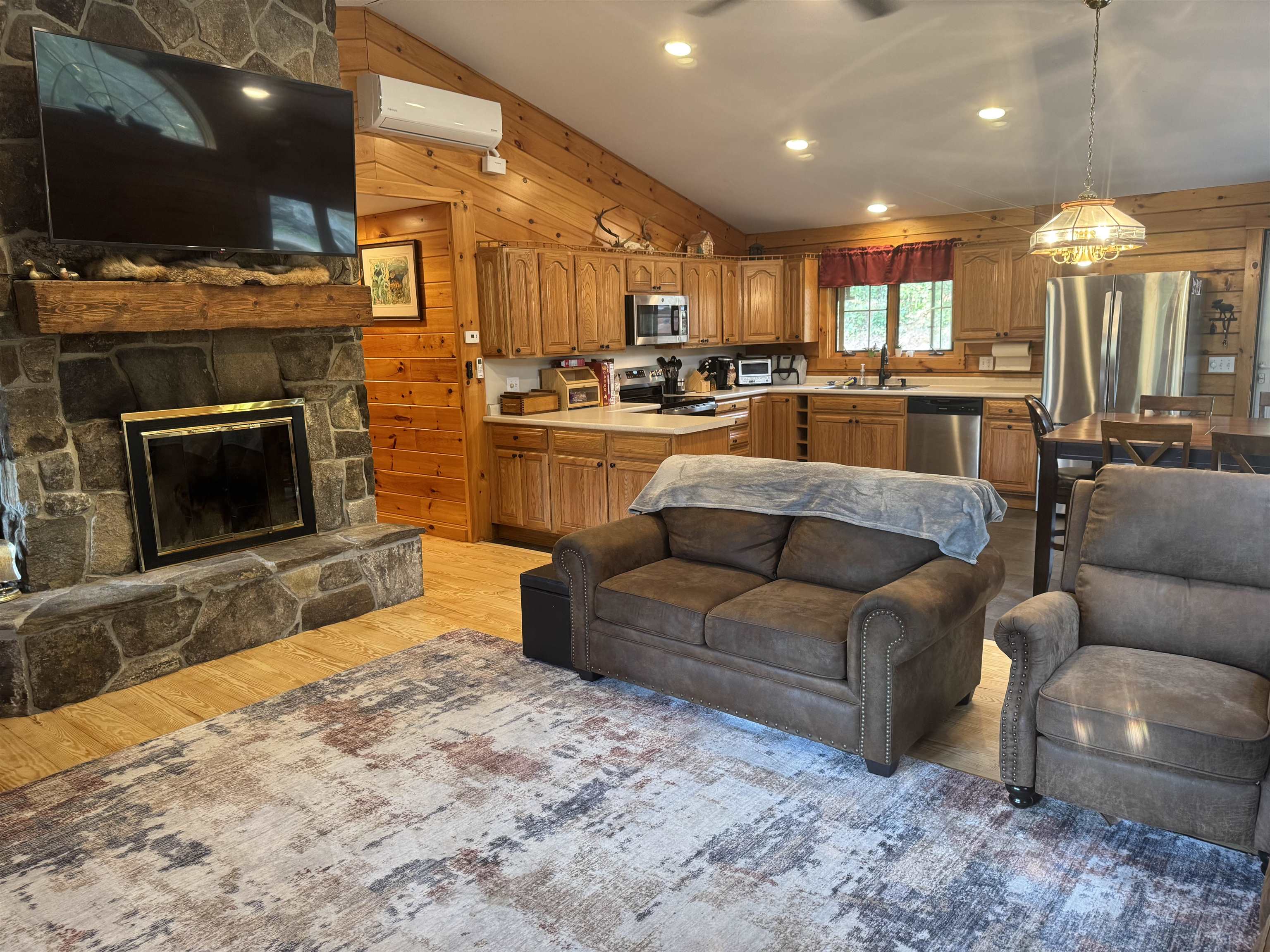 Updated with fiber internet, new kitchen appliances, a heat pump water heater and mini split. 200 amp breaker- generator ready. Security system provides peace of mind when away with furnace & temperature monitoring, carbon monoxide & smoke detectors, glass breakage and door entry. Partially finished walk out basement. Single car garage built in. Open floor plan living room/dining area with cathedral ceiling and field stone fireplace. Private porch with tree top views. Property is bordered with beautiful stone wall.A short hike behind the house gets you to a seasonal overlook view of Mt. Ascutney. Access to VAST trail from Malagash Road. Located ~20 minutes to Okemo/Ludlow ski area and Echo Lake. ~45 minutes to Killington and Rutland.OPEN HOUSE Sunday 16th 9 am till Noon