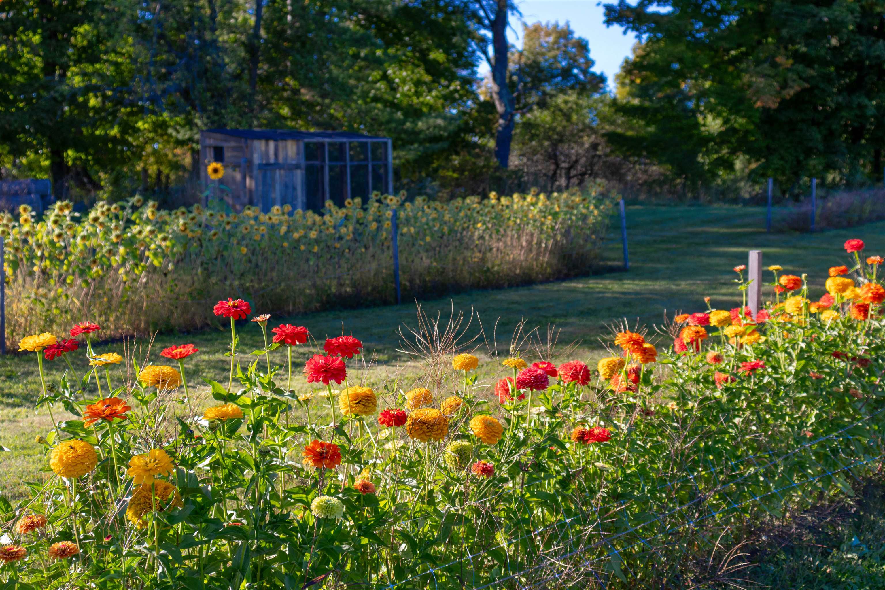 Welcome to Griffin Fields, where Vermont’s magic feels alive in every season. Right in the heart of Lowell Village yet stretching across 11.33 acres. Currently home to a flourishing flower farm and a well-loved Airbnb, it’s a place where creativity and comfort thrive side by side. Step inside the inviting enclosed porch that opens into a warm dining room, a welcoming living room, and a classic Vermont kitchen. The “owners’ quarters” on the main level include a bedroom, bathroom, and a sitting room that spills onto a rear porch. In the afternoons, sunlight pours through the windows, filling the home with a glow that inspires both creativity and calm. Upstairs, three guest bedrooms each offer the privacy of their own baths, along with a family room and convenient laundry, making hosting seamless and comfortable. The land itself is just as enchanting, offering everything you need to step right into homesteading or farming. Extensive perennials support the flower fields, and you’ll also find apple, peach, and plum trees, along with raspberries, blueberries, blackberries, asparagus, and rhubarb, a bounty ready to enjoy or expand upon. A barn/garage, cottage, and chicken coops add both charm and utility, while open acreage provides space to grow, gather, or simply take in the scenery. Recreation is never far- Catamount ski trail & the snowmobile trail connect right to the yard. The Long Trail, Jay Peak Resort, Stowe, and Smugglers’ Notch are all just a short drive away.
