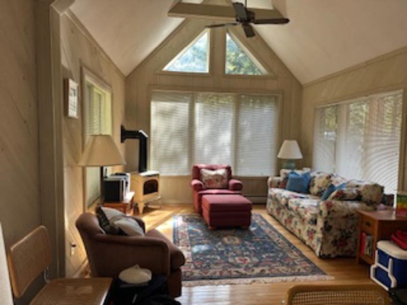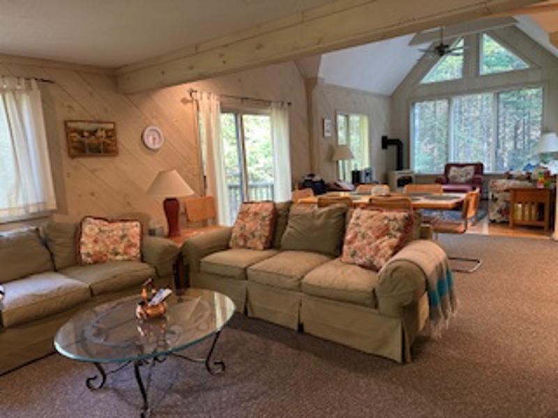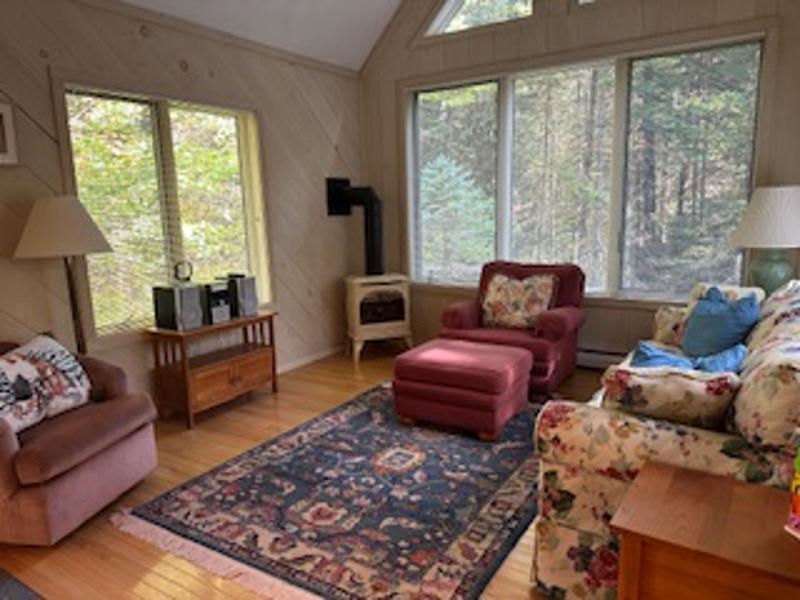 Charming Private Retreat Near Mount Snow Nestled on a private, wooded lot, this inviting home offers serene outdoor living with both a front and rear deck, as well as a level front yard. Inside, the open-concept layout features a beautiful brick wood-burning fireplace in the living room and a cozy sunroom with vaulted ceilings and large windows that bathe the space in natural light. It boasts hardwood floors, a gas stove, and a convenient laundry room with an entry. The spacious first-floor primary suite offers easy living, while the second floor includes three additional bedrooms and a small loft—perfect for guests or a home office. The lower level features a welcoming family room, a utility room with a workbench, a ¾ bath, a woodstove, a versatile bonus room, and a relaxing hot tub. Whether you're looking for a year-round residence or a mountain getaway, this home is ideally located close to Mount Snow and all the area's outdoor activities.