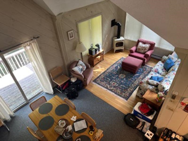 - Ceiling Fan, Dining Area, Gas Fireplace, Wood Fireplace, 1 Fireplace, Kitchen Island, Kitchen/Dining, Kitchen/Living, Living/Dining, Natural Light, Natural Woodwork, Skylight, Vaulted Ceiling