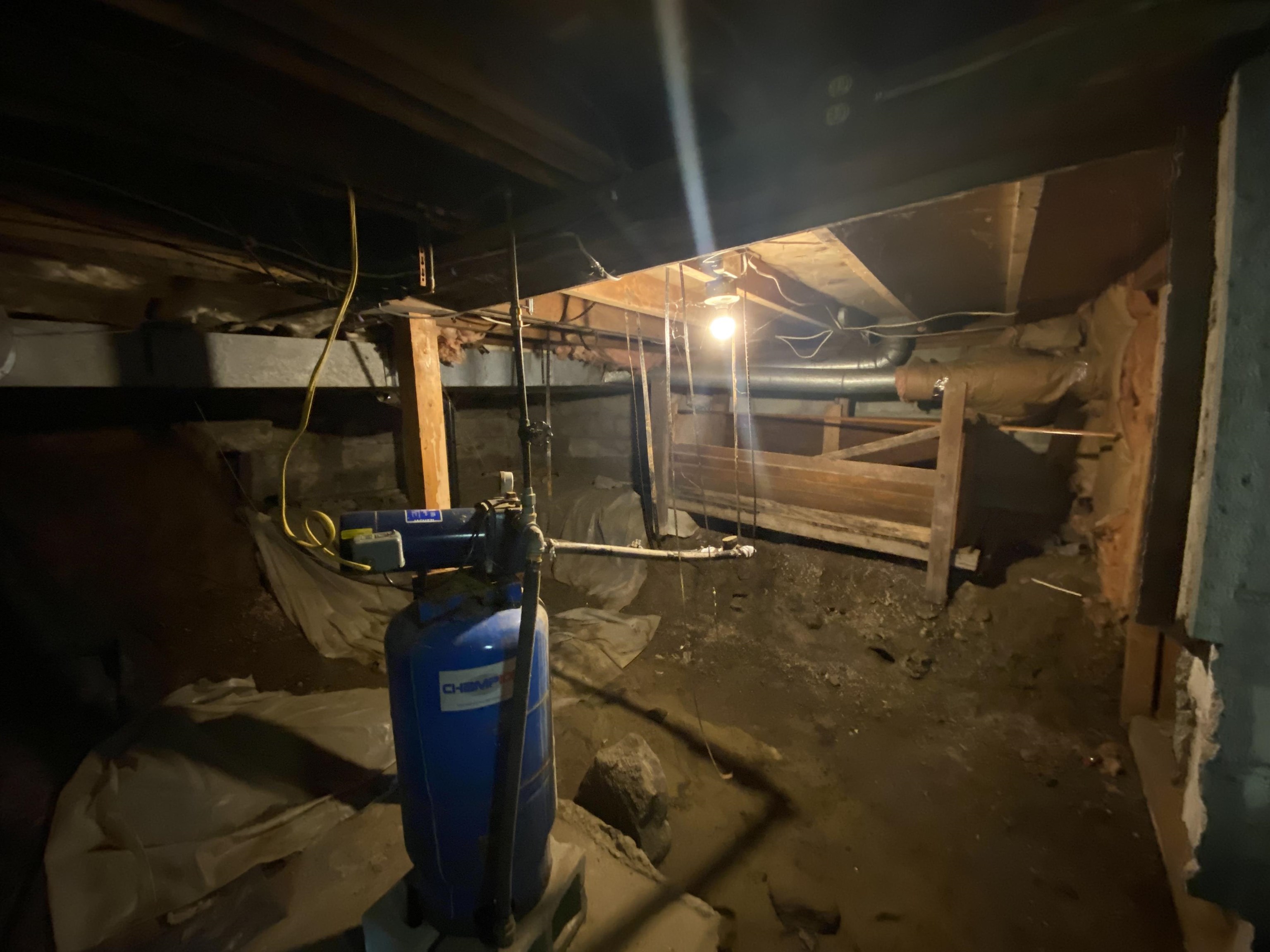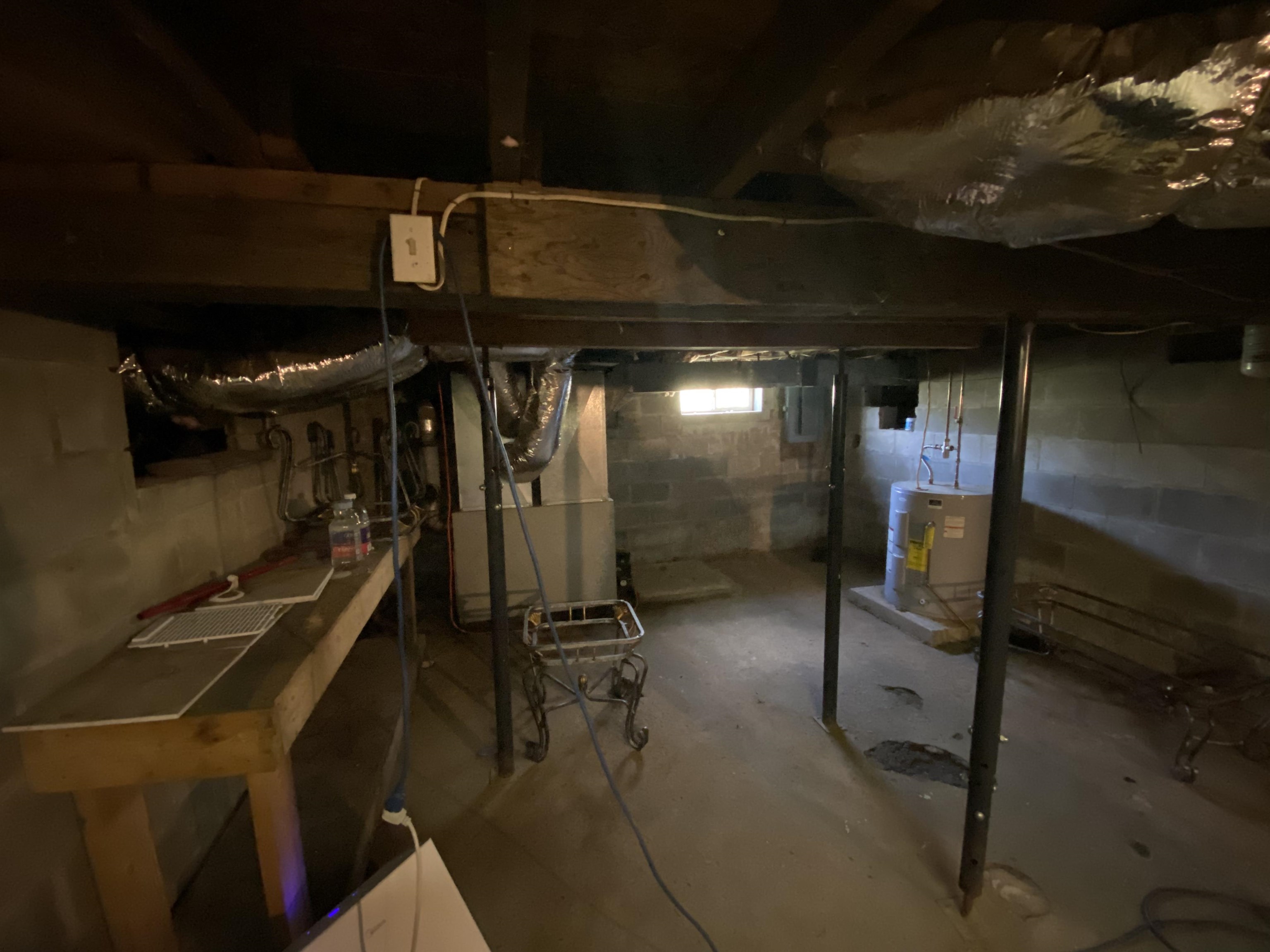 - Concrete Floor, Dirt, Unfinished, Basement Stairs
