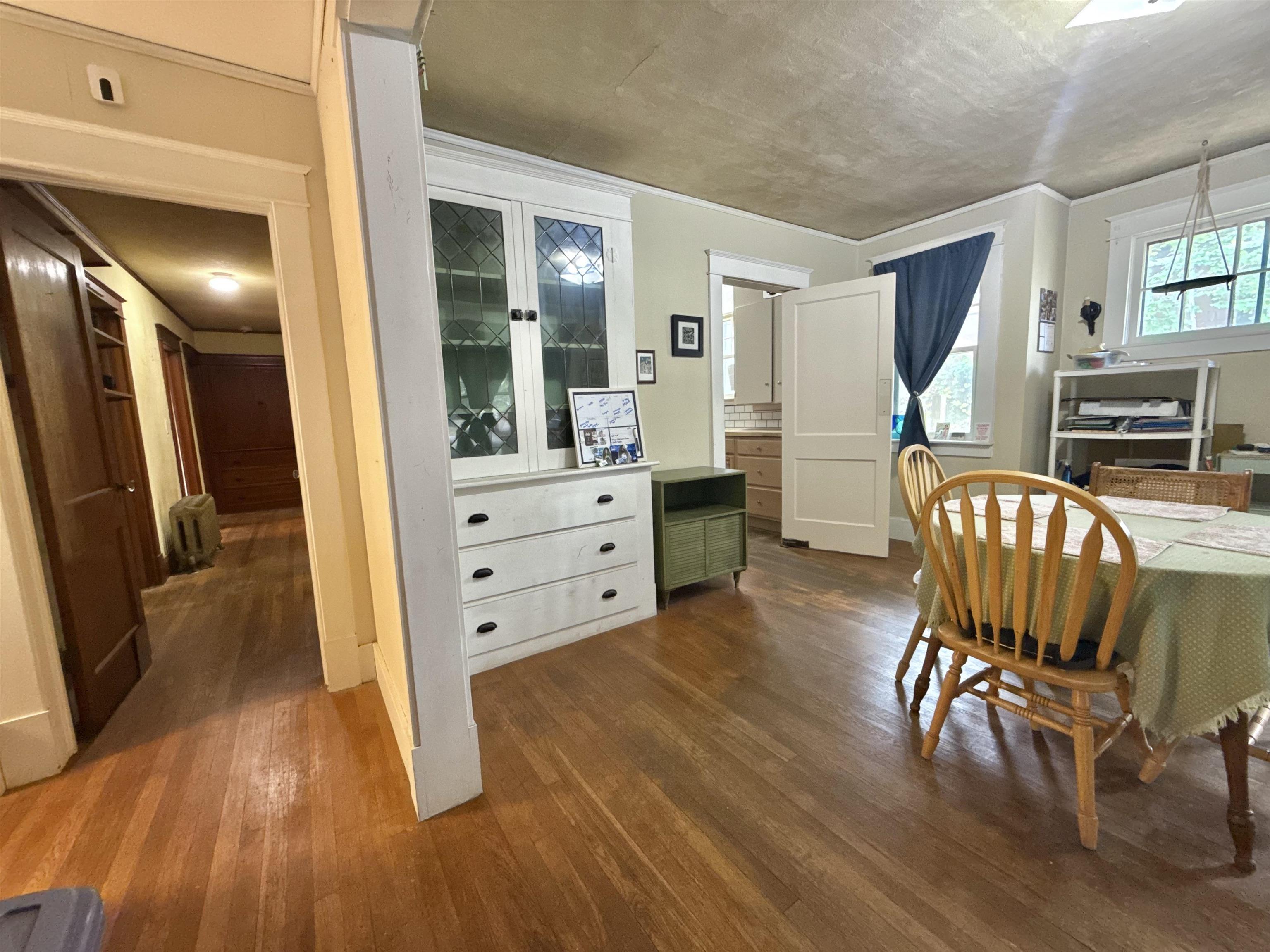 Nestled on a dead-end street, this charming home offers warmth, comfort, and a thoughtfully designed layout. The first floor features a well-appointed kitchen that flows seamlessly into the open-concept dining and living area, creating an inviting space for both everyday living and entertaining. Off the living room, a beautiful sunroom with glass doors bathes the space in natural light, providing the perfect spot to relax and unwind. Also on the main level are three bedrooms and a full bath, offering convenient single-level living. Upstairs, a spacious common area provides flexibility for a game room, second living room, or creative space. An additional room on this level serves as an ideal guest bedroom, home office, or fitness room, adapting easily to your needs. Hardwood floors run throughout the home, complemented by original built-ins that add both character and functionality, enhancing its timeless appeal. While this home could benefit from some TLC, its versatile living spaces, abundant natural light, and convenient location near local amenities make it a truly special find.