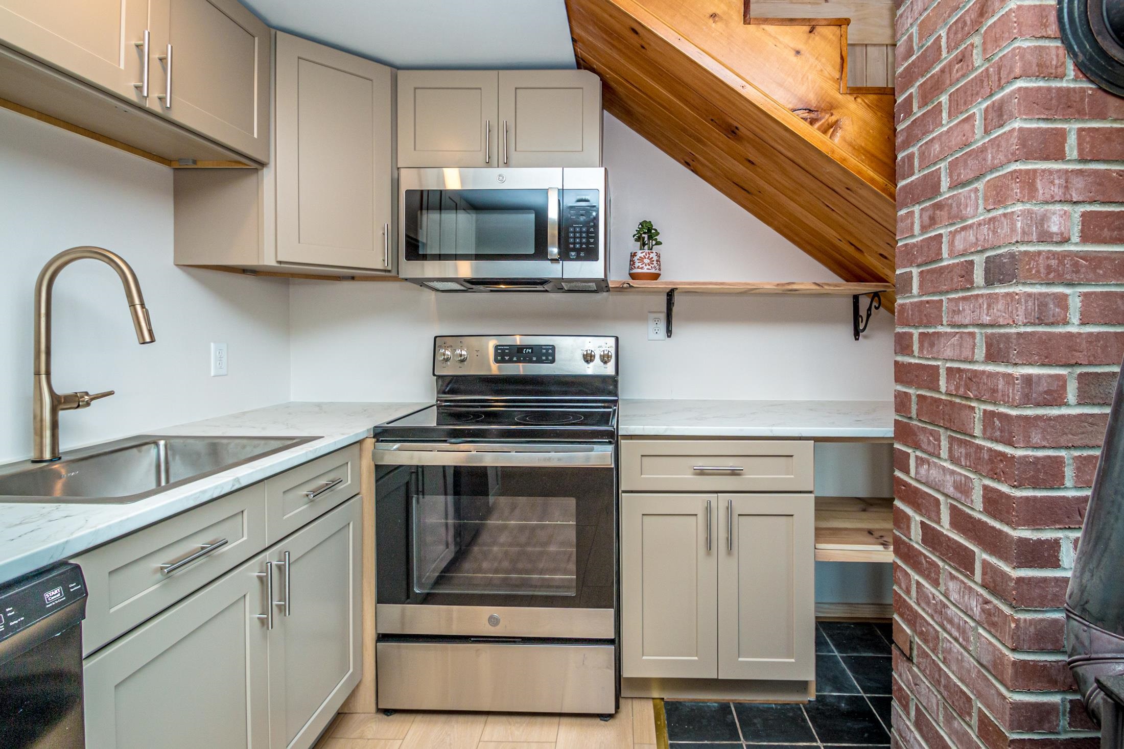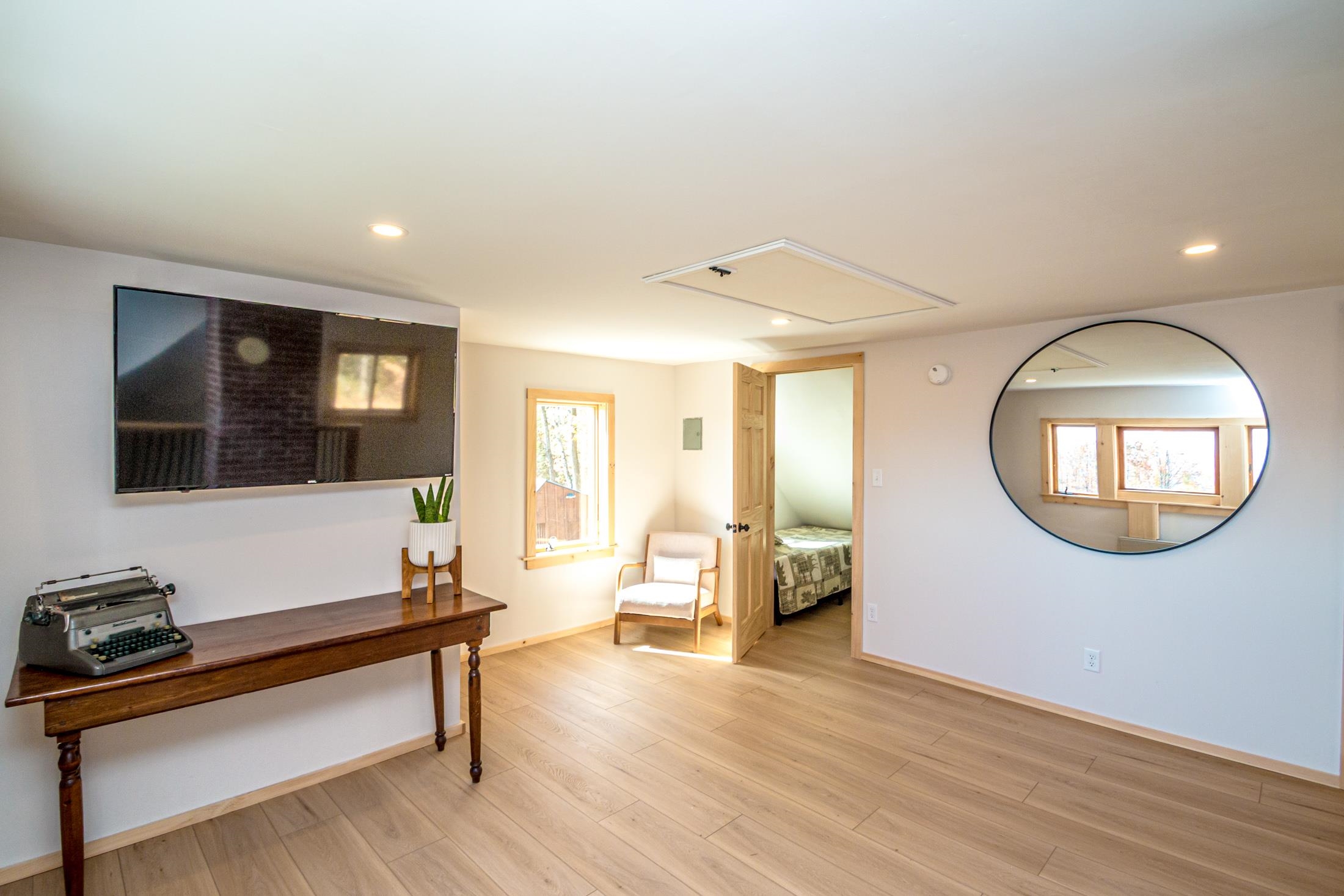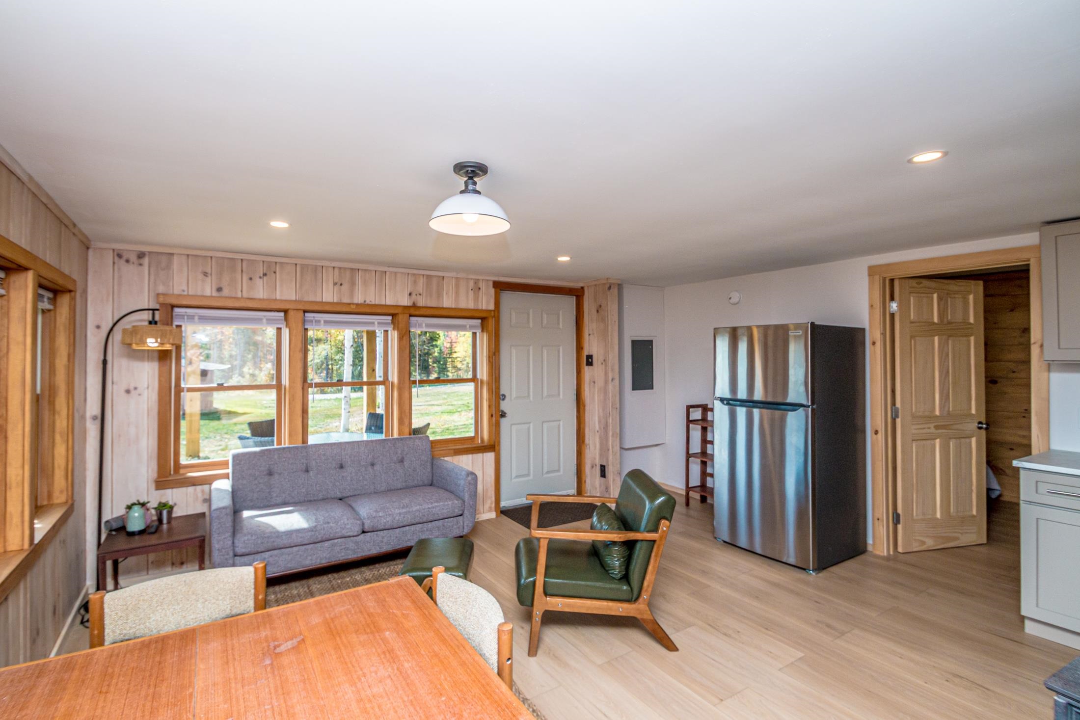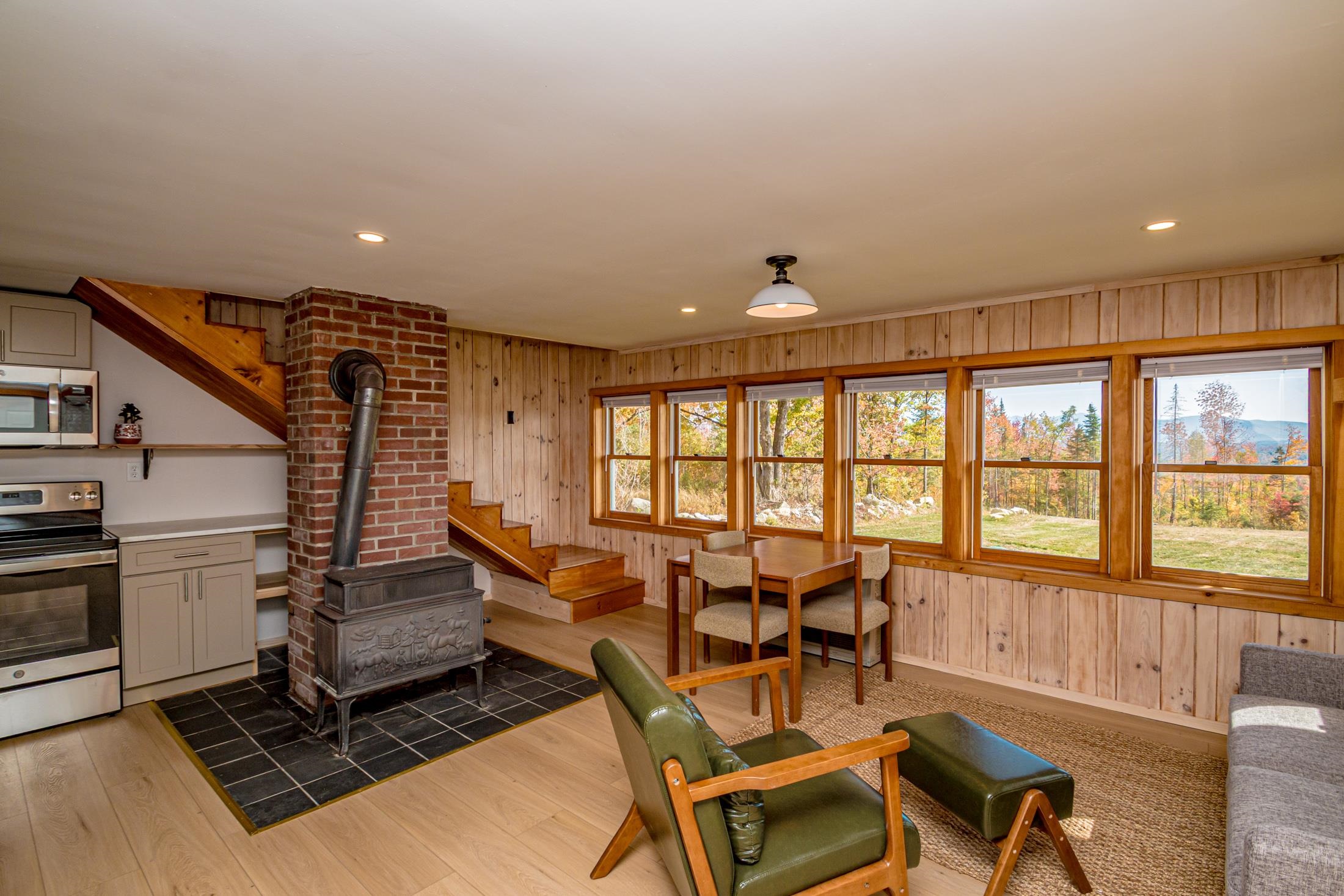 Discover this fully remodeled cabin tucked away on 7.7 acres in the Northeast Kingdom of Vermont. Featuring 2 bedrooms and 1 and 1/2 bathrooms, this home blends modern updates with rustic charm. Step onto the welcoming covered porch and into an inviting open-concept living space filled with natural light. A cozy wood stove adds warmth and character, perfect for chilly Vermont evenings. The first-floor bedroom features an ensuite bath, making for easy one-level living. Upstairs, you’ll find a spacious family room with beautiful views, an additional bedroom, and a half bath. The property includes 2 storage sheds and a small studio cabin. A brand-new septic system installed in 2024, already approved for the addition of a one-bedroom accessory dwelling unit—perfect for expanding your space or adding rental potential. Enjoy direct access to snowmobile and ATV trails right from your doorstep, making this an outdoor enthusiast’s dream. Centrally located between three ski areas and close to Littleton NH, St. Johnsbury VT, and Lancaster NH, this property offers year-round recreation and convenience. Whether you’re looking for a vacation retreat or a cozy full-time residence, this cabin provides a welcoming getaway with mountain views and endless opportunities. Seller is a licensed Real Estate Agent.