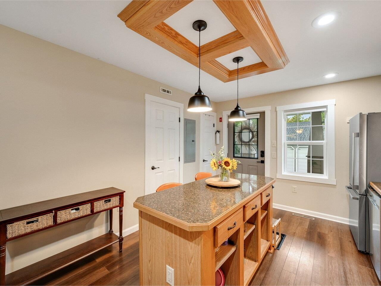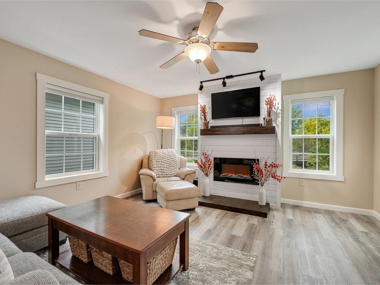 Come see this sweet Waterbury home that’s been lovingly updated over the past two years! From the welcoming front porch to the cozy, character-filled interior, this place is move-in ready. The kitchen shines with a big island, brand-new oven, fresh light fixtures, and flows right into the heart of the home - the living room. Here you’ll find a new custom shiplap wall, mantle, and a cozy electric fireplace perfect for Vermont winter vibes. A stylishly renovated half bath is just steps away, while new vinyl flooring throughout and new mini-splits keep things comfortable and efficient. Upstairs, you’ll find two spacious bedrooms and an updated full bath with fresh laminate tile. One bedroom has an added custom barn door that brings charm and functionality. Fresh paint throughout makes everything feel crisp and inviting, and the laundry is conveniently tucked in the hall. Outside, enjoy easy living thanks to the HOA ($150/mo covers landscaping, plowing, and trash). The detached garage offers extra storage and is actually larger than most of the others in the development. The shared picnic area in this welcoming community is a nice bonus. The location is convenient - just blocks to Brookside Elementary, downtown shops, and restaurants, and nearby parks and trails. Plus, you’re 25 minutes to Stowe Mountain, 30 to Sugarbush, and 35 to Burlington. This is one of those homes where you’ll feel the care as soon as you walk in - come check it out! OPEN HOUSE SAT 9/27 12-2pm!