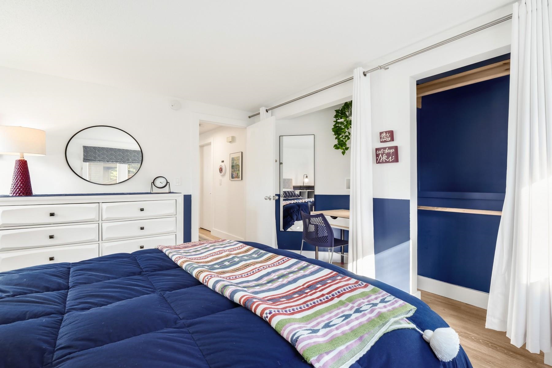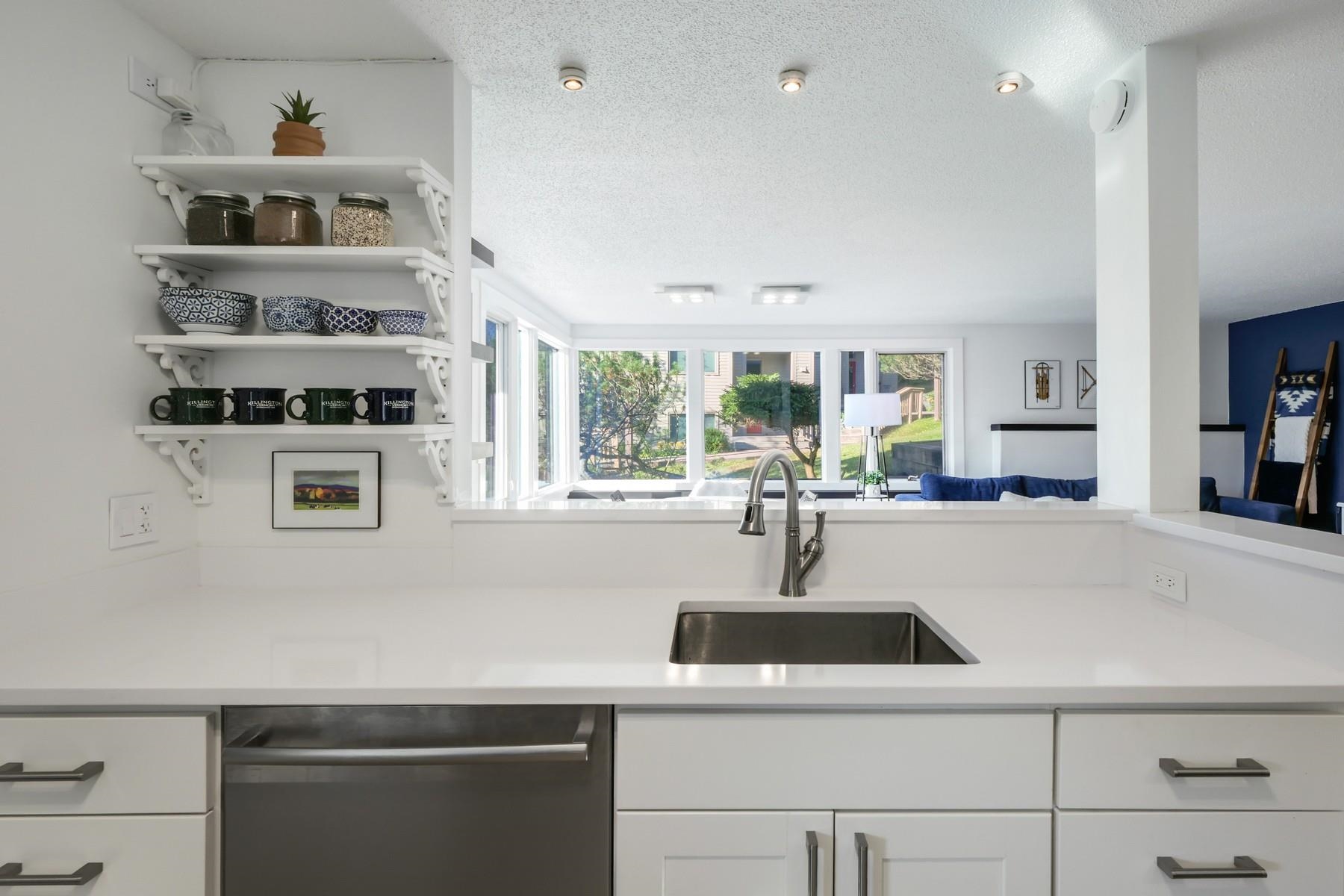 Located within one of Killington’s most sought after associations, this impeccably reimagined one-bedroom residence offers a rare opportunity to experience luxurious mountainside living with ski home accesibility. Every element of the residence has been meticulously curated, blending contemporary elegance with warmth and tranquility. A sunlit interior embraces the Scandinavian concept of hygge, where natural light and carefully appointed finishes create a serene, inviting retreat. The kitchen and bath are transformed with updated high level appliances, gleaming white quartz countertops & backsplashes, all balanced by deep navy accents that evoke both sophistication and timeless style. With the expansive kitchen, living space & private outdoor terrace, the residence offers striking vistas across the Killington Golf Course from Skye Peak to Pico, ideal for entertaining or reflection. Thoughtful storage solutions ensure that all pursuits, from winter to summer, are easily accommodated. The sports center elevates daily living, including an indoor pool, hot tub, and a fitness suite including Peloton bike and tread. Offered as both an elegant weekend refuge and a discerning investment, this residence embodies that rare balance of design, location, and lifestyle that define true luxury in Killington.