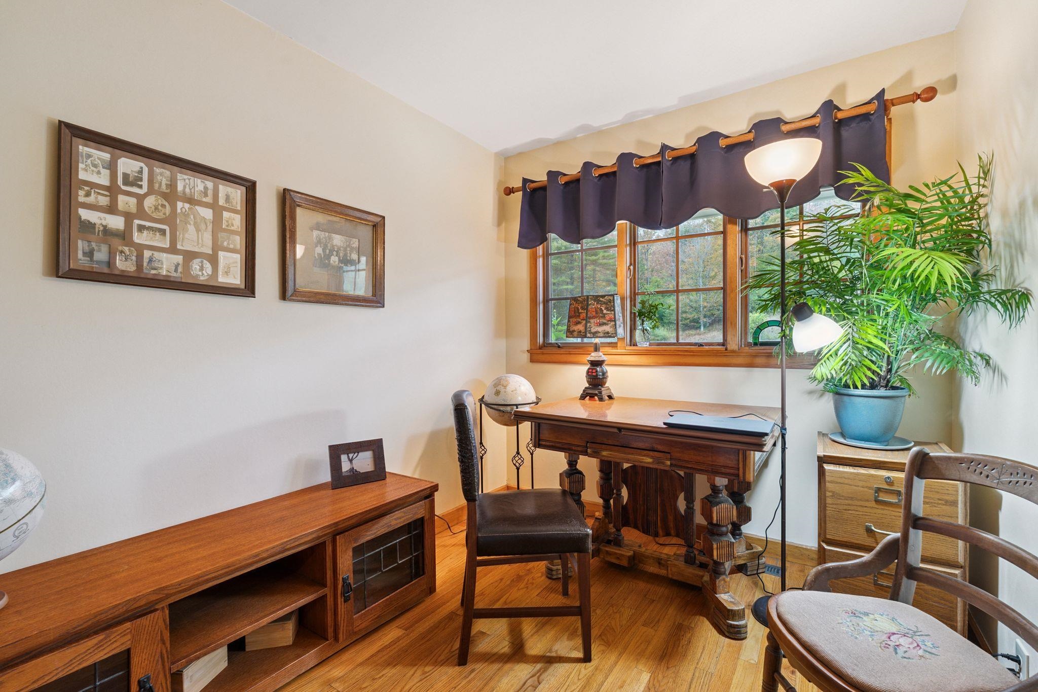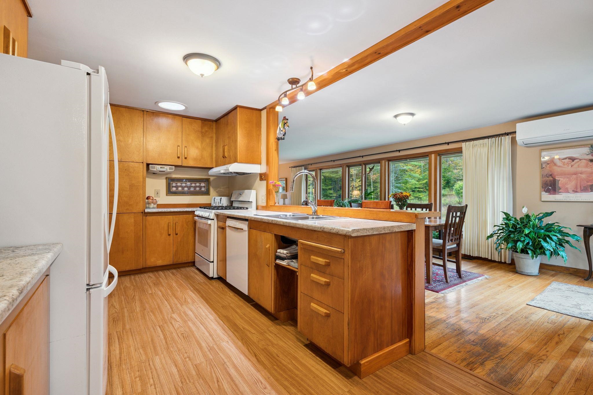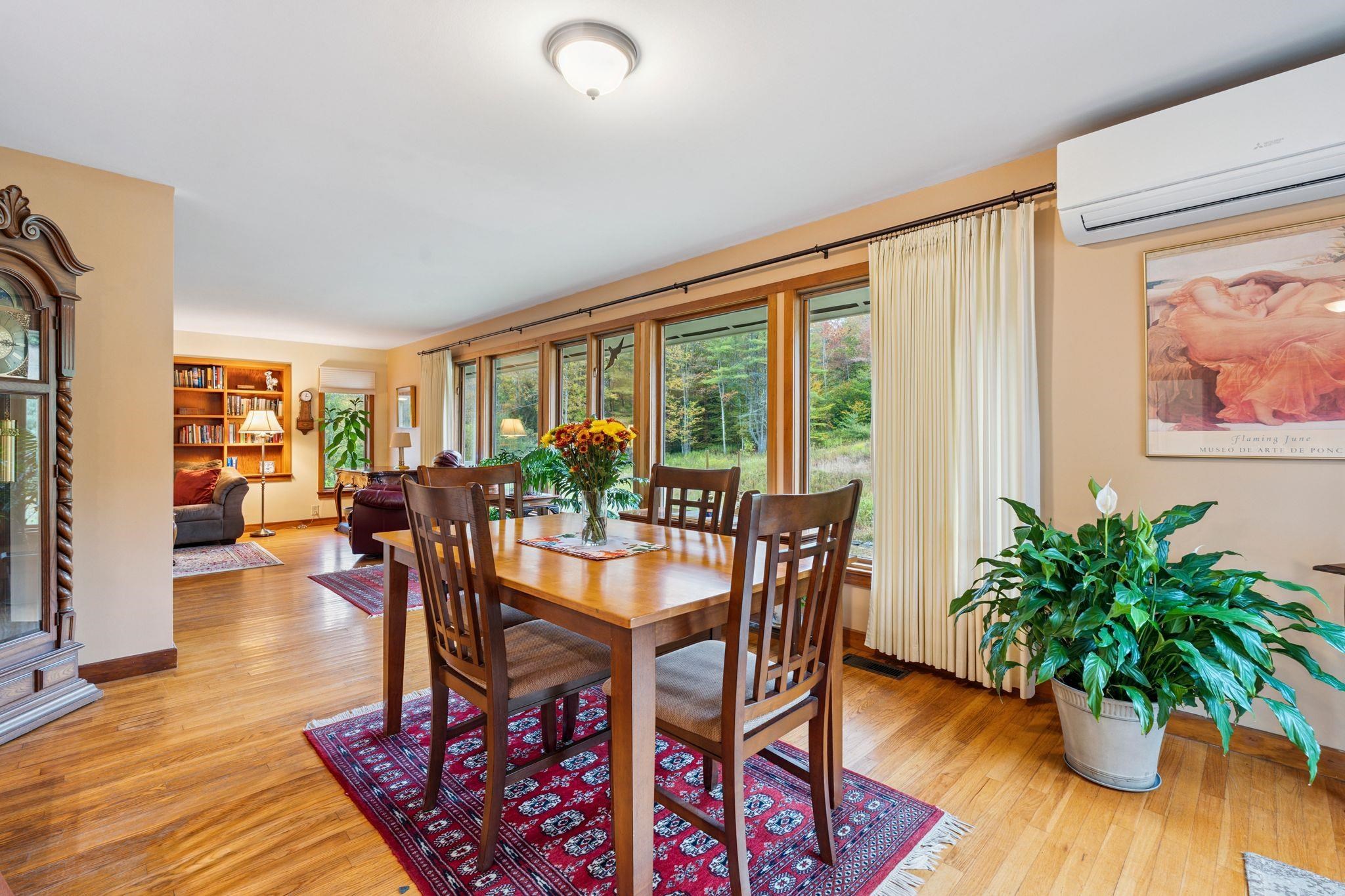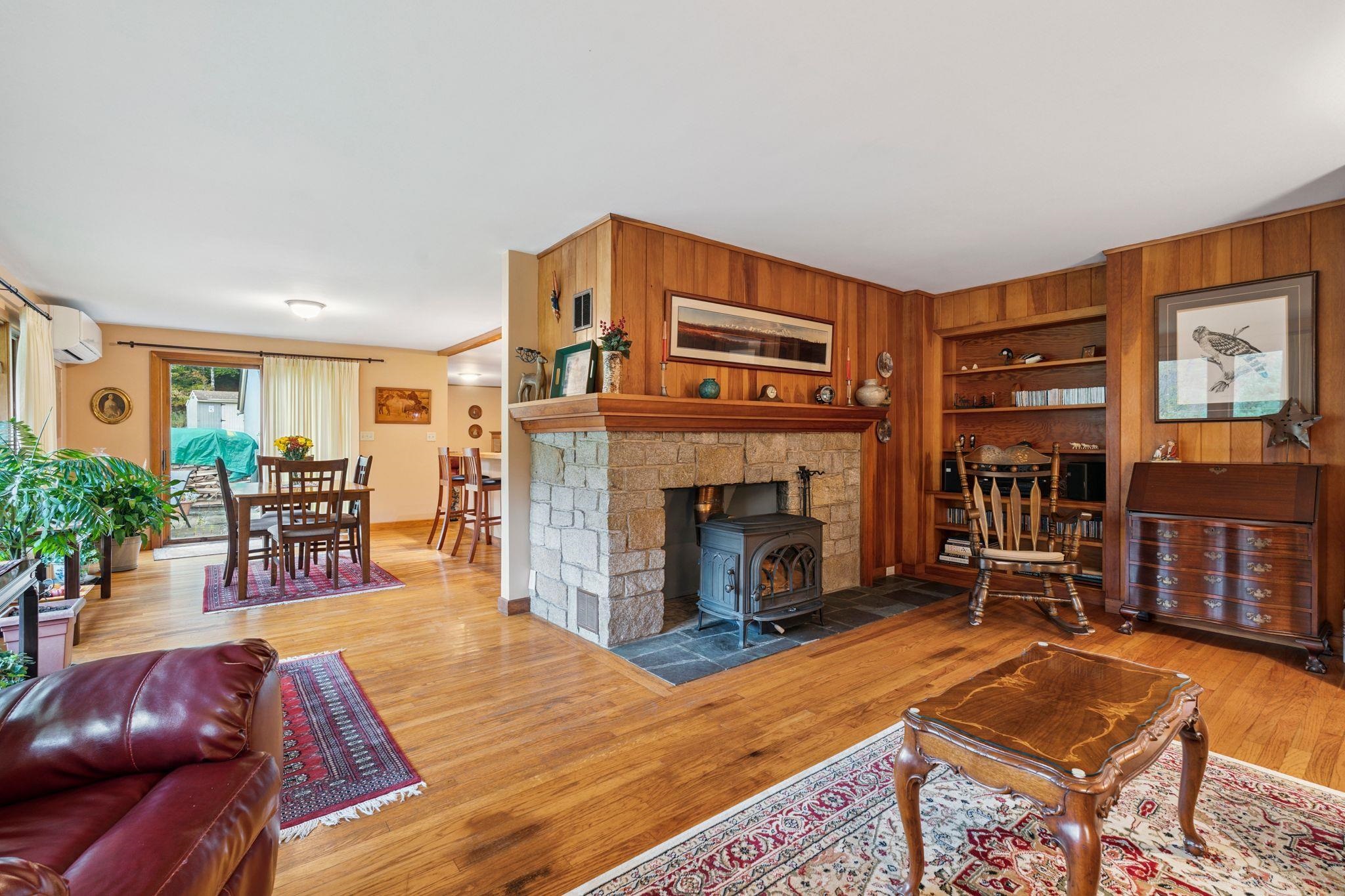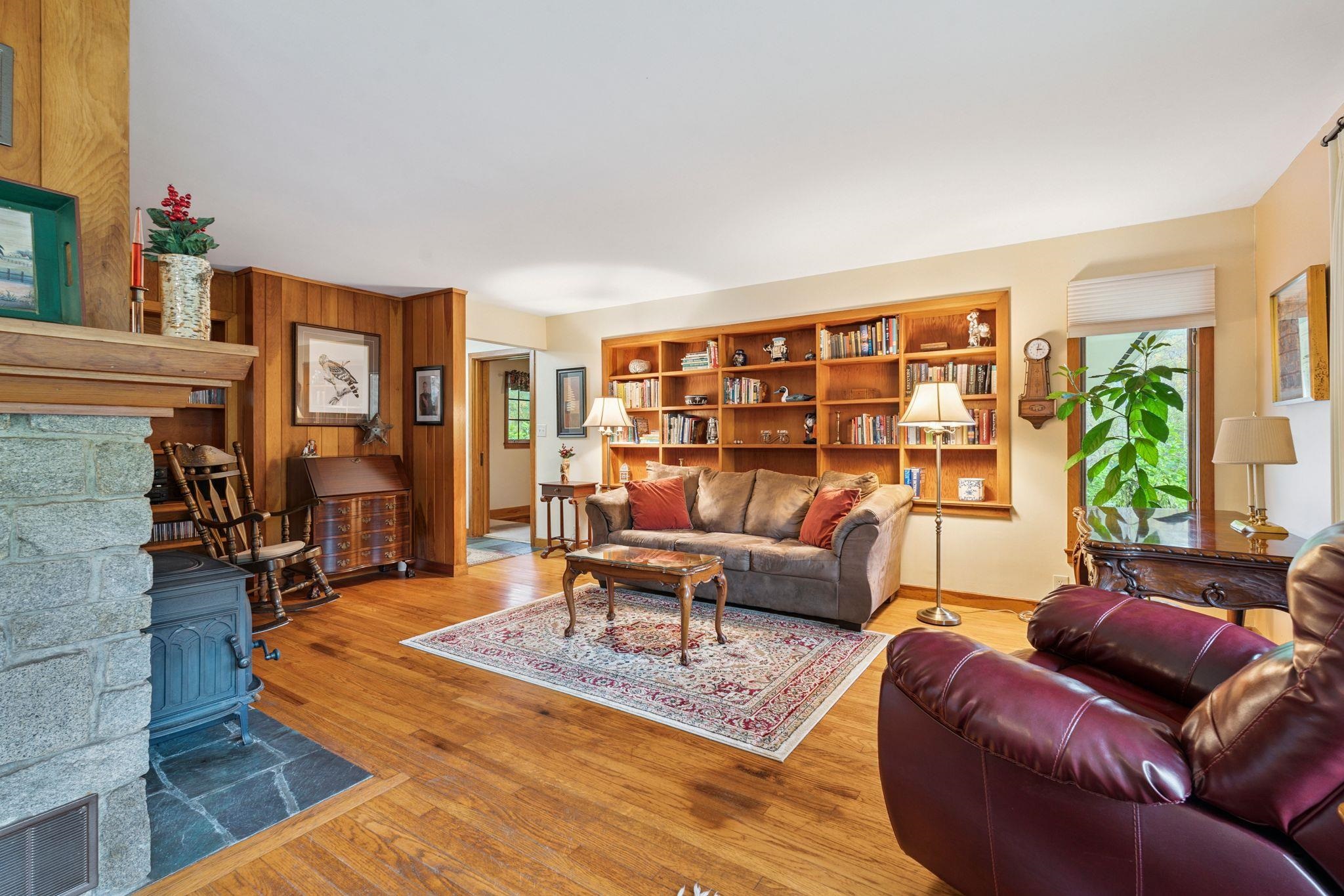 Welcome to Chipmunk Hollow, situated on 40+ acres at the base of beautiful Mount Ascutney. This custom mid-century ranch offers unmatched privacy with meadows, two ponds, fruit trees, mature perennials, and 38 acres of woods, all just a mile from I-91 and minutes from Claremont, Dartmouth Medical Center, and Okemo Mountain. The home features 3 bedrooms, 2.5 baths, and a spacious living room with a fieldstone fireplace and panoramic views, while the open kitchen with breakfast bar flows to the dining area and patio. A sunny family room and bonus office with half bath provide flexible living, and the primary suite includes a walk-in closet and full bath, with two additional bedrooms sharing a large hall bath. Mudroom connects to the attached garage with abundant storage and laundry, and the full 2, 100 sq ft dry basement with workshop offers expansion potential. Recent updates include a new roof (2024), heat pumps (2023), and septic (2021). Outside, enjoy a storage barn, vegetable garden, walking trails, stone walls, and high-speed internet with excellent cell service for remote work. This one-of-a-kind property blends natural beauty, modern comforts, and convenience.