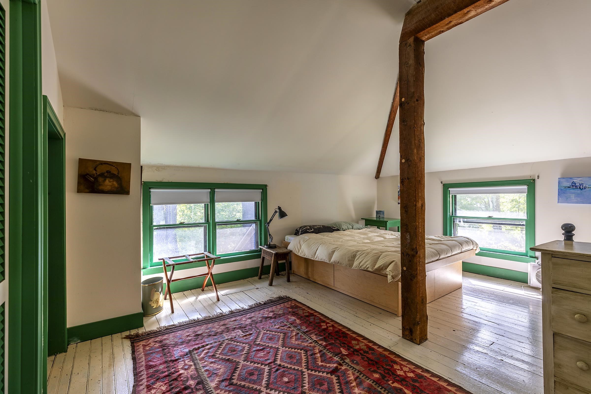 Steps from the heart of Manchester Village private 5 pastoral acres offer an unique opportunity while enjoying exceptional privacy and sweeping views of Equinox Mountain to the west. The Village, with marble walkways, underground power and electrified gas lanterns, undeniably creates a peaceful approach from a lengthy driveway back to this special residence buffered from the busy world, yet walking distance to the Equinox trails, and just steps to all village amenities! The converted 1875 carriage house measures 2896 SF with four bedrooms, three full baths, and an additional office or overflow guest room. The open main level layout features dramatic vaulted ceilings, expansive windows and large center fireplace! The property is zoned for two acre lots and benefits from town water and sewer, a rare find in the Village. Though requiring some TLC, the setting, lot size and character make it a rare canvas for a buyer ready to bring it to 2025 standards! Appointments must be accompanied by the broker... 24 hours notice please.