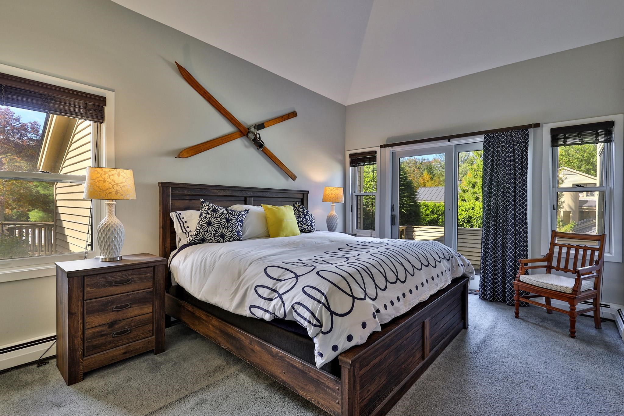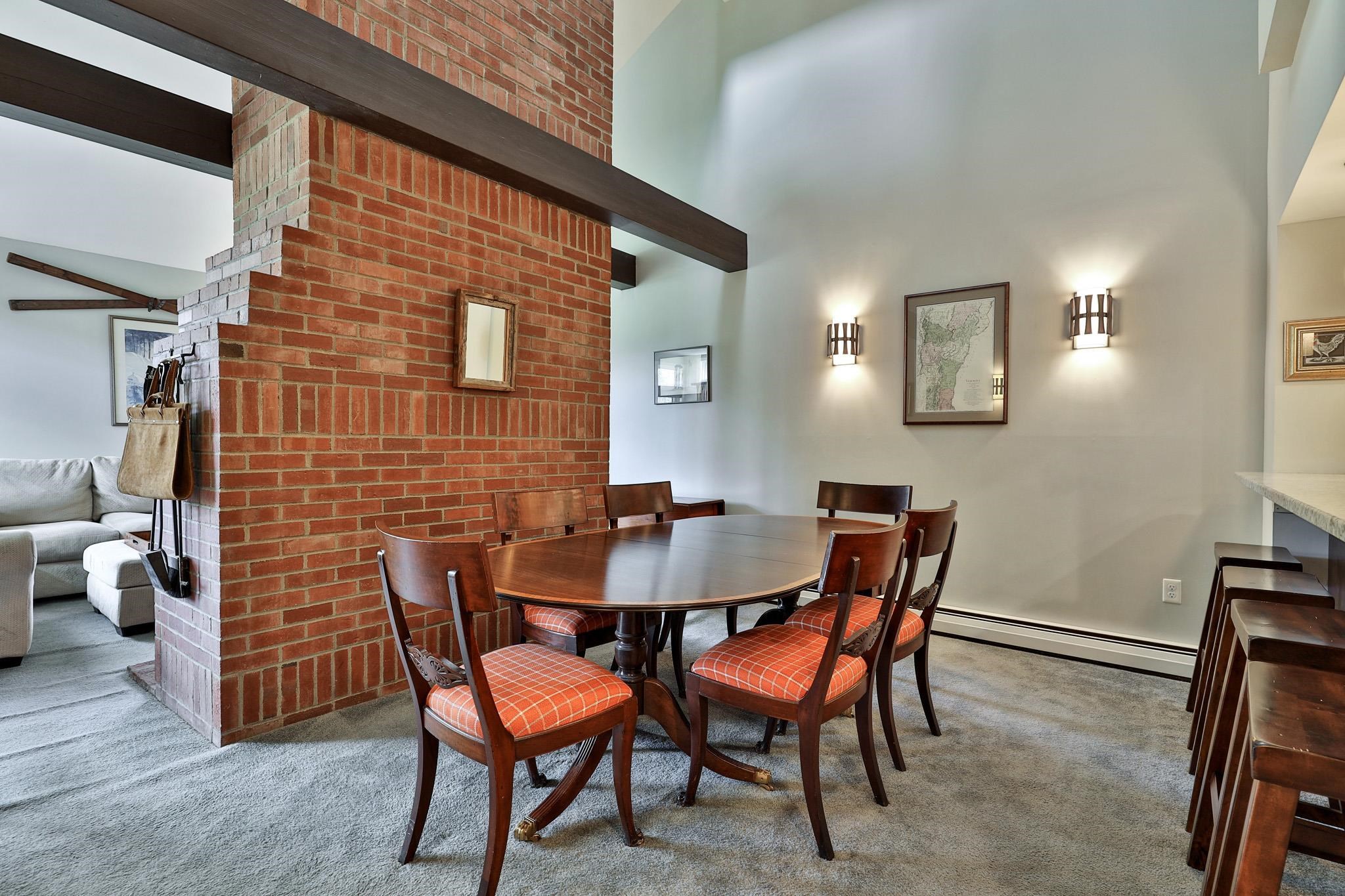Ideally situated next to the Appalachian Trail, on the Killington shuttle route, and just across the road from Pico Ski Resort, Fox Hollow offers one of the most convenient locations in the Killington region — perfect for residential, vacation, or rental use. This fully updated two-level unit features an air-lock mudroom with built-ins for easy gear storage, an open floor plan with soaring vaulted ceilings and floor-to-ceiling fireplace, two bedrooms, two bathrooms and ample closet space. The remodeled kitchen boasts handsome cabinetry, gleaming granite countertops, plank tile flooring, stainless appliances, and a breakfast bar ideal for casual meals or entertaining. A wood-burning brick fireplace anchors the living and dining areas, creating a warm après-ski atmosphere. The spacious primary suite includes a newly renovated bathroom with a fully tiled, glass-enclosed walk-in shower. Upstairs you'll find a second private bedroom suite for guests featuring vaulted ceilings and a smartly updated bathroom. Fox Hollow amenities include a heated outdoor pool and tennis court and direct access the Appalachian Trail for hiking or snowshoeing. Offered fully furnished and move-in ready, this Fox Hollow condo is a rare find — call today!
