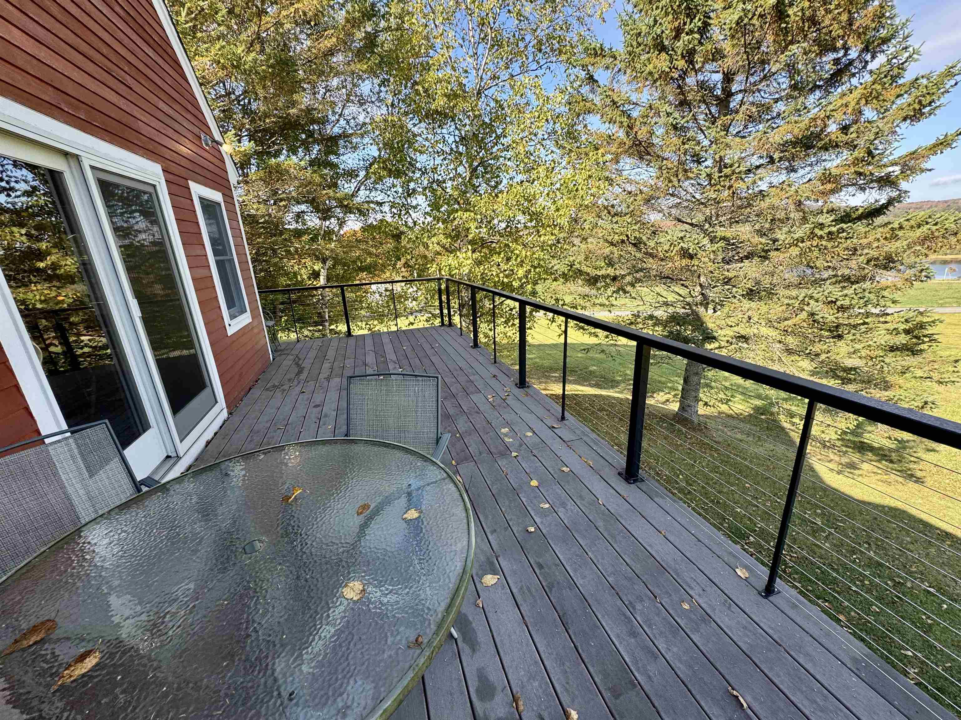 Set atop a gentle rise on 5.1 acres of open Vermont countryside, 9 Henderson Drive is a place where nature meets comfort, and most windows frame a postcard view. This 4-bedroom, 3-bath Contemporary home features nearly 2, 000 finished square feet of thoughtfully designed living space, highlighted by panoramic views of both Ticklenaked Pond and Blue Mountain. Step inside and you are greeted by an open-concept layout with soaring ceilings and natural woodwork that create a warm, inviting ambiance. The kitchen, dining area, and living room flow seamlessly, designed for everyday comfort and effortless entertainment. Enjoy morning coffee at the breakfast bar or cozy up by the woodstove with a good book. A wall of windows and glass doors opens to an expansive wraparound deck where you will enjoy Vermont’s four-season beauty - from foliage to snowfall, all with a water and mountain backdrop. Whether you are seeking a peaceful full-time residence or a classic Vermont getaway, this property offers easy access to I-91, nearby shopping and restaurants, and recreation on Ticklenaked Pond. Privacy, space, and unparalleled views - this is Vermont living at its best.
