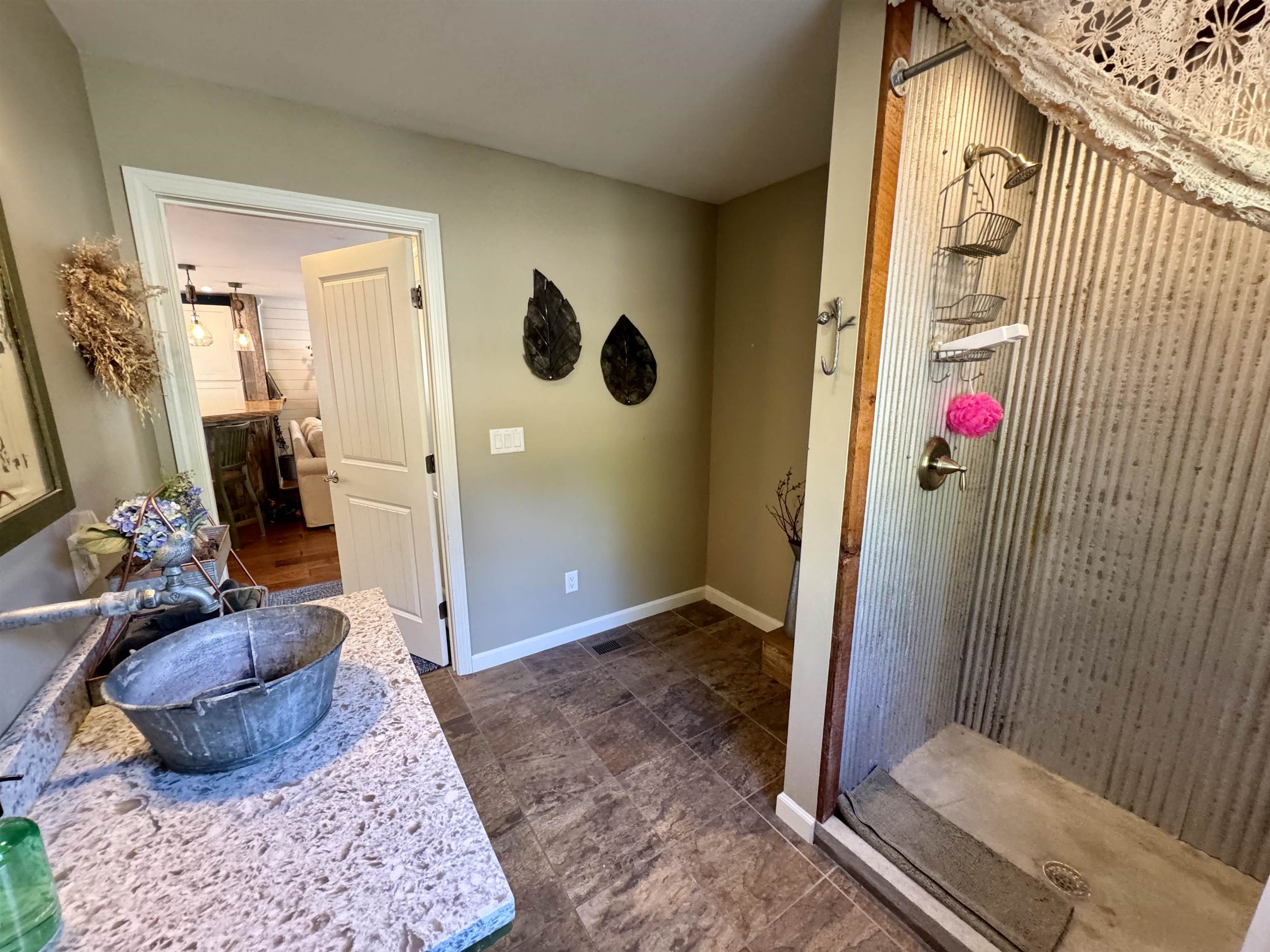 Modern construction with a stunning view located in Topsham on the border of Corinth on five acres of land. Built with hospitality in mind, this home opens to a large living area with a hearth and wood stove as well as an enclosed porch capturing the surroundings of the property. The kitchen was designed by chefs and that echoes throughout. The large granite countertops provide plenty of staging space for entertaining or preparation, the gas range is restaurant quality and the built-in dining area banquette for a flexible setup is convenient and comfortable. An attached office space currently used as a sewing room also has a 3/4 bathroom with a stall shower adjacent if a first floor bedroom was needed. The laundry for the home is in a room at the bottom of the stairs up to the three bedrooms. The two bedrooms in the hall are serviced by the full bathroom, and the primary bedroom includes a walk-in closet currently used as another office as well as an ensuite full bathroom with soaking tub and stall shower. The basement of the home is partially finished with a bonus room currently set up as another sleeping space, as well as a large open shop area with access to the home's utilities. The exterior of the home is well-landscaped and includes a poultry coop as well as tiered rock gardens. The home has solar panels, lease will transfer with the property. A stunning property with a convenient location for local work/play! Sale is contingent upon seller finding suitable housing.