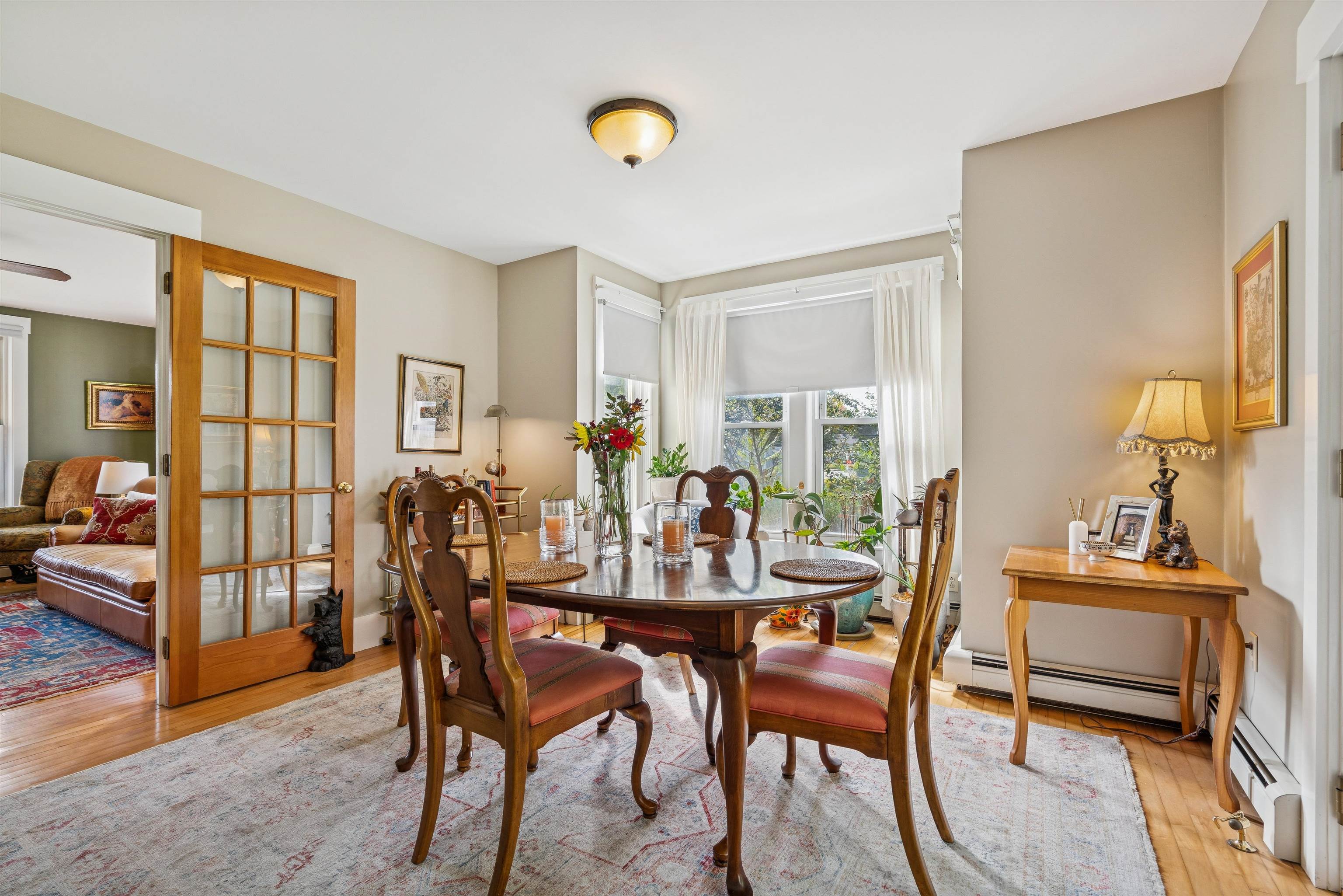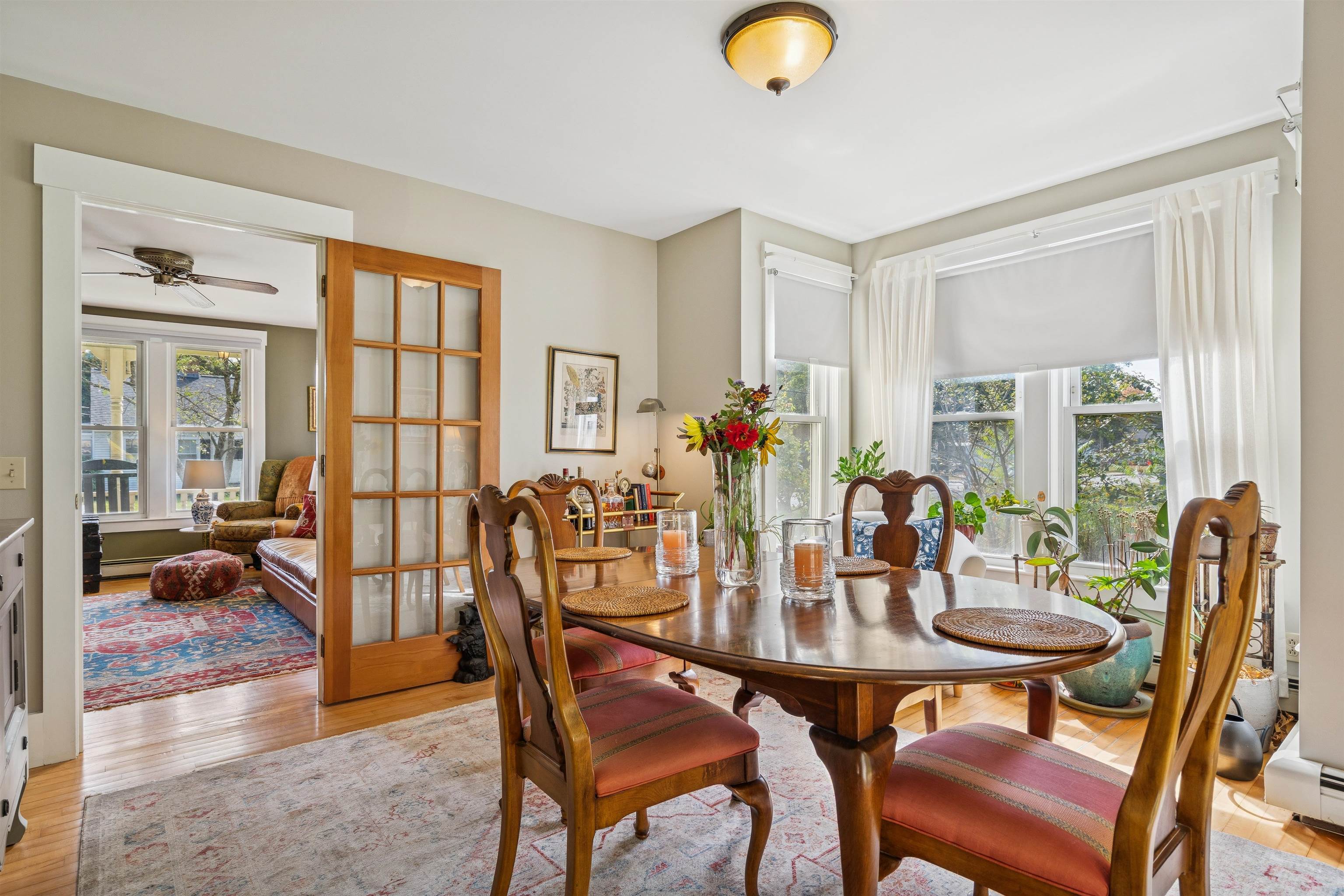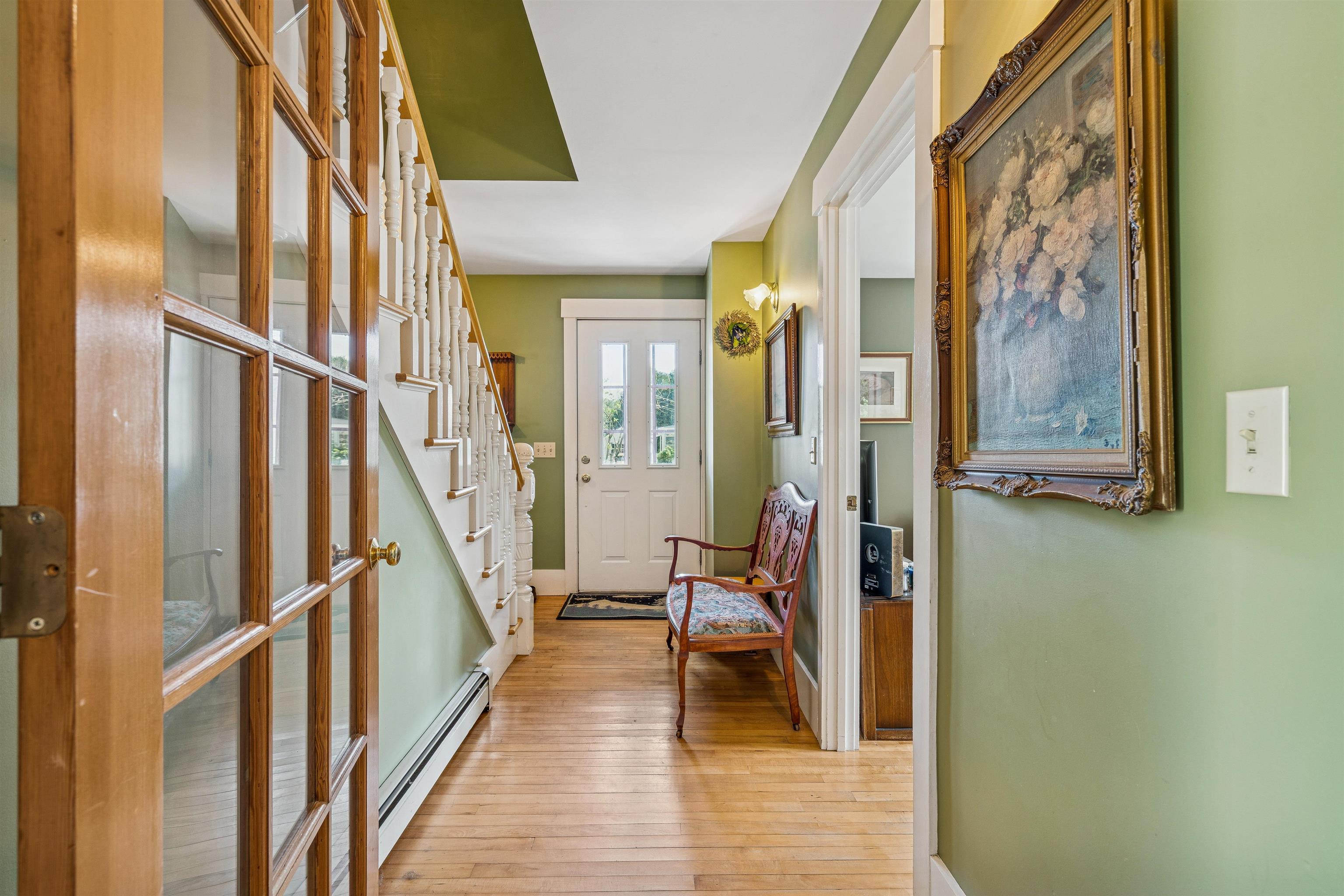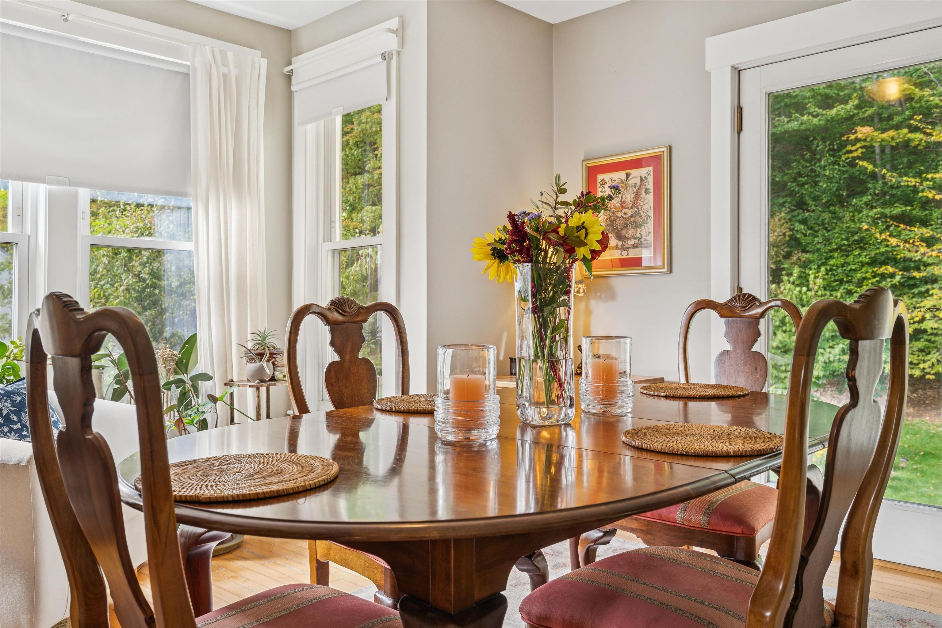 This charming New Englander has been fully renovated over time and offers wonderful space and natural light throughout. The highly functional floor plan provides spacious rooms on every level. The first floor includes the kitchen, living room, half-bath, bonus nook, and dining room that opens out to the beautifully landscaped backyard, brimming with pear, apple, and other fruit trees, a vegetable and flower garden, and charming outbuilding. Relax by the fire pit in the shoulder seasons or dine outdoors in the warmer months under the vine-covered lounging area. The space is a true oasis, ideal for both privacy and entertaining. The second floor offers a spacious primary bedroom, 2 additional nicely proportioned bedrooms, and a full bath. The third-floor attic area is unfinished but with the right design could provide additional living space if desired. The walk-out basement is a unique feature offering loads of storage space and a workshop area. The owners have made many thoughtful updates to the home including a new roof, extensive outdoor landscaping, and interior painting, to name a few. The neighborhood is just minutes from Kilowatt Park (a public picnic area and boat launch on the Connecticut River), Dartmouth College's campus, Dartmouth Medical Center, local area schools, restaurants and shopping. Don't miss out on this incredible opportunity to live in the heart of the Upper Valley. Open Houses Wednesday, 10/1, from 4 - 6 PM and Saturday, 10/4, from 11 AM - 1 PM.