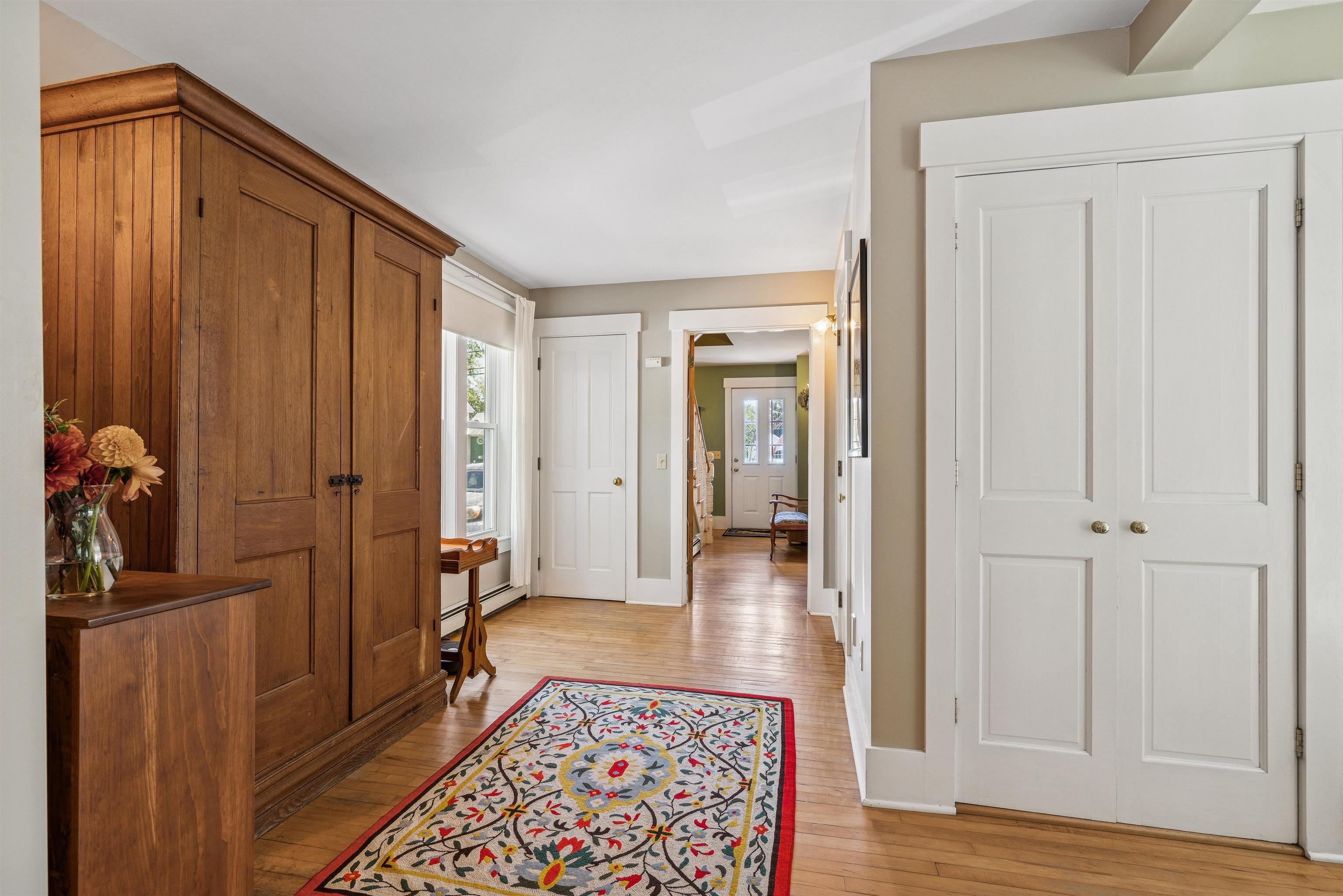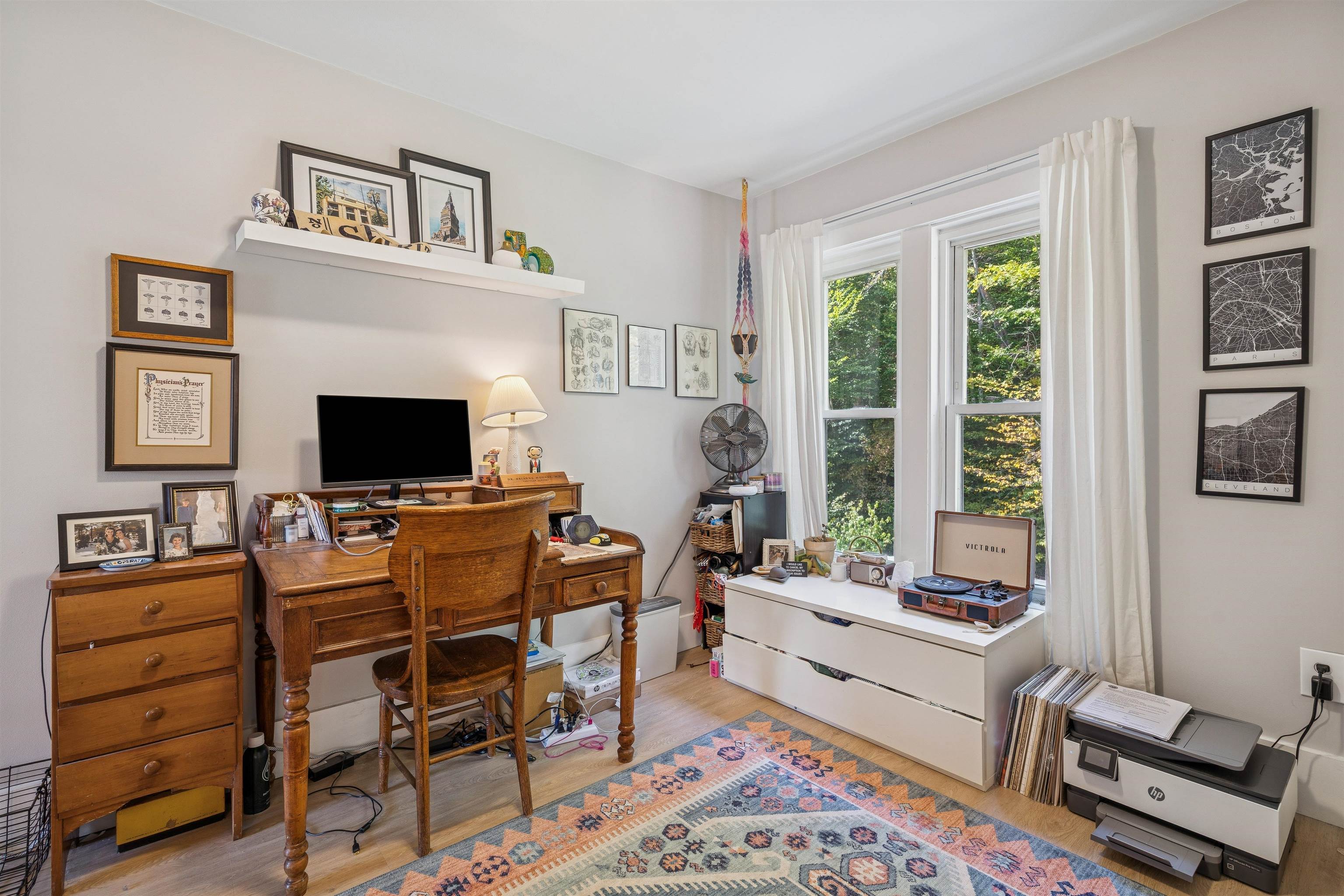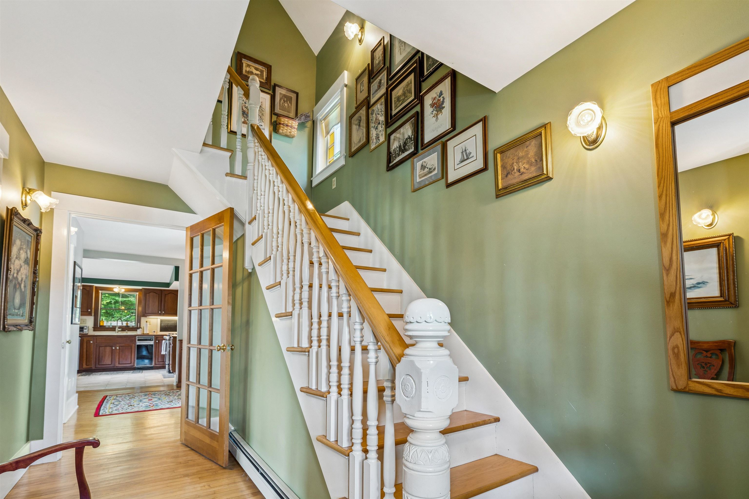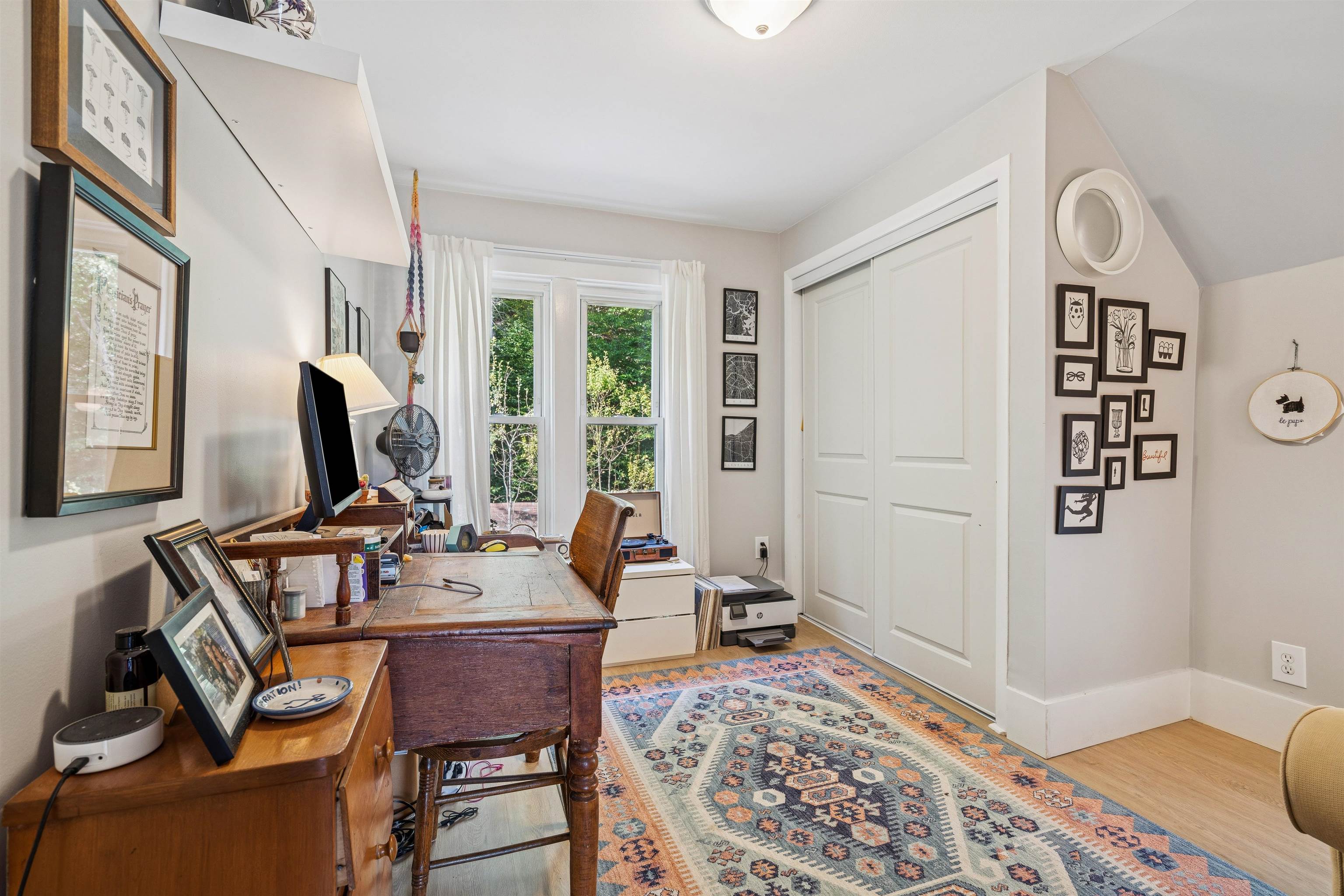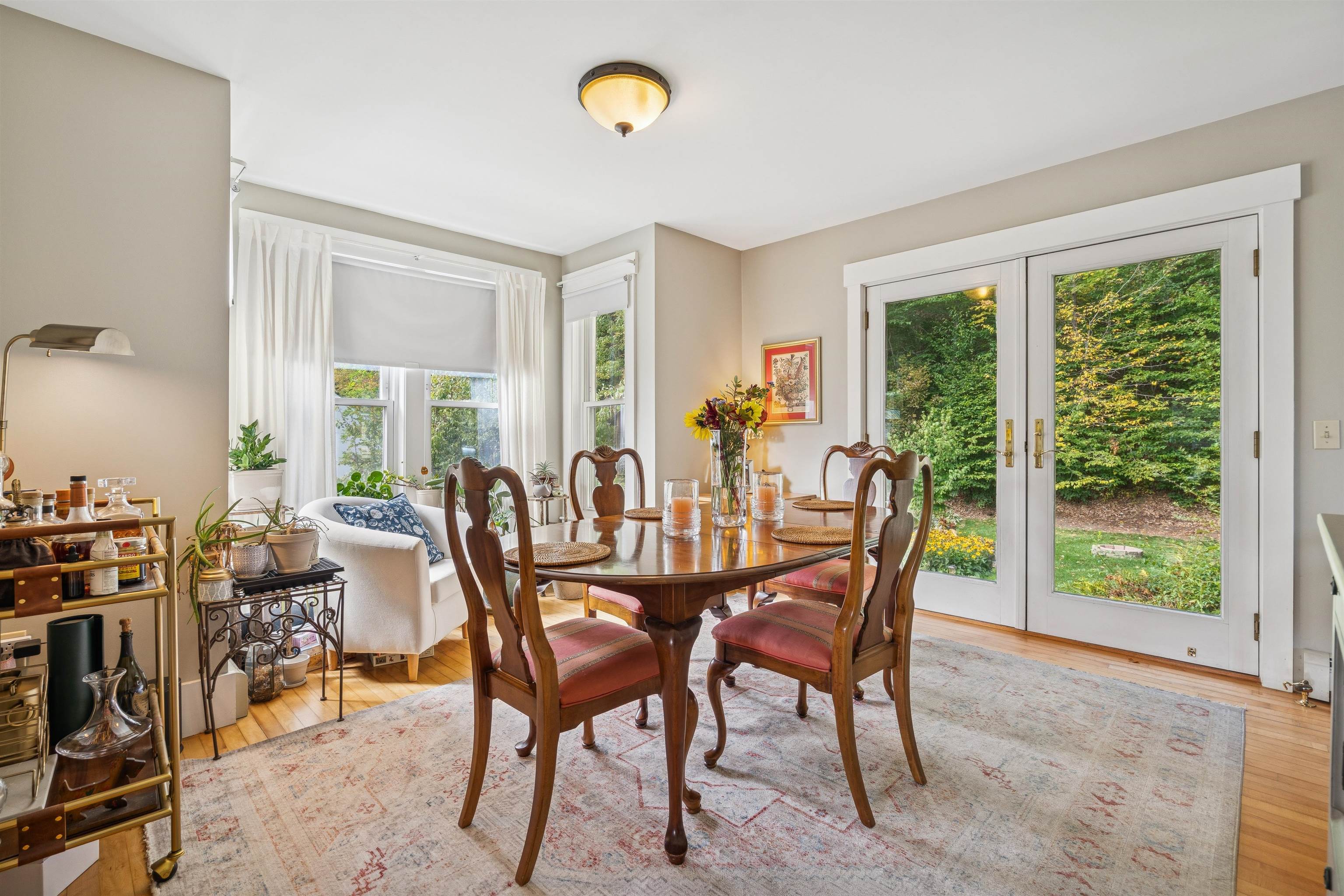 This charming New Englander has been fully renovated over time and offers wonderful space and natural light throughout. The highly functional floor plan provides spacious rooms on every level. The first floor includes the kitchen, living room, half-bath, bonus nook, and dining room that opens out to the beautifully landscaped backyard, brimming with pear, apple, and other fruit trees, a vegetable and flower garden, and charming outbuilding. Relax by the fire pit in the shoulder seasons or dine outdoors in the warmer months under the vine-covered lounging area. The space is a true oasis, ideal for both privacy and entertaining. The second floor offers a spacious primary bedroom, 2 additional nicely proportioned bedrooms, and a full bath. The third-floor attic area is unfinished but with the right design could provide additional living space if desired. The walk-out basement is a unique feature offering loads of storage space and a workshop area. The owners have made many thoughtful updates to the home including a new roof, extensive outdoor landscaping, and interior painting, to name a few. The neighborhood is just minutes from Kilowatt Park (a public picnic area and boat launch on the Connecticut River), Dartmouth College's campus, Dartmouth Medical Center, local area schools, restaurants and shopping. Don't miss out on this incredible opportunity to live in the heart of the Upper Valley. Open Houses Wednesday, 10/1, from 4 - 6 PM and Saturday, 10/4, from 11 AM - 1 PM.