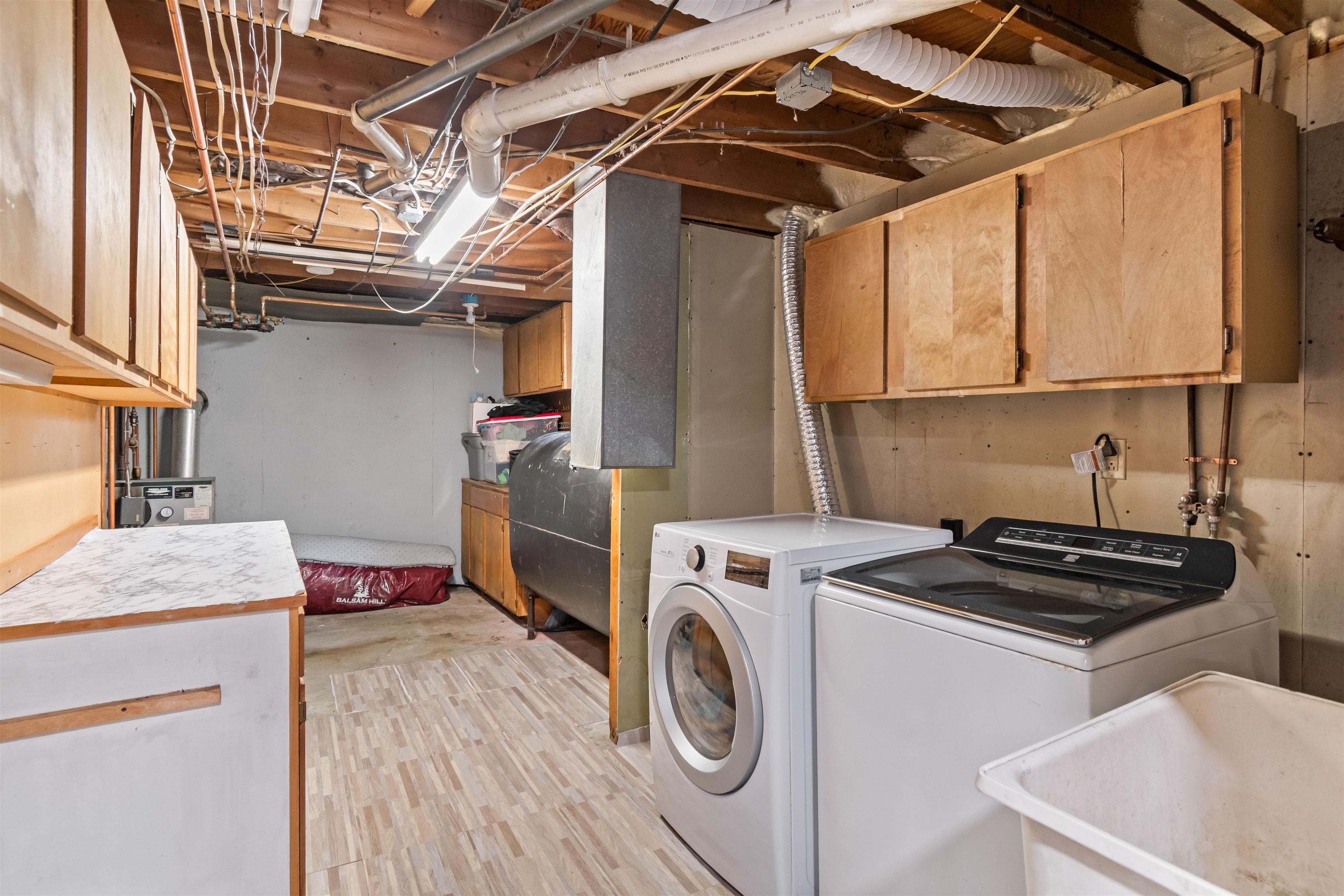- Ceiling Fan, Dining Area, Kitchen/Dining, Natural Light, Natural Woodwork, Programmable Thermostat, Basement Laundry