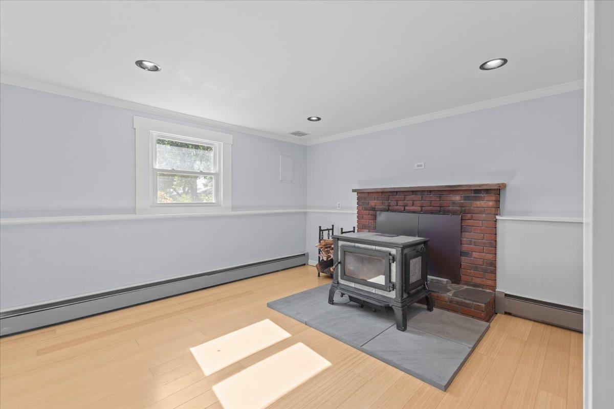 Welcome to this beautifully updated raised ranch, ideally situated in a well-established and desirable neighborhood. This home features 3 generously sized bedrooms, an additional office space, and 1.5 bathrooms—perfectly blending modern comfort with classic charm. Natural light pours into the main level, highlighting the gleaming hardwood floors and the tastefully renovated kitchen and full bathroom. The spacious layout offers comfortable living with plenty of room to relax and entertain. Downstairs, the finished lower level is designed with versatility in mind. A built-in bar with a sleek granite countertop sets the stage for memorable gatherings, while a cozy wood stove adds warmth and ambiance on cooler days. You’ll also find a dedicated office space and a convenient half bathroom w/laundry on this level. Newly installed heat pumps allow for year round comfort! Step outside onto the private back deck that overlooks a level, landscaped yard—ideal for outdoor activities and relaxation. Nature lovers will appreciate the mature landscaping filled with vibrant perennials and an impressive assortment of fruit trees and shrubs. Conveniently located near the Colchester Bike Path and Causeway, Lake Champlain beaches and marinas, Airport Park, the drive-in movie theater, and more!