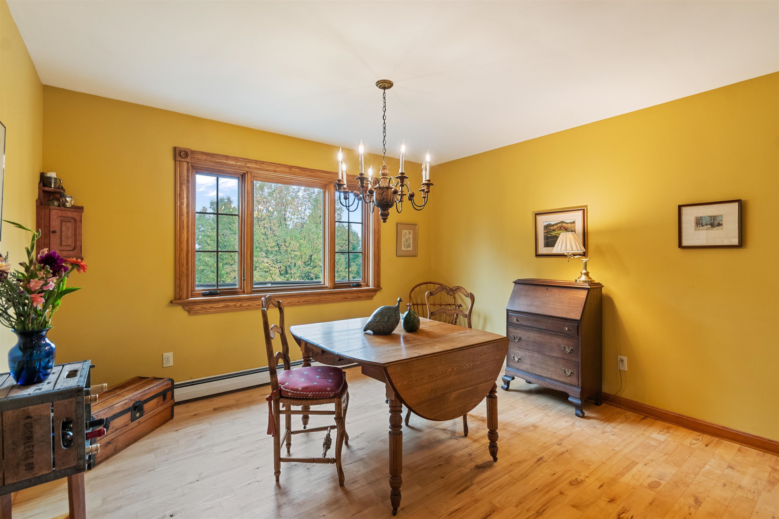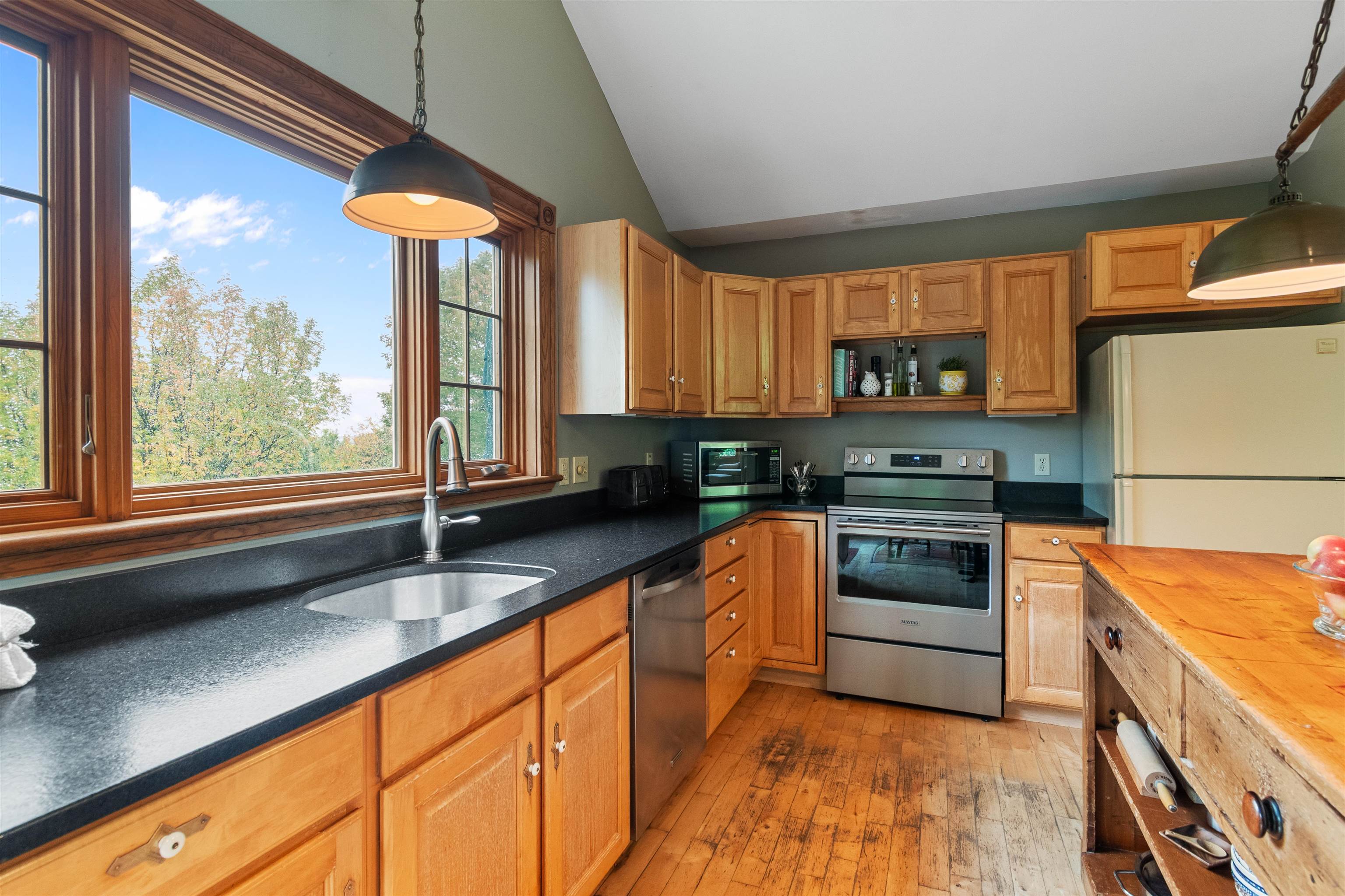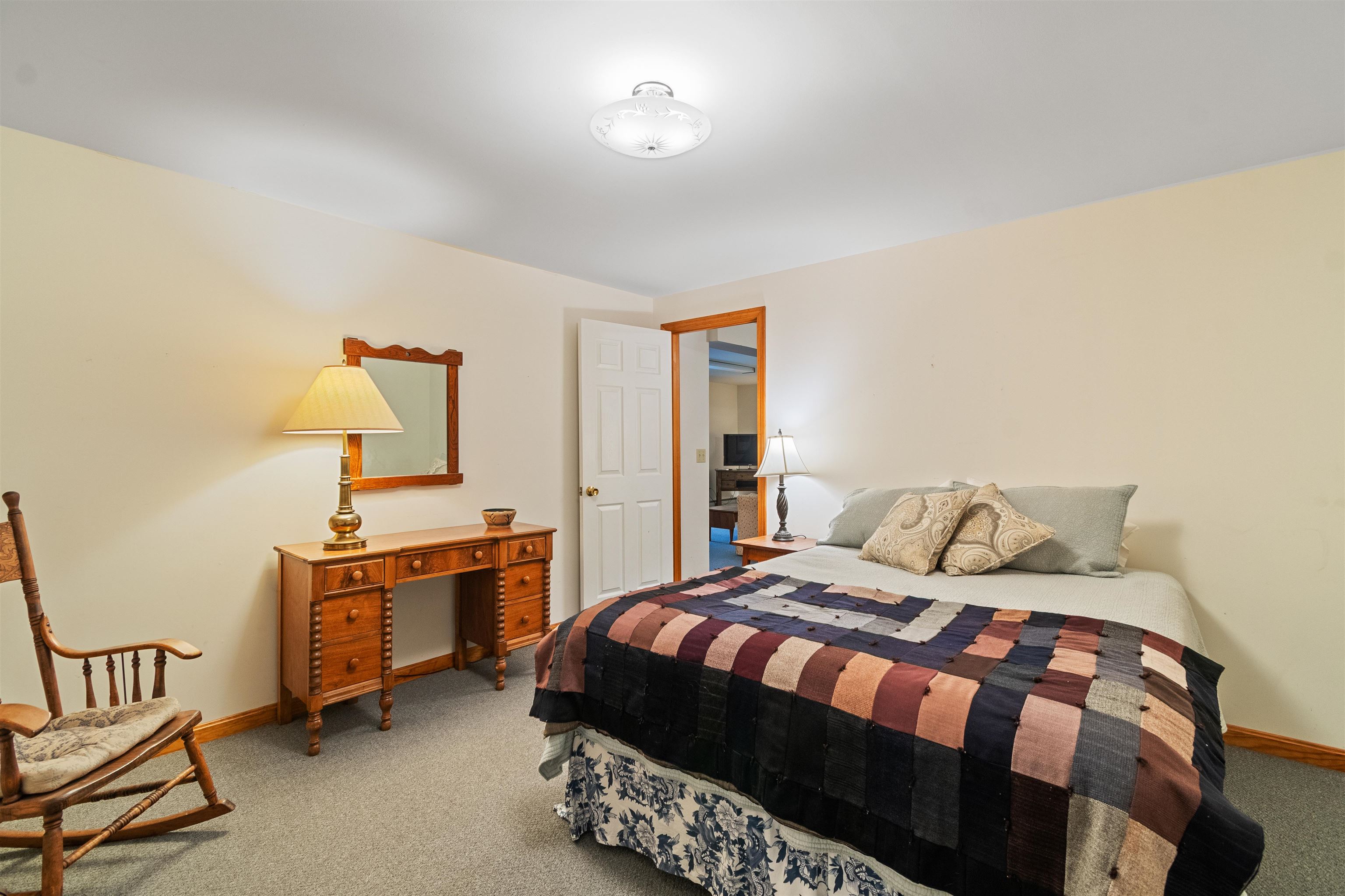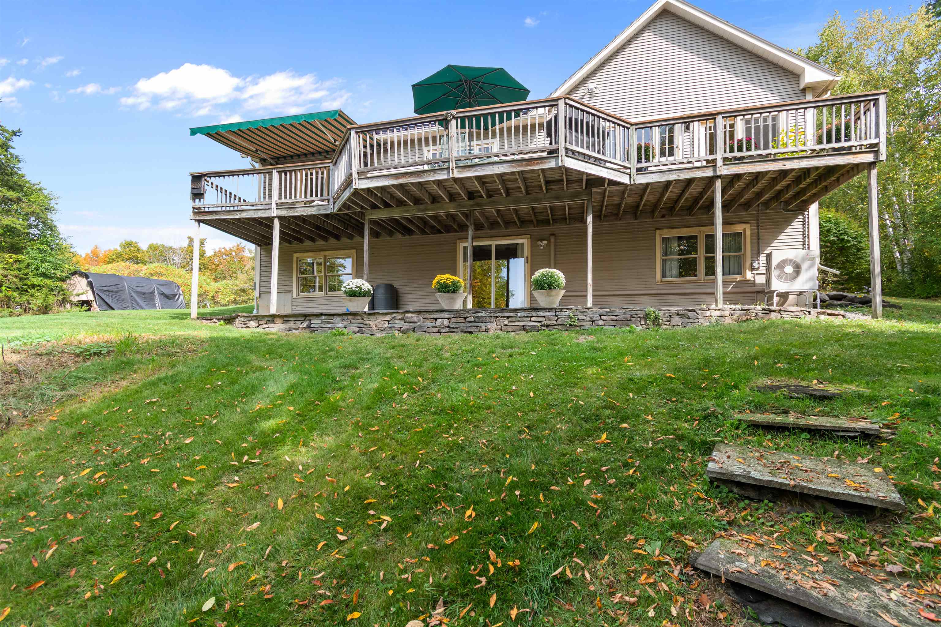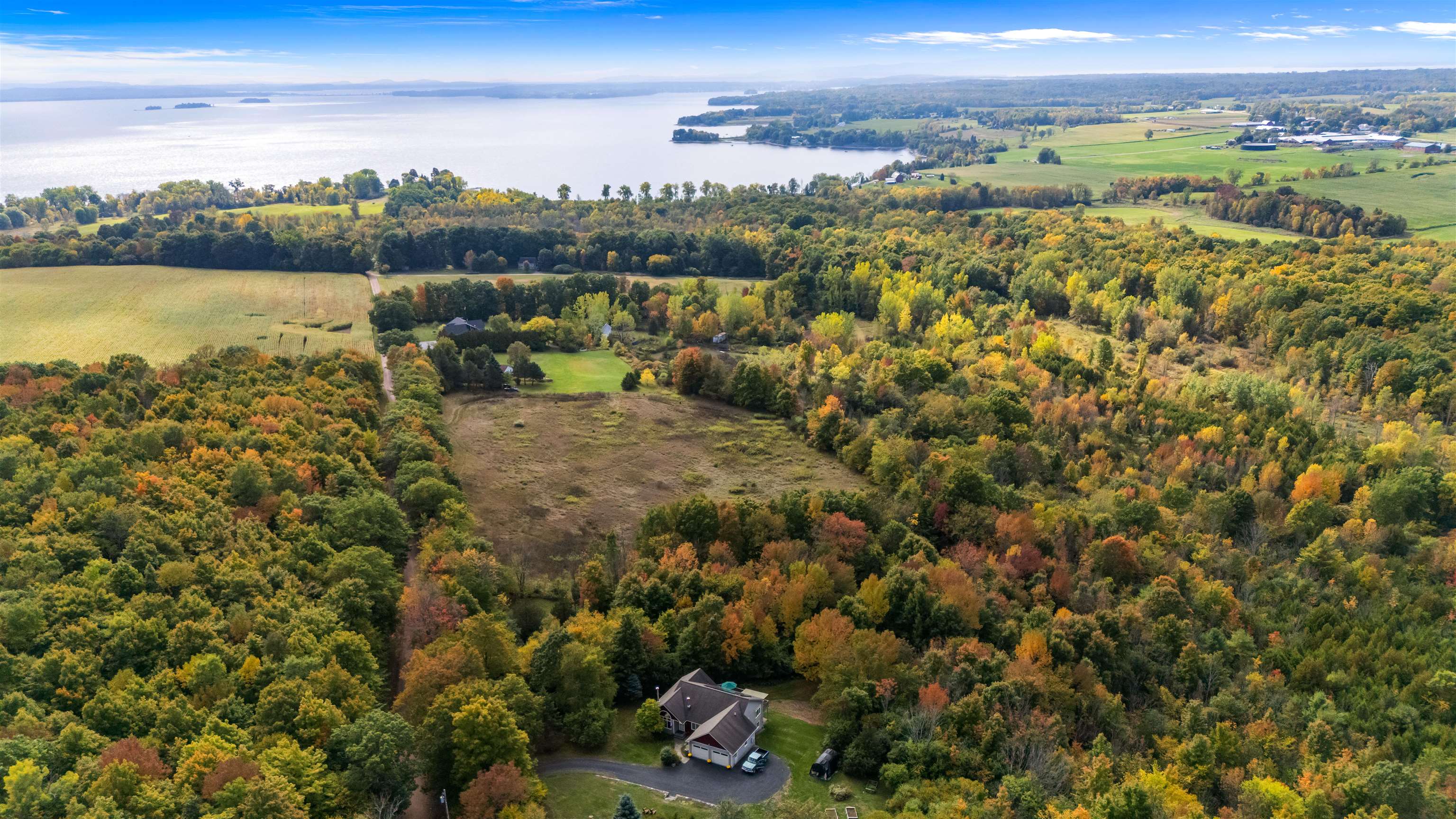 This lovingly cared for, expansive 5-bed, 2.5-bath home sits on over 11 acres in beautiful Grand Isle. Step inside to an open-concept main living space featuring vaulted ceilings, hardwood floors, and a cozy fireplace. The kitchen, overlooking the living area, boasts granite countertops and wood cabinets. Sliding doors lead to a large back deck with an Otter Creek awning and peekaboo views of Lake Champlain, the Adirondacks, and sunsets (especially in winter). The main level also includes a formal dining room and a first-floor primary suite with a walk-in closet, deck access, and an ensuite with double sinks, a soaking tub, and a step-in shower. A second bedroom, half bath, and direct entry to the 2-car garage complete this floor. The spacious finished walkout basement offers a central bonus space with access to a stone patio, plus three well-sized bedrooms with daylight windows and a full bath. Notable upgrades include owned solar panels (2017), a hard wired generator, new hot water tank (2020), radon mitigation system, and a new garage foundation (2024). Outside, find charming stone walls, a large gravel driveway, and a versatile shed with power and heat. Thoughtfully designed for single-level living flexibility yet offering abundant square footage, this is a rare opportunity to be only the second owner. Located on a quiet, town-maintained road, less than a mile from the town beach, this special property is ready for its next chapter.
