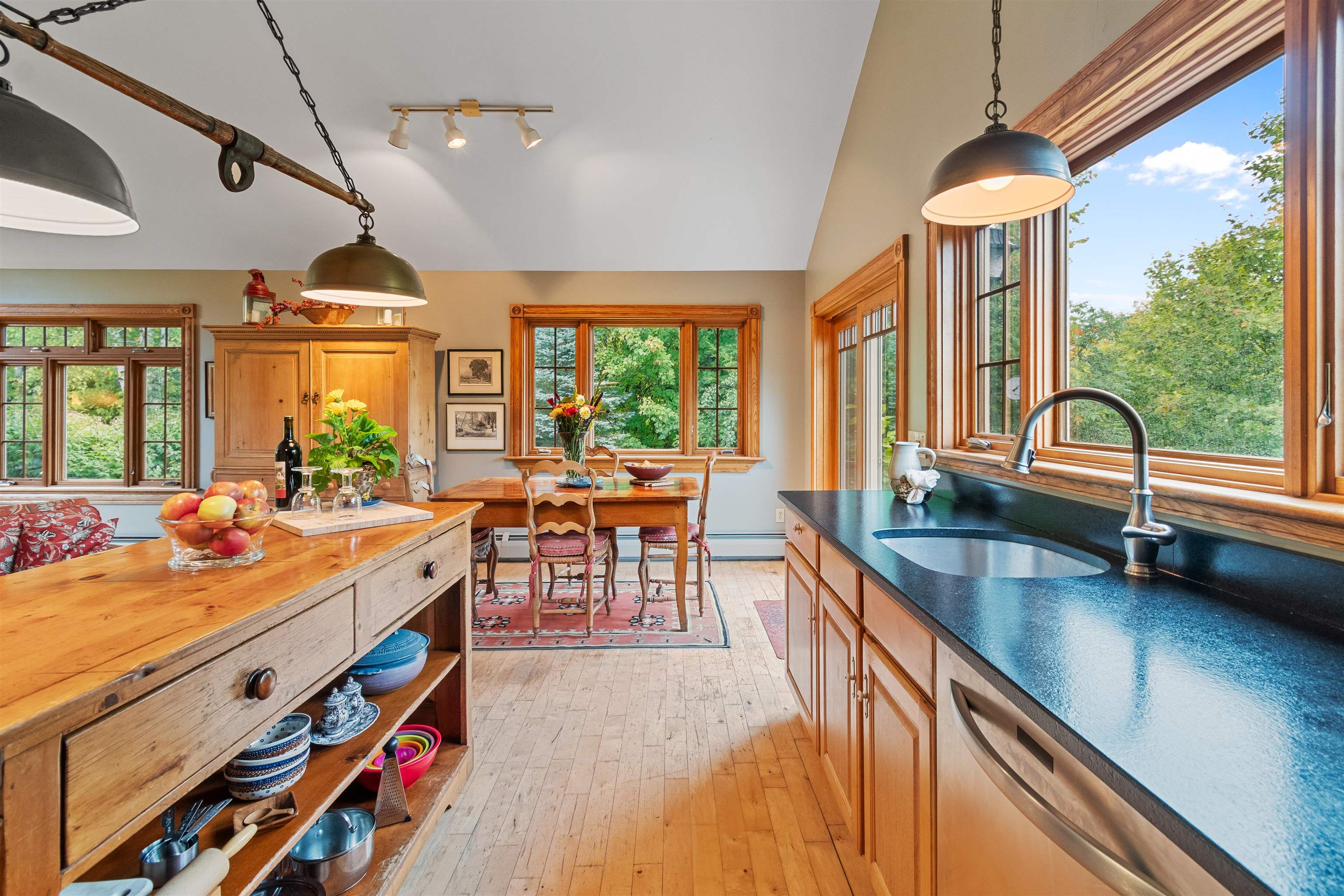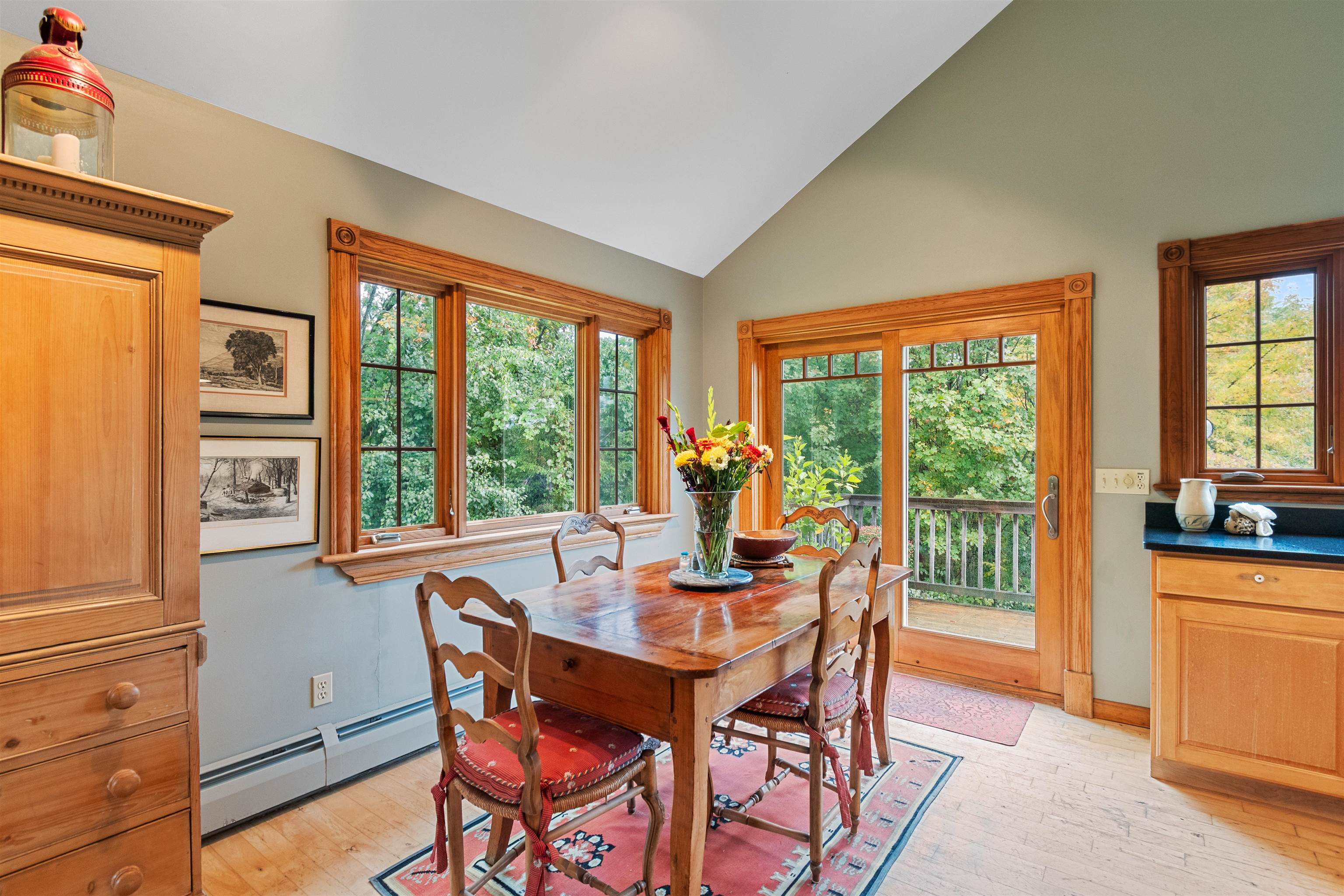 - Blinds, Ceiling Fan, Dining Area, Fireplace Screens/Equip, Wood Fireplace, 1 Fireplace, Hearth, Kitchen/Living, Primary BR w/ BA, Natural Light, Natural Woodwork, Soaking Tub, Indoor Storage, Vaulted Ceiling, Walk-in Closet, Wood Stove Insert, Basement Laundry