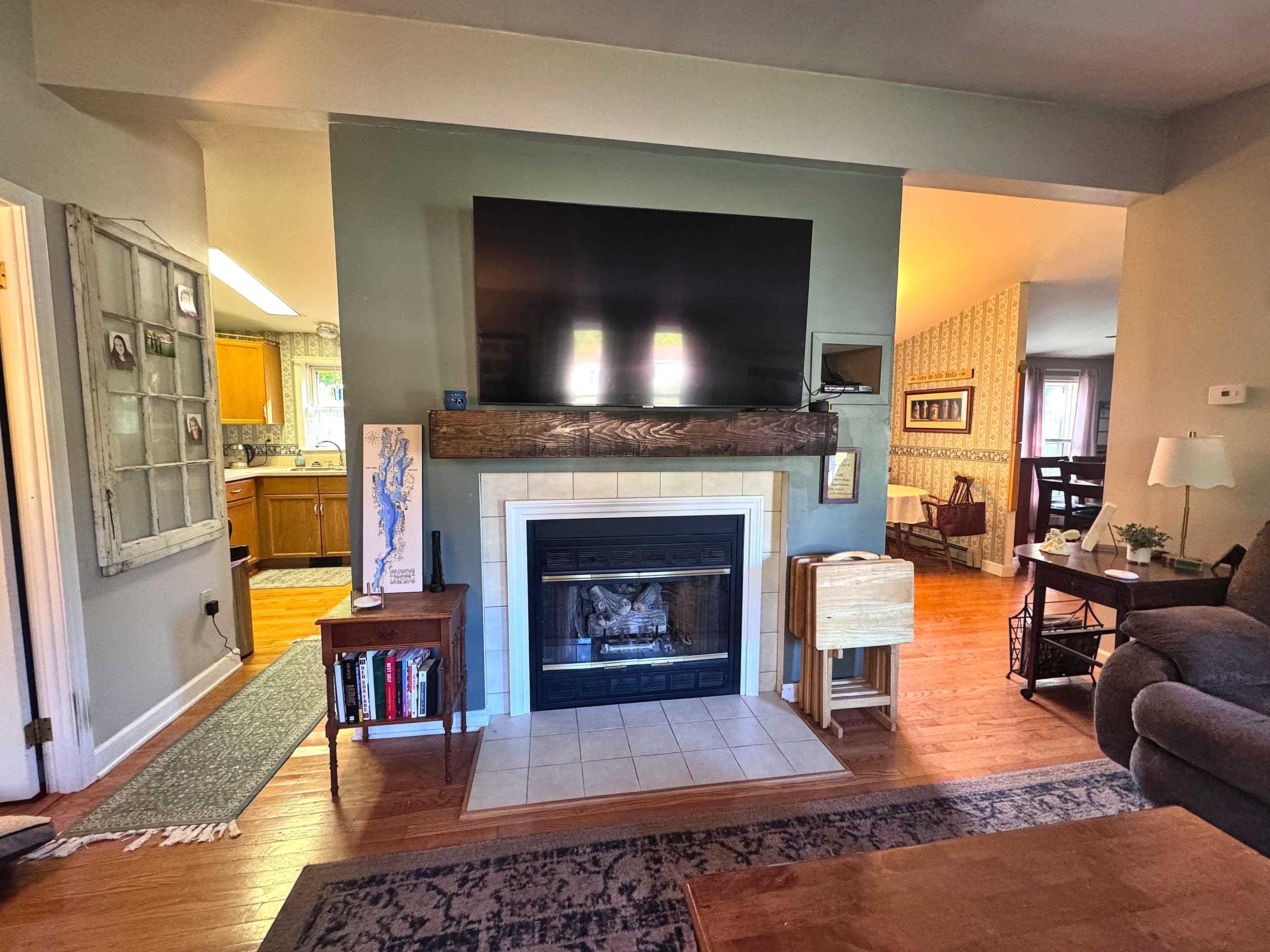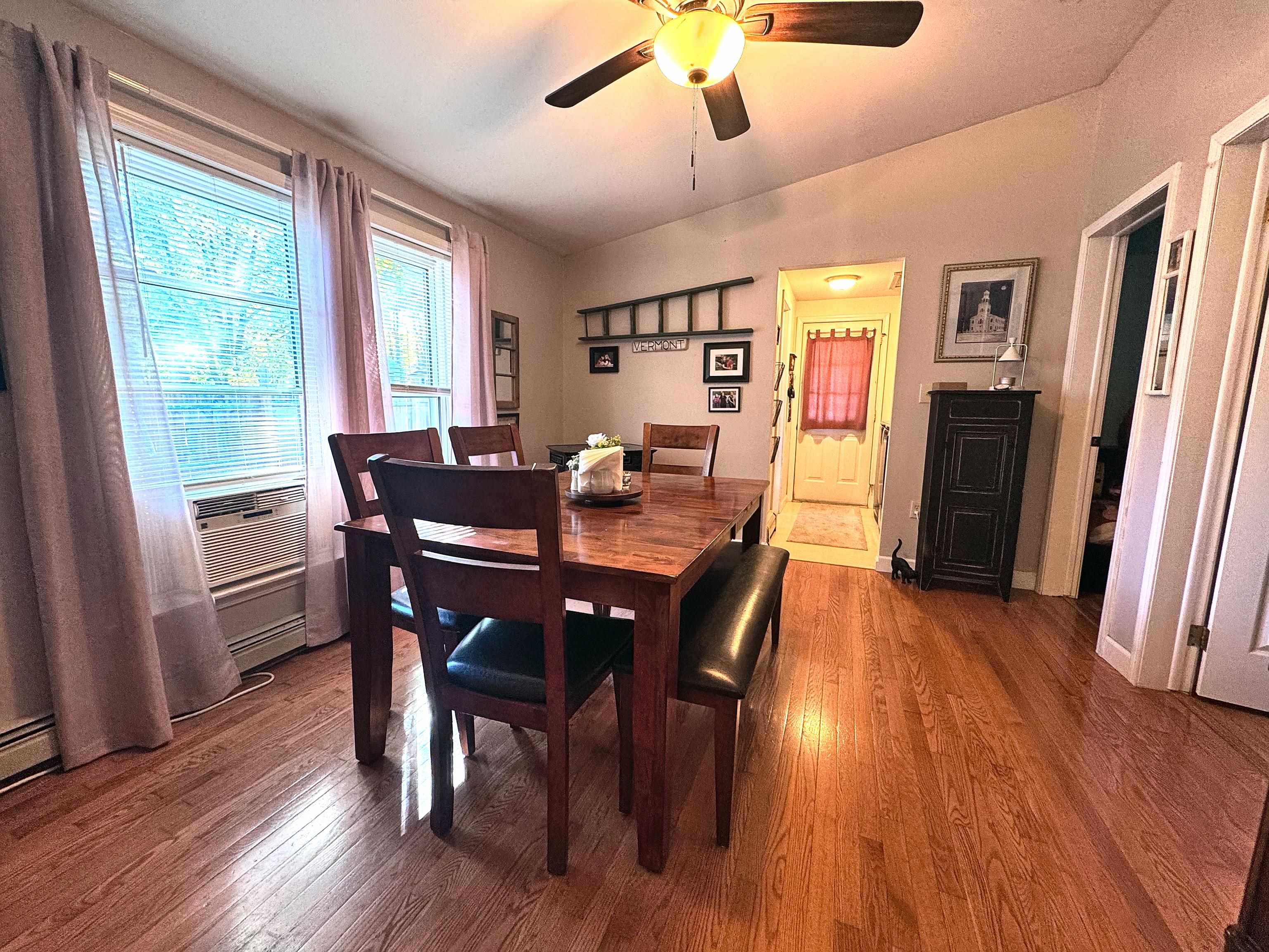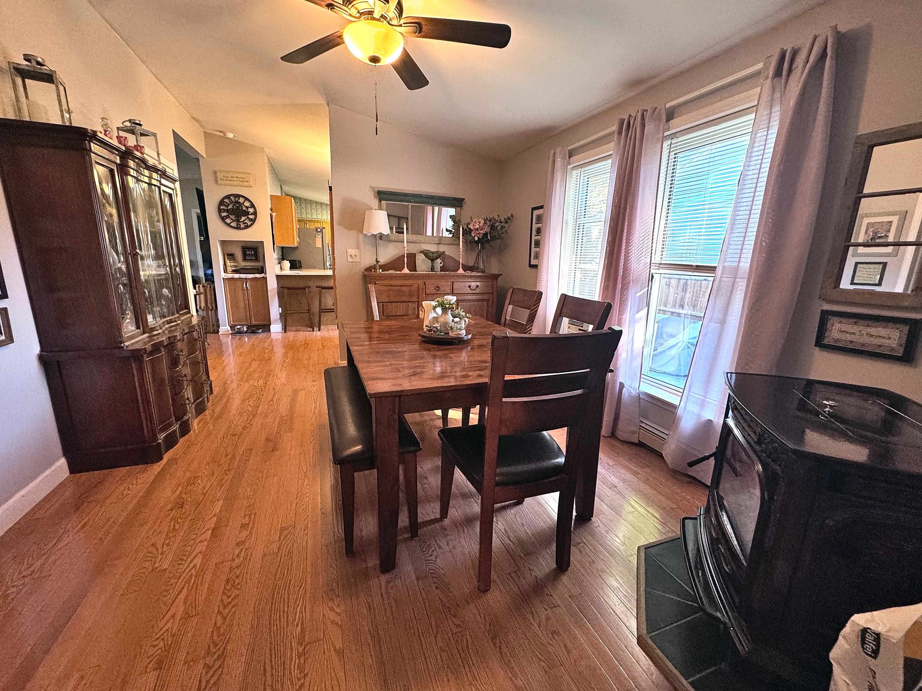 - Blinds, Ceiling Fan, Dining Area, Gas Fireplace, 1 Fireplace, Kitchen/Dining, Laundry Hook-ups, Primary BR w/ BA, Natural Light, Natural Woodwork, Indoor Storage, 1st Floor Laundry
