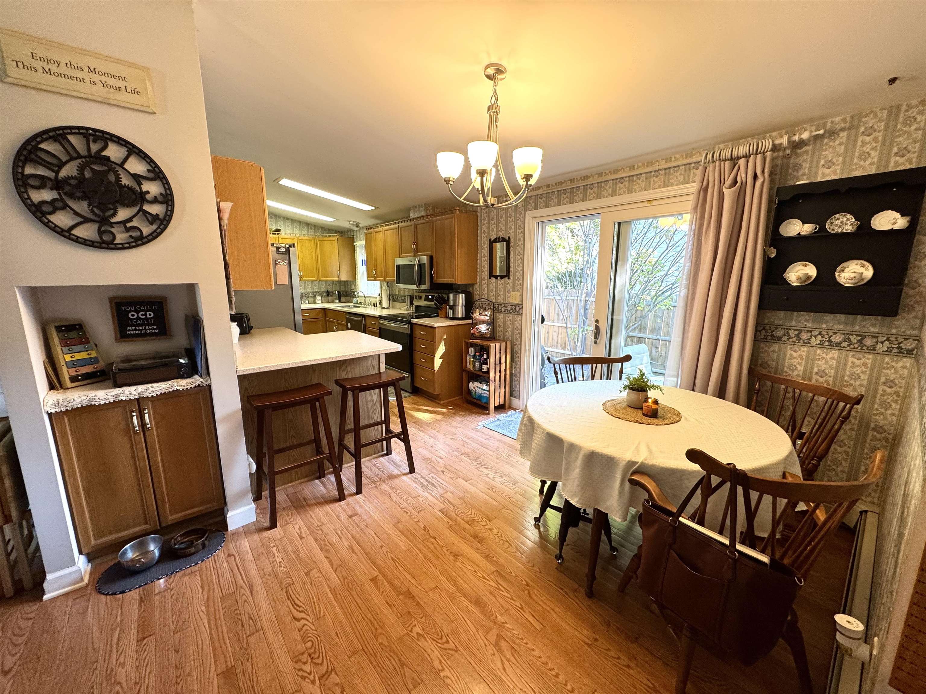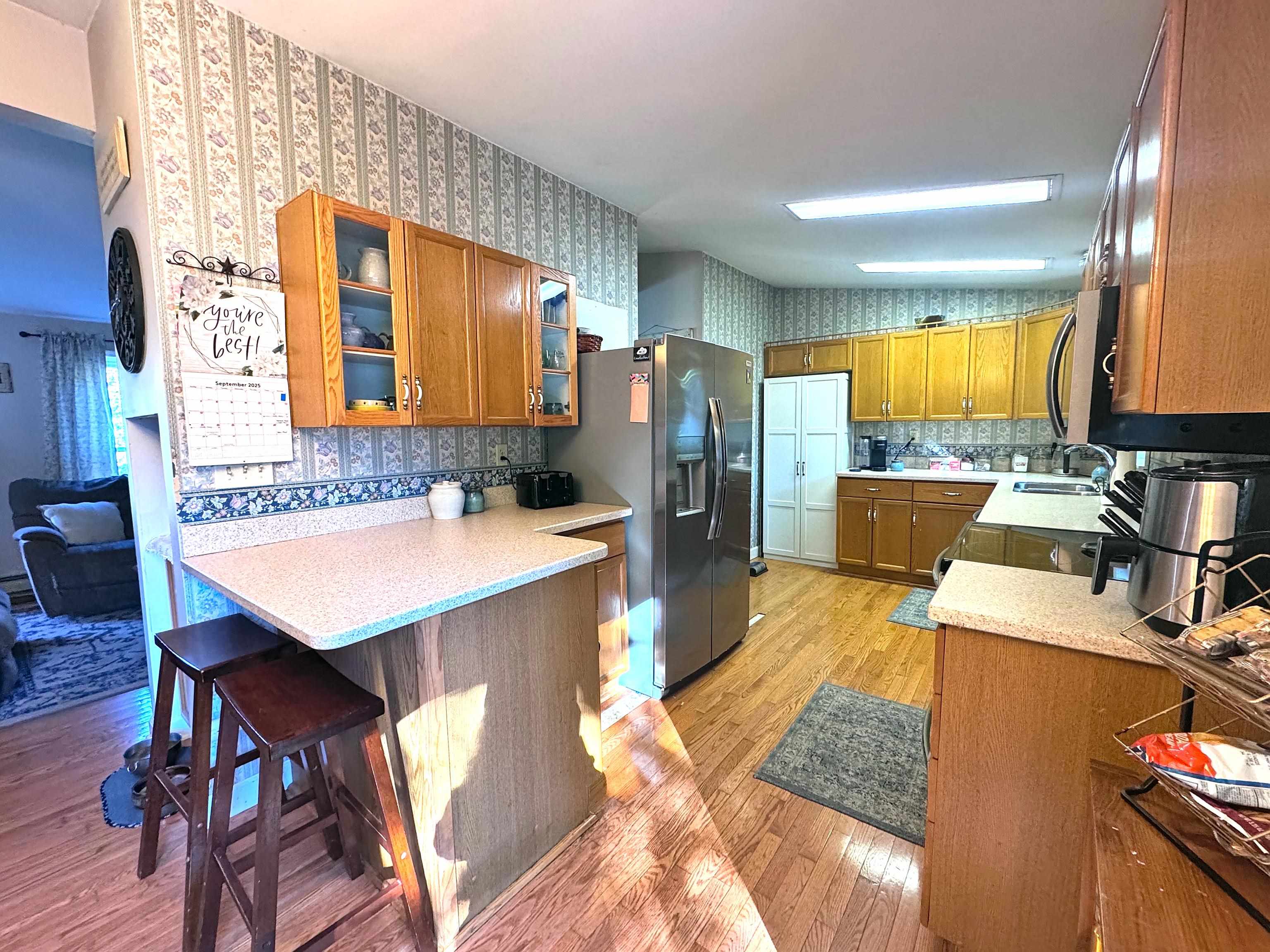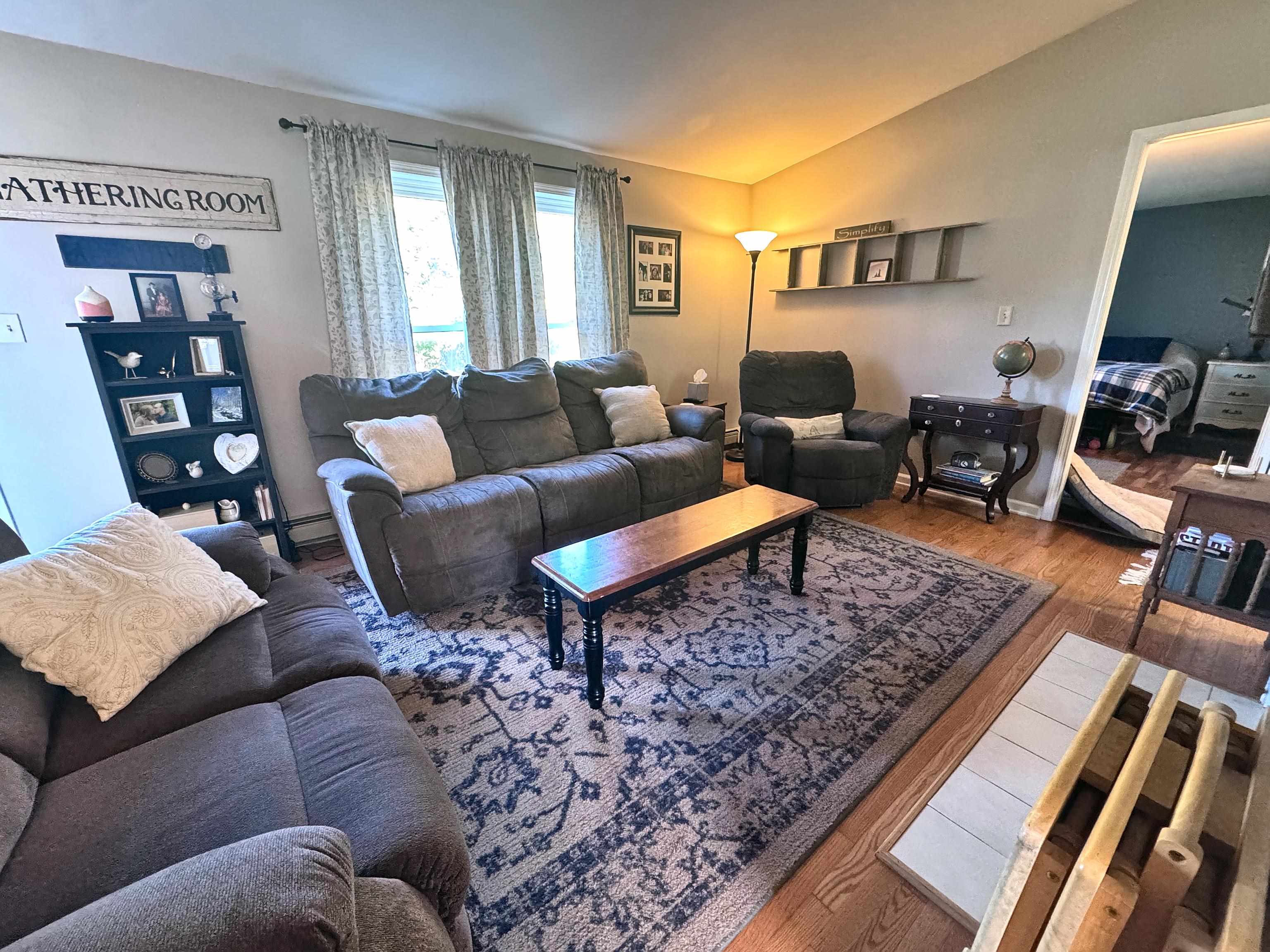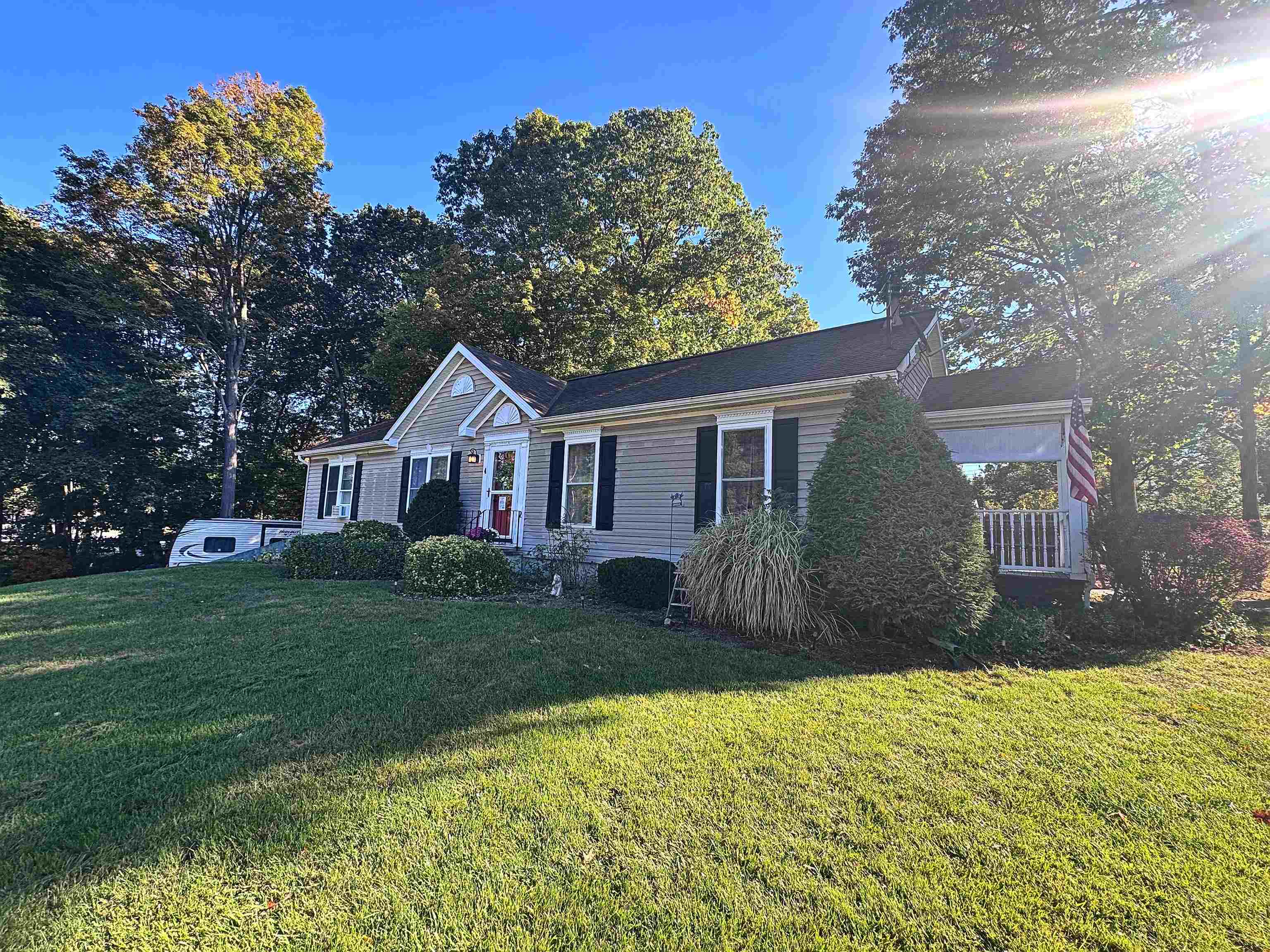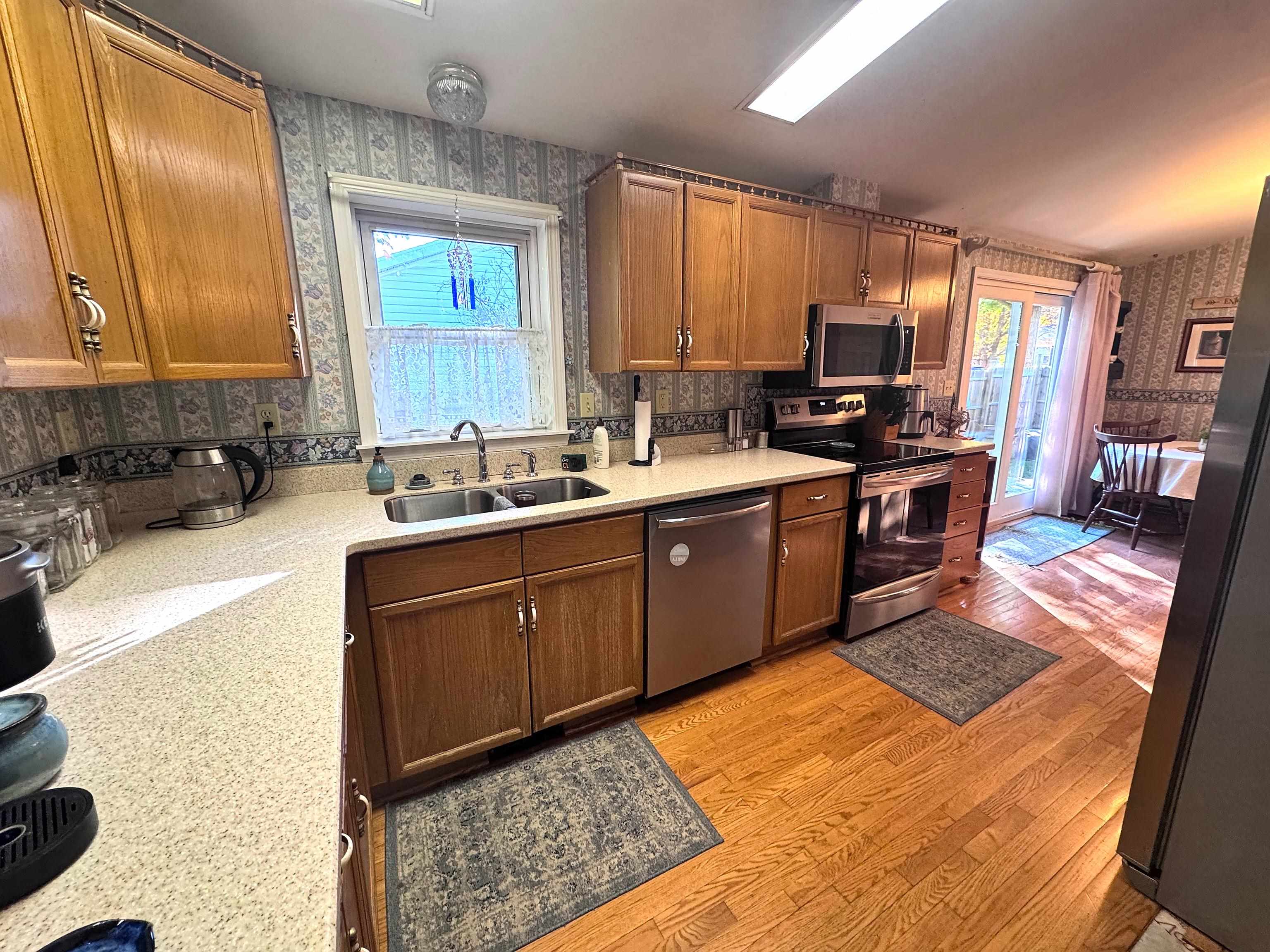 Found your new home! This well maintained and updated ranch on a lovely corner lot has all of the ease of one-level living with all of the space you need. Relax on the covered side porch next to the stamped concrete patio with privacy fence for outdoor entertaining. Enjoy the sights and sounds of the peaceful brook on the wooded edge of the property. Two driveways provide ample parking for you and your guests. Step inside and you will find a full bath and first floor laundry. Down the hall are two good-sized bedrooms with closets. The formal dining room has a pellet stove and there are hardwood floors throughout the main areas. The living room has a cozy gas fireplace for added warmth and ambiance. The kitchen is equipped with plenty of cabinetry, a peninsula, newer stainless steel appliances, and a cute dining spot near the sliding doors that open to the patio. The primary suite is impressive with a large renovated bathroom. If that wasn’t enough, the finished basement provides even more living space and includes a mini split system and bonus room. The utility room houses a brand new hybrid water heater for energy efficiency. A two car garage (currently set up as a pottery studio) rounds out this incredible property. Don’t miss out on this one!