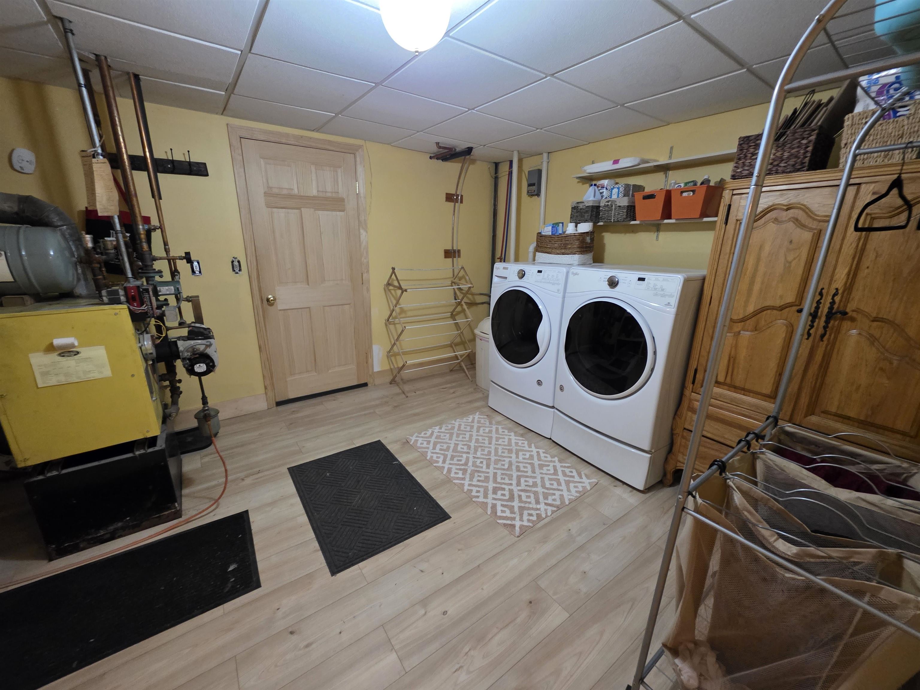 - Cathedral Ceiling, Ceiling Fan, Hearth, Hot Tub, Primary BR w/ BA, Natural Light, Natural Woodwork, Basement Laundry
