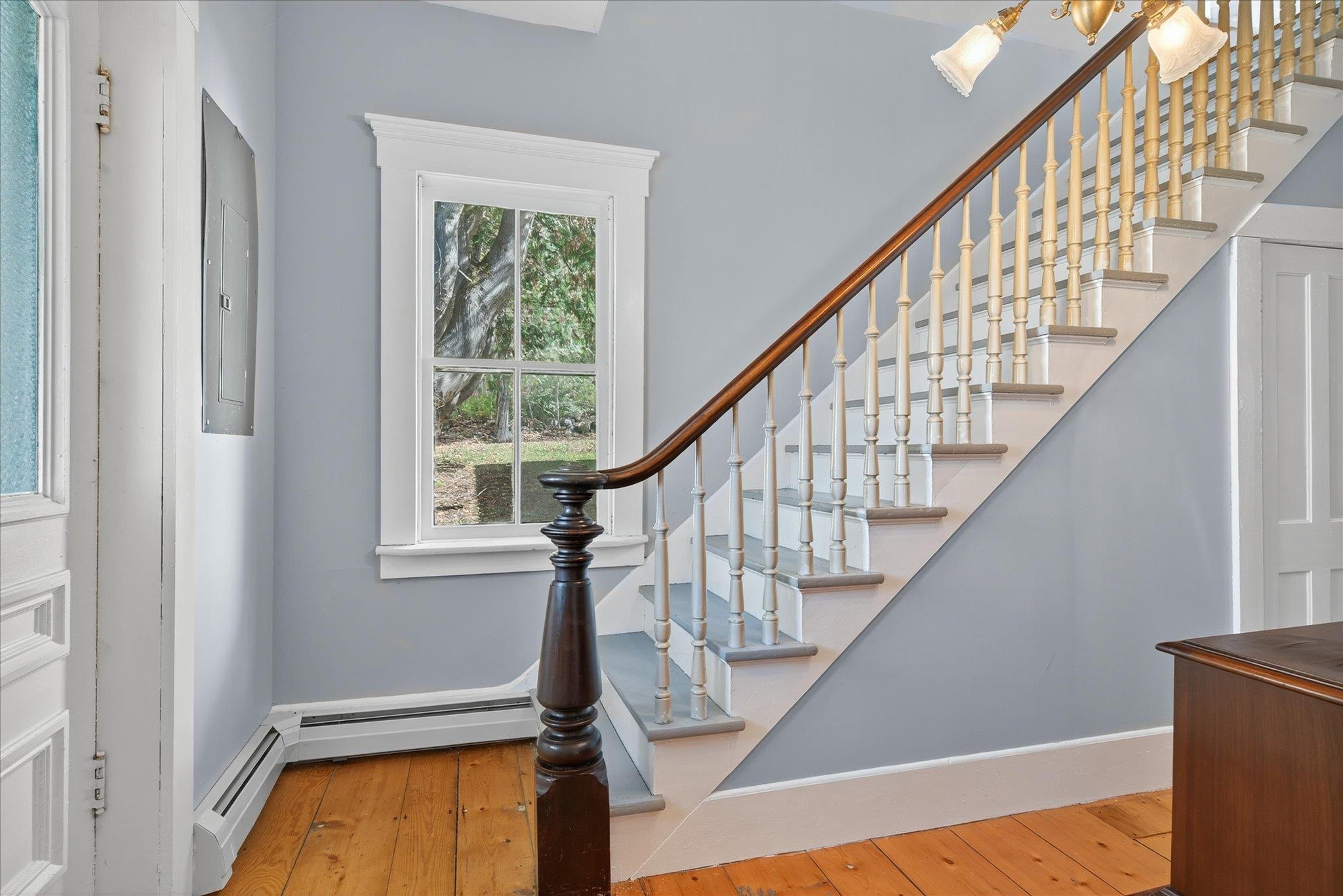 It’s easy to imagine stepping back in time at this charming farmhouse—yet it’s been beautifully updated with today’s modern amenities! Set back from the street among stately old maples, the property even holds a nostalgic remnant of an old rope swing. Situated on nearly ¾ of an acre, this four-bedroom, three-bath home features unique character throughout, including a curved wall, an elegant open stairway leading upstairs, a classic pantry room, and even a back staircase from the kitchen. Recent updates include new wiring, a high-efficiency propane heating system, and a newly drilled well. The inviting wrap-around porch is the perfect spot to gather with family and friends, whether enjoying everyday moments or watching the 4th of July parade—and fireworks—go right by. All this, just a short stroll to the NEW Belmont General Store, the Community Library, Star Lake and The Green where you will find seasonal live music and festivals. Conveniently located 15 minutes to Okemo Mountain/Ludlow or Weston, and only 25 minutes to Rutland.