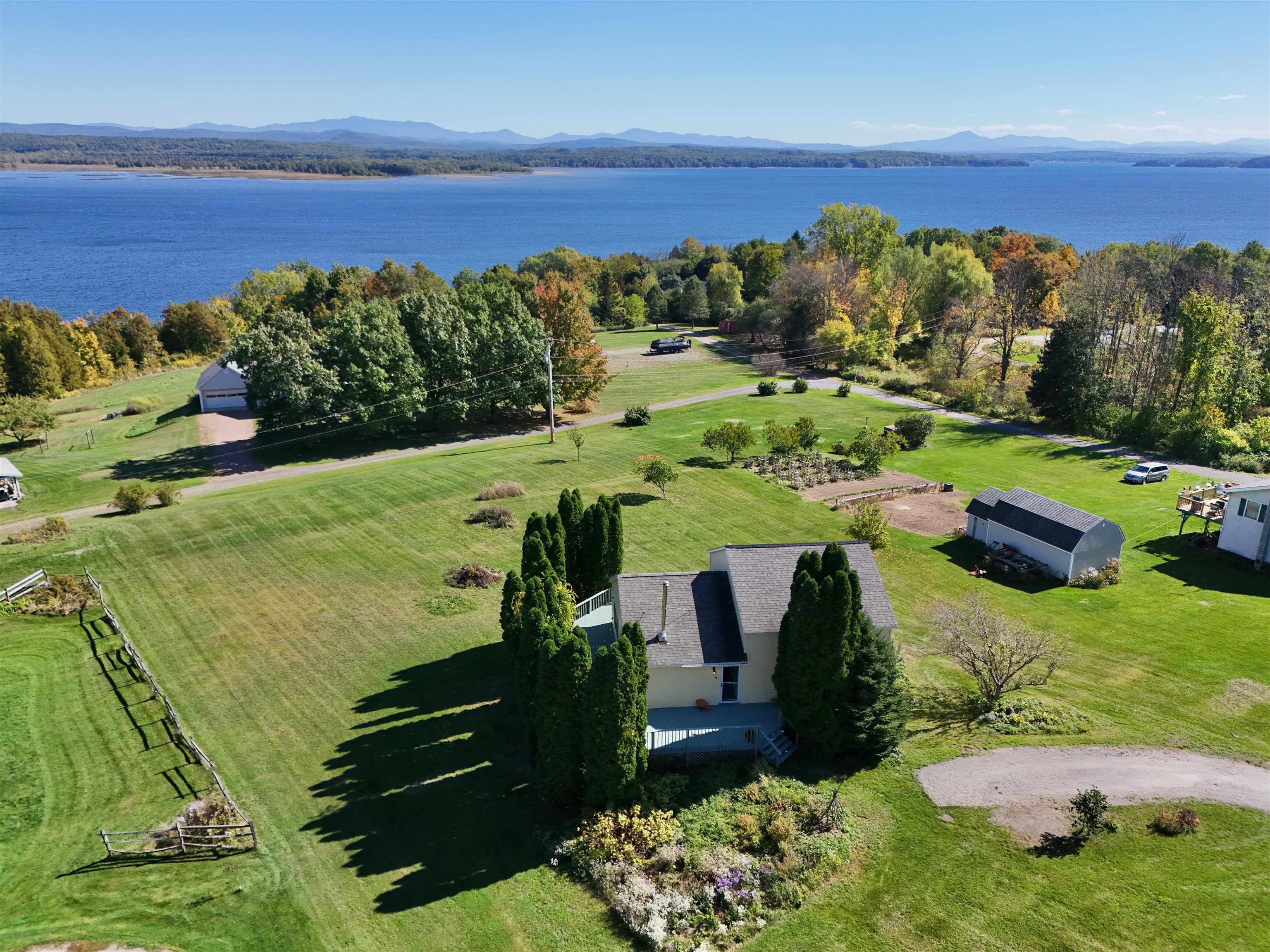 Imagine starting your day with the sun rising over Lake Champlain and the Green Mountains, sipping coffee on the private deck off your bedroom as you take in the view. This South Hero contemporary makes that dream your reality. From the moment you arrive, the vistas draw you in—only becoming more expansive once the leaves have fallen. Step inside to gleaming wood floors, soaring cathedral ceilings, and a light-filled open floor plan. Just off the tidy kitchen, French doors open to a wraparound deck where you can dine al fresco, entertain friends, or simply relax while watching songbirds and the occasional bald eagle glide by. In the cooler months, an efficient wood stove adds warmth and ambiance. Interior French doors lead to the primary bedroom, complete with its own private deck, spacious walk-in closet, and full bath accessible from both the bedroom and main living area. Upstairs, a loft with two flexible rooms offers space for bedrooms, office, or guests. The walkout basement includes laundry, a ¾ bath, a large semi-finished room with lake views ready to be finished, plus a generous workshop. Outside, the expansive yard has some established plantings and trees, but is a mostly blank canvas for gardens, recreation, or simply enjoying open space. With a ramp connected to the deck, the home also supports single-floor living. Just minutes from the causeway and mainland, it blends peace, beauty, and convenience. It’s time to make your Champlain Islands dream a reality!