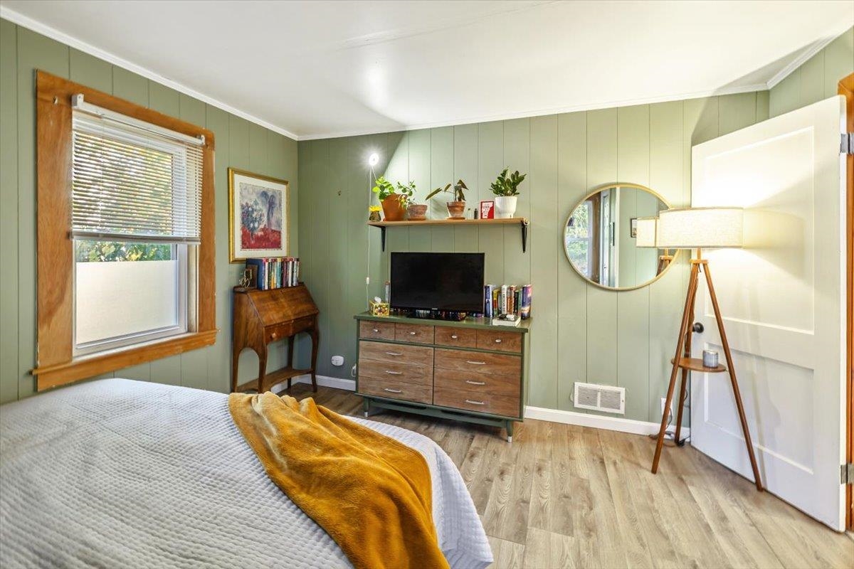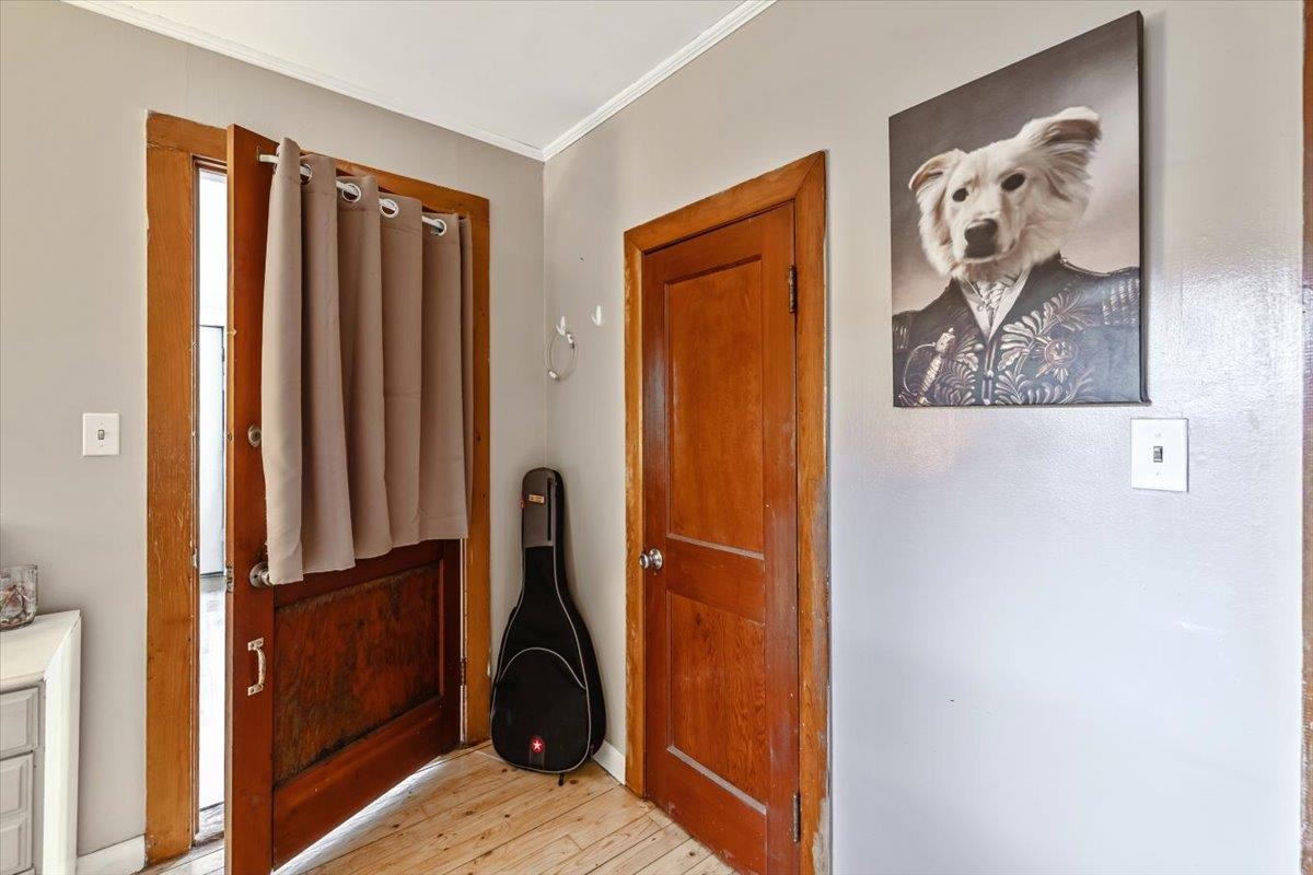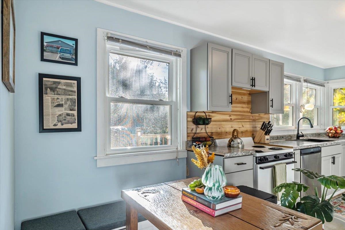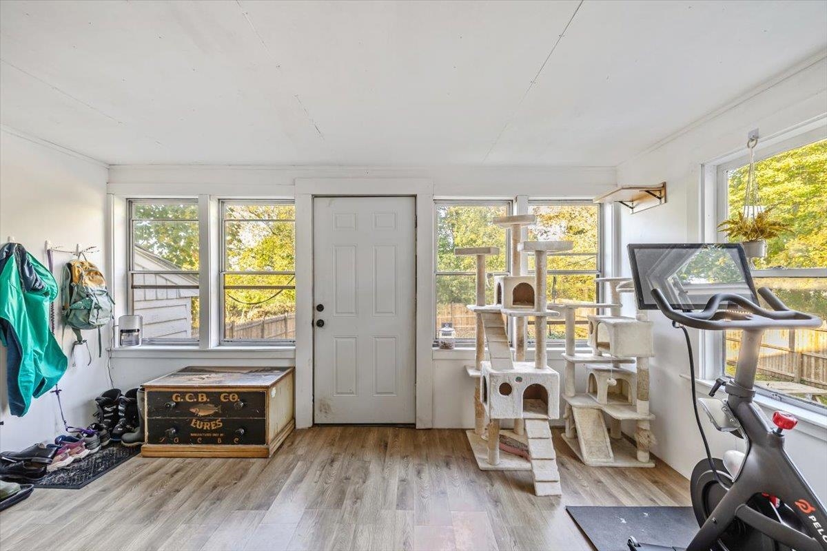 This beautiful home is a must see! From the beautiful wood floors, large windows that provide incredible natural lighting to the gorgeous updated kitchen and finishes, its easy to feel at home. Property offers 2 bedrooms, one full bath, full basement, attached garage with ample storage and deck perfect for morning coffee, afternoon bbgs, or midnight stargazing. Enclosed 3 season porch on the back of the house has served as a great space for work out room, home office or quiet place to read and relax. Enjoy fenced in backyard with existing raspberry bushes, raised beds, rhubarb & Chicken coop that allows for your own flock of pest controllers! New Furnace, windows and chimney liner offer efficiency and peace of mind!