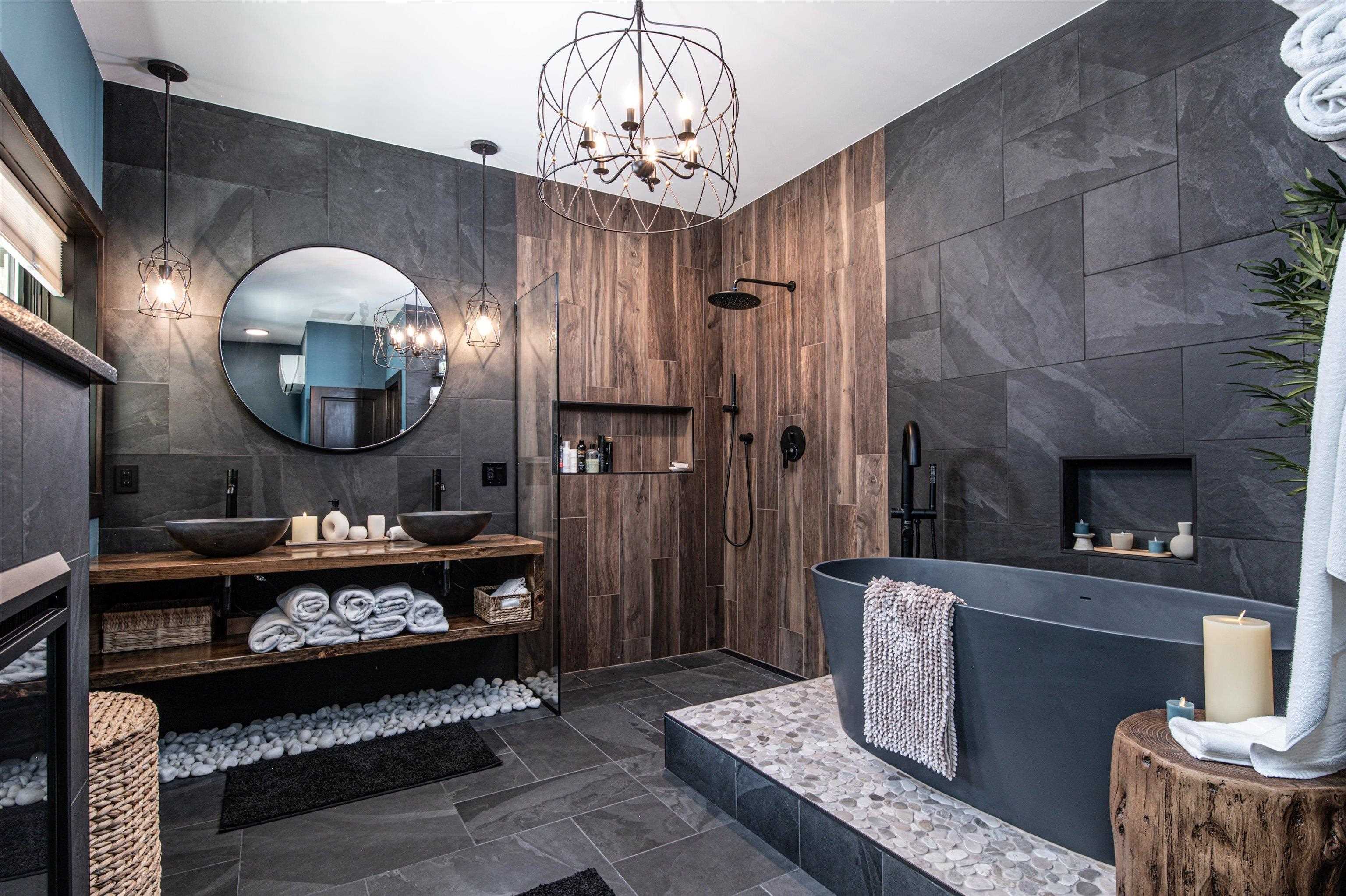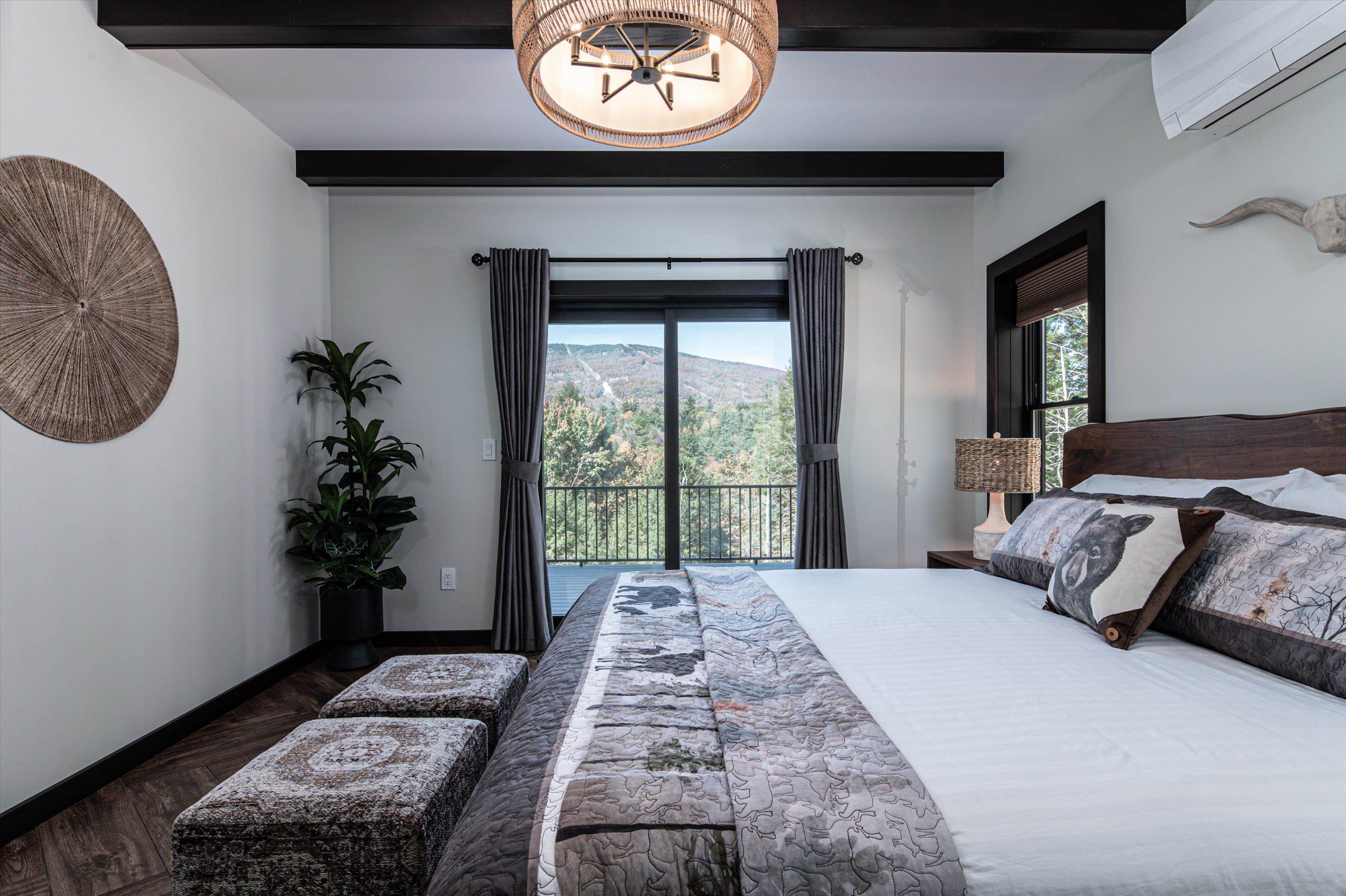 Grand Living on South Hill. Warm and inviting throughout, this new construction home offers all that you need: privacy (on 5 acres), views, outdoor recreation, open floor plan and so much more. Pull into the attached roomy garage to the mud/laundry room. As you enter the custom kitchen with lots of counter space, Viking appliances and center island, you feel the warmth of the home immediately. Sunny dining and living rooms with floor to ceiling gas fireplace, a fantastic Okemo Mountain view and entertaining deck that overlooks a covered hot tub area and a fire pit for friends and family to gather. Both have light bulb strings attached for ambiance. The main level also has a 1/2 bath and a primary bedroom suite with a 2nd gas fireplace in the bathroom. A gorgeous tub and an open, tiled shower give this room a true relaxing spa feel. Mini-splits throughout the home cool you in the summer and warm you in the winter, along with radiant heat flooring. The upper level has 2 bedrooms and 3/4 hall bath, and a loft den. Head down to the lowest level walkout to find a bedroom, 3/4 bath, family room, recreation room with sweet bar, and the utility and storage rooms. Over the garage is a large finished bedroom with a 1/2 bath, perfect for additional guests. Serenity and luxury best describe this picture-perfect home.