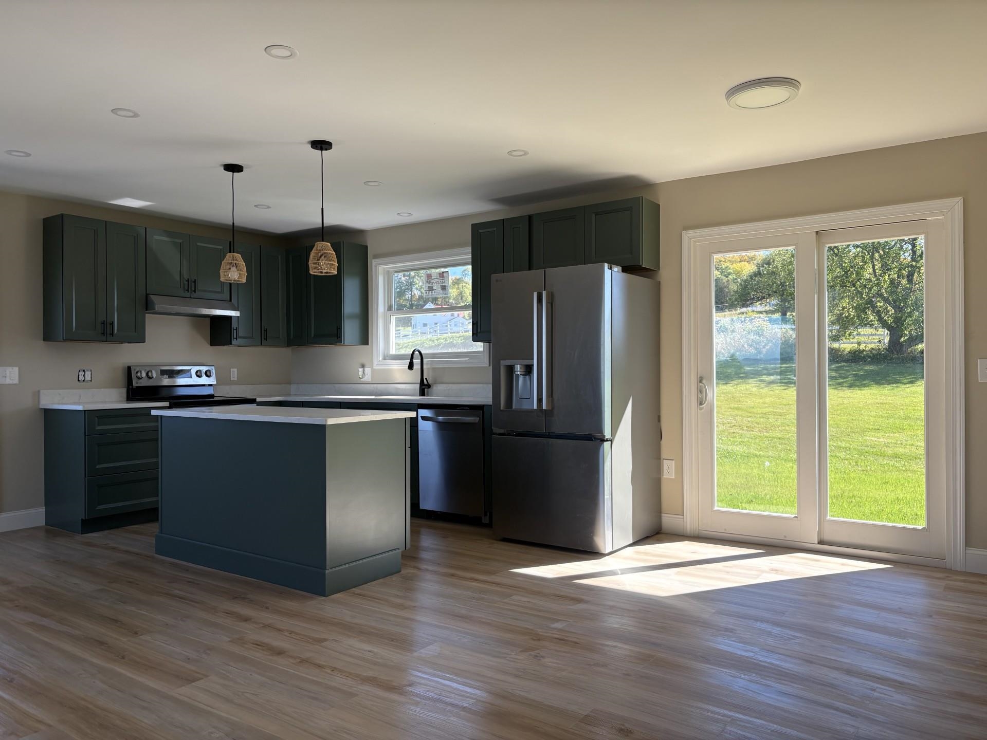 - Dishwasher, Range Hood, Refrigerator, Electric Stove