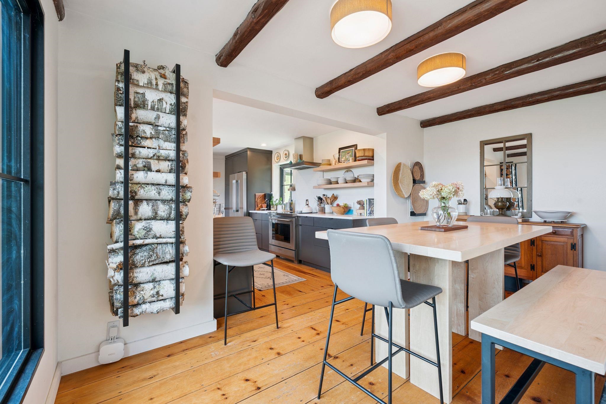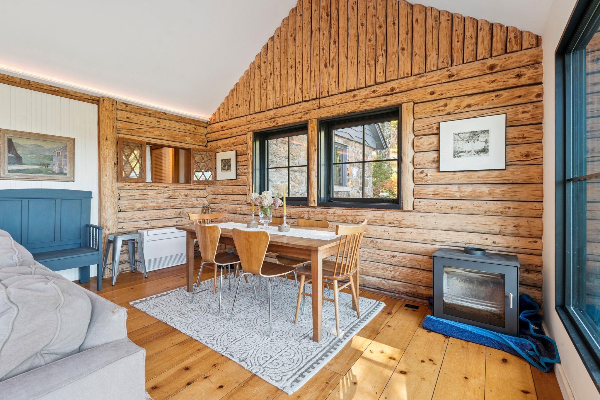- Ceiling Fan, Dining Area, 1 Fireplace, Kitchen/Dining, Primary BR w/ BA, Natural Light, Natural Woodwork, Vaulted Ceiling, Wood Stove Insert