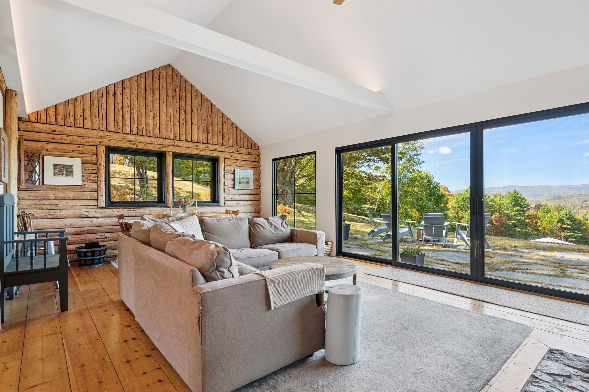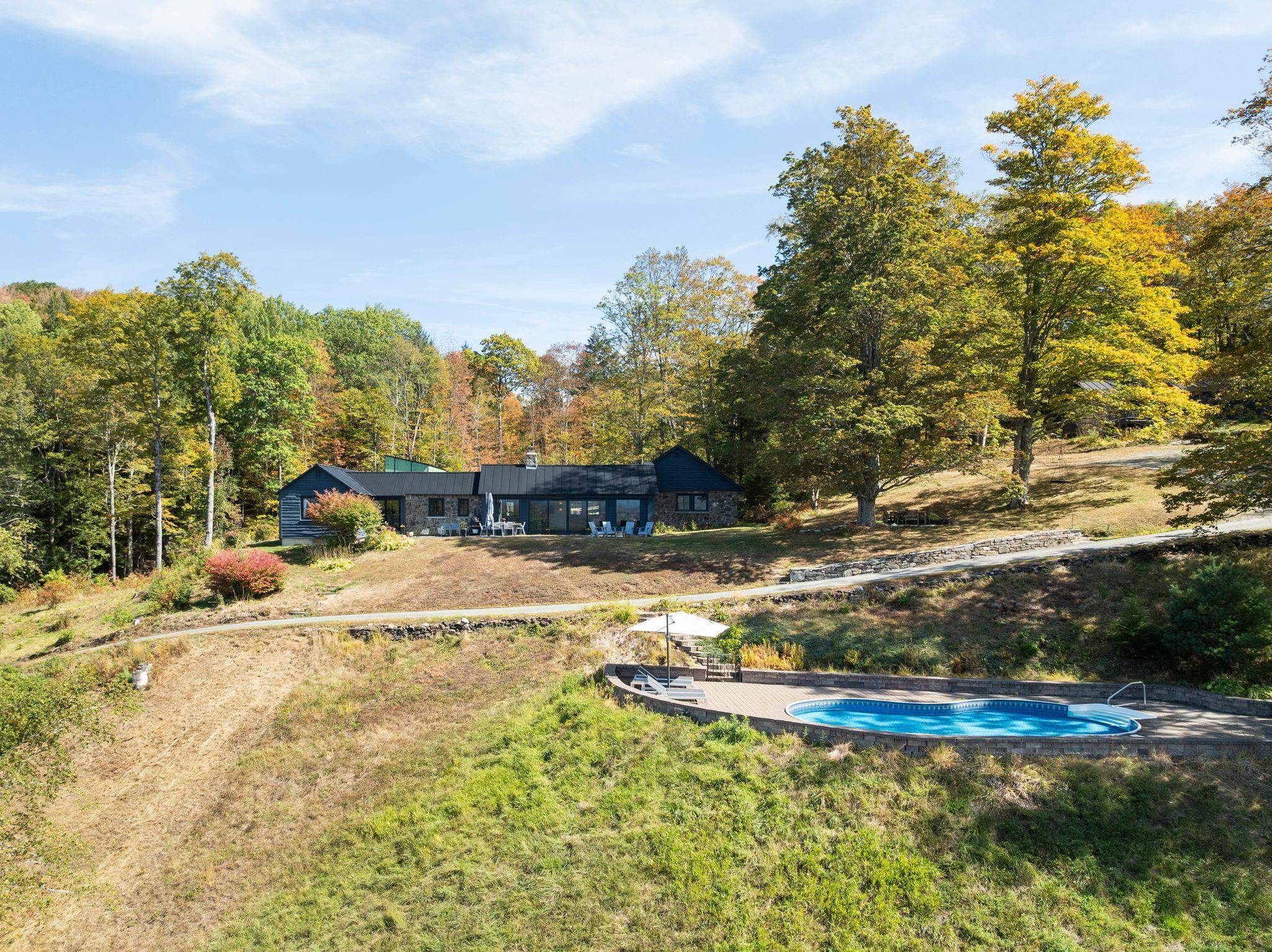 Breathtaking long range views of Killington Peak and Saskadena 6 greet you as you wind your way up to your private slice of Heaven. Situated on nearly 91 acres, this spectacular property offers everything, from the views and open fields to the saltwater pool tucked nicely into the hillside to the trails running throughout the woods and a lovely stone patio aligned perfectly for evening sunsets. Inside, nearly every aspect of the house has been updated. There are four bedrooms including a primary with ensuite bath and two additional full baths. The fully renovated kitchen is open to the dining area which leads to the living room with new floor to ceiling windows overlooking the Pomfret hills and mountains beyond. A stone fireplace anchors the living room, complete with a new insert and chimney liner. Between mini splits in all rooms and radiant floor heat in select areas, this house is fossil fuel free and derives most of its power from 61 onsite solar panels. Two Tesla power walls provide backup in the event of a grid outage. Separate from the main house is a two room cottage that was completely redone and currently set up as a guest bedroom and office, with a half bath inside and a seasonal outdoor shower on the deck. A short trek up through the woods takes you to an open meadow with a small cabin awaiting some finishing touches. Located privately atop the coveted Cloudland neighborhood just minutes from downtown Woodstock and Saskadena 6, this is a must see property.